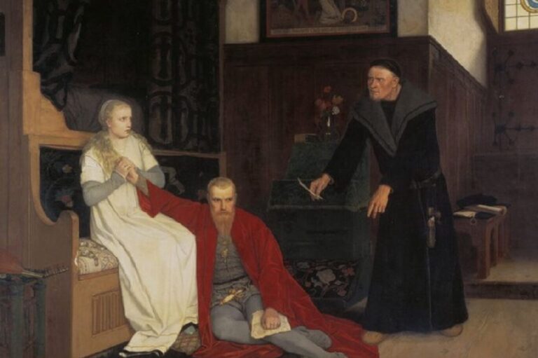 لوحة تمثل مشهداً من "إريك الرابع عشر" (موسوعة الفن الكلاسيكي) ثقافة و فنون آخر تجليات السويدي الذي غاص في الجنون by admin 7 أكتوبر، 2024 written by admin 7 أكتوبر، 2024 296 الضرورة القصوى التي أوصلت بائسي العاصمة وجائعيها إلى عرس الملك نكاية بإليزابيث اندبندنت عربية / إبراهيم العريس باحث وكاتب كثر من كتاب المسرح الكبار في القرن الـ20 يعدون أوغست ستريندبرغ، السويدي الكبير، أستاذهم في فن الكتابة للخشبة، بل حتى مفتتح الحداثة المسرحية في القرن الـ20، مع أنه عاش وكتب خلال العقود الأخيرة من القرن السابق عليه. فمن تشيخوف إلى أوجين أونيل، وربما من بيرانديلو إلى أرثر ميلر وتينيسي وليامز، وحتى النرويجي هنريك إبسن، كانوا يرون أن “المدرسة الحقيقية” التي علمتهم كتابة النصوص المسرحية كانت مسرحيات هذا الكاتب. وهو ما يعترف به، أيضاً، عدد من كتاب كانوا أقل تفرغاً للكتابة المسرحية من أمثال إنغمار برغمان، وحتى وودي آلن وصولاً إلى مبدع، قد يكون ذكره في سياقنا هنا مفاجأة حقيقية، مبدع نقرأ في يومياته نصاً لا يمكنه إلا أن يثير دهشتنا “هأنذا أشعر بالارتياح الآن، لأنني قرأت ستريندبرغ. أنا لا أقرأ ستريندبرغ لمجرد أن أقرأه… بل لكي أرتمي على صدره منفثاً عن همومي. وهو، بدوره، ما إن أفعل حتى يحملني مثل طفل على ذراعه اليسرى. أما أنا، فإنني سرعان ما أجلس هناك مرتاحاً مثل رجل يجلس فوق تمثال. 10 مرات أشعر أنني في خطر السقوط، لكنني عند المحاولة الـ11 أشعرني وقد استقررت في شكل قوي”. أوغست ستريندبرغ (1849 – 1912) بريشة إدفارت مونك (غيتي) هكذا تكلم كافكا هذا الكلام عن ستريندبرغ كتبه فرانز كافكا في إحدى صفحات يومياته، التي تعود لعام 1915. وإذا كان من المفاجئ أن يتحدث كافكا عن كاتب سبقه بمثل هذه اللغة الطيبة، هو الذي اعتاد أن يرفض أباه، ثم أي أب آخر يتنطح لتبنيه، فإن كثراً من كتاب بدايات القرن الـ20 وفنانيه كانوا يرون أن في قراءتهم لستريندبرغ أو مشاهدتهم مسرحياته، نوعاً من الأمان، على رغم كل ضروب القلق التي ينقلها ذلك الكاتب إلى قارئيه، وإلى متفرجي تلك المسرحيات. بل ربما كان الاطمئنان نتيجة طبيعية لقلق تطهيري تحمله الأعمال. وحتى في يومنا هذا لا نعدم أن نجد كتاباً وفنانين كباراً يعلنون انتماءهم، في شكل أو في آخر إلى ستريندبرغ، سواء تعلق الأمر بمسرحه الواقعي أو بمسرحه التاريخي، أو بأعماله ذات الصبغة الفانتازية، أو بنصوصه الأخرى. حالة خاصة كان أوغست ستريندبرغ حالاً خاصة، ولعل وحدة مواضيعه، على تنوعها، وصفاء أسلوبه على اختلاف مراحله، وارتباط حياته بأعماله، كلها عناصر أسهمت في تلك القراءة، وكذلك في العدوى التي كان يثيرها إلى درجة أن المشاهد الحصيف، حتى للوحة فنية من طراز “الصرخة” لإدفارت مونك، لا يسعه إلا أن يلمح سمات ستريندبرغ في خلفيتها. لستريندبرغ أعمال كبيرة وشهيرة، وله أخرى قد تقل عنها أهمية أو شهرة… ومع هذا، ربما يصح القول هنا إن بعض الأعمال، هذه الأخيرة، تنم عن عمله وارتباطه بحياته، أكثر مما تفعل أعمال كبيرة له من طينة “الحلم”، أو “الآنسة جوليا”، أو حتى “الأب”، أو “الطريق نحو دمشق”. ومن الأعمال “الثانوية” التي يمكن التوقف عندها في هذا السياق، تبرز بالتأكيد مسرحية “إريك الرابع عشر” التي عدت ما إن ظهرت في عام 1899، استكمالاً لثلاثية مسرحية تاريخية تحمل توقيع ستريندبرغ، وتضم من قبلها “المعلم أولاف”، و”غوستاف فازا”. وهذه الأعمال الثلاثة معاً أعمال تاريخية تستقي، من ناحية مبدئية، شكلها وموضوعها من مراحل معينة في تاريخ السويد، وطن ستريندبرغ، ومع هذا يظل ثمة سؤال: هل حقاً يمكن النظر إلى “إريك الرابع عشر” باعتبارها مسرحية تاريخية… حتى وإن كان من المؤكد ارتباطها بالمسرحيتين السابقتين لها؟ جواب ملتبس بالضرورة الجواب الوحيد الذي يمكن إيراده هنا، جواب ملتبس… ويميل نحو النفي على أية حال. ولكن من ناحية مبدئية تتحدث المسرحية عن ملك حقيقي هو إريك الحامل الرقم 14، وهذا الملك كان سبق لشخصيته أن ظهرت في شكل أول ومبتس