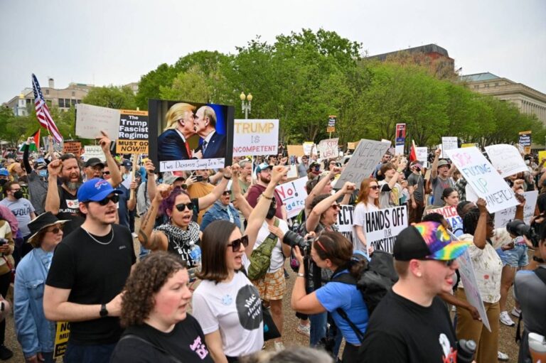 متظاهرون يحتجون ضد سياسات ترمب قرب البيت الأبيض، 19 أبريل 2025 (أ ف ب) عرب وعالم آلاف الأميركيين يتظاهرون ضد ترمب by admin 20 أبريل، 2025 written by admin 20 أبريل، 2025 200 ندد المتظاهرون خصوصاً بسياسة البيت الأبيض المناهضة للهجرة اندبندنت عربية / أ ف ب خرج آلاف الأميركيين إلى الشوارع، أمس السبت، في نيويورك ومدن أميركية كبيرة أخرى، في يوم ثان من الاحتجاجات المناهضة للرئيس دونالد ترمب في غضون أسبوعين. ورفع متظاهرون في نيويورك لافتات تحمل عبارات “لا يوجد ملك في أميركا” و”لنقاوم الطغيان”، إلى جانب صور للرئيس الأميركي وقد بدا على وجهه شارب شبيه بشارب هتلر. وقالت كاثي فالي (73 سنة)، وهي ابنة ناجين من الهولوكوست، لوكالة “الصحافة الفرنسية”، “الديمقراطية في خطر كبير”. وأضافت أن ما أخبرها به والداها عن صعود النازية في ثلاثينيات القرن الـ20 “يحدث هنا”. واعتبرت أن “الفارق مع الفاشيين الآخرين هو أن ترمب أغبى من أن يكون فعالاً”، قائلة إن “فريقه منقسم على نفسه”. وندد المتظاهرون خصوصاً بسياسة البيت الأبيض المناهضة للهجرة، في وقت علقت المحكمة العليا ترحيل المهاجرين من خلال قانون “الأعداء الأجانب” الذي استند إليه ترمب ويعود لعام 1798. وأمام مكتبة أكبر مدينة في الولايات المتحدة على مقربة من برج ترمب الشهير الذي يملكه الملياردير الجمهوري، هتف المتظاهرون “المهاجرون مرحب بهم هنا”. وتجمع متظاهرون أيضاً خارج البيت الأبيض في واشنطن، وإن كان بأعداد أقل على ما يبدو من التظاهرة السابقة في الخامس من أبريل (نيسان) والتي جمعت وقتذاك عشرات آلاف الأشخاص. وقال بنجامين دوغلاس (41 سنة)، إن إدارة ترمب “تعتدي على سيادة القانون”. ووضع دوغلاس كوفية على رأسه، حاملاً لافتة دعماً لمحمود خليل، وهو طالب فلسطيني أوقف الشهر الماضي في نيويورك وبات مهدداً بالترحيل بسبب تنظيمه تظاهرات ضد الحرب في قطاع غزة. واتهم دوغلاس الإدارة الجمهورية باستهداف أفراد “بغية زيادة الكراهية حيال الأجانب وتقويض الحماية القانونية الراسخة”. في ولاية تكساس المحافظة (جنوب)، خرجت تظاهرة في غالفستون، المدينة البالغ عدد سكانها 50 ألف نسمة وتقع على شواطئ خليج المكسيك. وقالت الكاتبة باتسي أوليفر (63 سنة) “هذه رابع تظاهرة أشارك بها”. وأضافت “عادة ما أنتظر حتى الانتخابات المقبلة، لكن ذلك لم يعد ممكناً. لقد خسرنا الكثير بالفعل”. وعلى الساحل الغربي، تجمع مئات في ساحة بسان فرانسيسكو لرسم عبارة “عزل واستقالة” على الرمال بأحرف عملاقة. ووردت أنباء عن خروج تجمعات خارج وكالات بيع سيارات “تيسلا”، العلامة التجارية المملوكة لإيلون ماسك الذي كلفه ترمب بتقليص حجم القوى العاملة المدنية في الحكومة. ونظمت التعبئة مجموعة تدعى “50501”، وهو رقم يوازي 50 تظاهرة في ولايات البلاد الـ50 نحو حركة واحدة لمعارضة الملياردير الجمهوري. وأوضحت المجموعة على موقعها الإلكتروني أنها تشكل “رداً لا مركزياً سريعاً على الأعمال المناهضة للديمقراطية وغير القانونية من جانب إدارة ترمب وحلفائه”. ووفقاً لهذه المجموعة، تم التخطيط لخروج نحو 400 تظاهرة في خلال هذا اليوم. ودعت ملايين الأشخاص للنزول إلى الشوارع. غير أنه يصعب الحصول على أرقام فعلية، إذ ترفض الشرطة إعطاء تقديرات لأعداد هؤلاء. المزيد عن: ترمبأميركاالولايات المتحدةالهجرةسيادة القانونمظاهراتإيلون ماسكالهولوكوست 0 comment 0 FacebookTwitterPinterestEmail admin previous post “صمت مثير للقلق”… متى يدرك البيض أن السود ليسوا حيواناتهم الأليفة؟ next post المطالب الأميركية الثمانية من سوريا… ماهي، وكيف ردت دمشق عليها؟ You may also like هل يصدر لبنان مذكرة توقيف بحق نعيم قاسم؟ 10 مارس، 2026 كواليس دعم روسيا لإيران في حربها مع أميركا... 10 مارس، 2026 التطورات الميدانية تقلب موازين حرب “زئير الأسد” 10 مارس، 2026 زعيم” كومله” الكردي: ترمب اتخذ قرارا شجاعا ونرحب... 10 مارس، 2026 تقرير: لبنان طلب إجراء مفاوضات مباشرة مع إسرائيل 10 مارس، 2026 الأحواز: الهوية والنفط والصراع على الأر