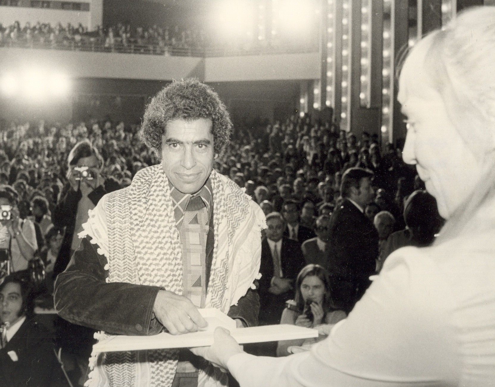 ثقافة و فنونعربي أمجد ناصر: حوار مع قاسم حَوَل عن مشاكل السينما الفلسطينيّة | أرشيف by admin 11 سبتمبر، 2021 written by admin 11 سبتمبر، 2021 360 عرب 48 \ فُسْحَة تحرير:نواف رضوان العنوان الأصليّ: المخرج السينمائيّ الفلسطينيّ قاسم حول المصدر: «مجلّة البيان». الكاتب(ة): أمجد ناصر. زمن النشر: حزيران (يونيو) 1980. حاوره: أمجد ناصر جاء قاسم حول إلى الثورة الفلسطينيّة منذ انطلاقتها المسلّحة وتابعها بالكاميرا، محقّقًا أشرطة وثائقيّة، تحكي وتسجّل نضالات الثورة؛ انتصاراتها ونكساتها، شروط استمرارها وثغراتها، حتّى أصبح اسم قاسم حَوَل، ملازمًا لأيّ حديث عن السينما الفلسطينيّة. وقاسم حول كما هو معروف فنّان عراقيّ، عمل في المسرح والتمثيل والتأليف، يشغل مسؤوليّة قسم السينما في الجبهة الشعبيّة لتحرير فلسطين، وهو يستعدّ الآن لإخراج فيلم روائيّ طويل عن رواية للكاتب الفلسطينيّ رشاد أبو شاور. في هذا اللقاء، يحدّثنا حَوَل عن فيلمه الجديد، وعن فهمه لوحدة السينما الفلسطينيّة في إطار إنتاجيّ موحّد. قدّمتَ «لبنان تلّ الزعتر» و«حياة جديدة». بعد فيلمك الروائيّ «بيوت في ذلك الزقاق» ماذا قدّمت من أعمال على صعيد السينما الفلسطينيّة والعربيّة؟ أوّلًا من الضروريّ الإشارة إلى تجربتي في فيلم «بيوت في ذلك الزقاق»، الّذي أخرجته في العراق، فهذا الفيلم، وبعد أن أتممته، طُلِبَ منّي إجراء تعديلات ذات دلالات سياسيّة، فرفضت وغادرت الوطن، وقامت مؤسّسة السينما العراقيّة بتكليف محمّد كردي ليقوم بحذف وإضافة مشاهد إلى الفيلم، وهذه المشاهد لا تمثّلني فكريًّا وفنّيًا. وقد أشارت مجلّة «آفاق عربيّة» العراقيّة في مقالة طويلة عن الفيلم إلى المشاهد المحذوفة والمضافة، كذلك مجلّة «المسيرة» في عددها الأخير وبقلم ناقد عراقيّ أشارت هي الأخرى إلى هذا التعديل. وهذه المسألة ذات دلالة خطيرة في السينما، أن يتمّ التدخّل في العمل الإبداعيّ، وأقول إنّ أيّة جهة، أفرادًا أو شركات أو مؤسّسات رسميّة أو دول لا يحقّ لها التدخّل في العمل الإبداعيّ، فإمّا أن يُقْبَل العمل كاملًا أو يُرفَض كاملًا، في حال وجود خلاف في وجهات النظر السياسيّة. أنا مخرج أنظر إلى الواقع نظرة مادّيّة وأفسّر الواقع من منظور طبقيّ واضح لا يقبل الغشّ ولا التضليل. قدّمت جهودي ولا زلت منذ عام 1970 إلى المقاومة الفلسطينيّة، وسامهتُ في السينما الفلسطينيّة مساهمات واضحة، وأنشأت قسمًا مهمًّا للسينما في الجبهة الشعبيّة لتحرير فلسطين… أصوّر الأفلام وأنفّذها إخراجًا وأقوم بعرضها بنفسي في القواعد والمخيّمات، وأقوم بتدريب المهتمّين في شؤون السينما، وكلّ هذا يسرّني كثيرًا ويغمرني بالسعادة. قاسم حول، مهرجان لايبزغ، (1974) بعد مغادرتي العراق في نهاية 1977، نفّذت فيلمين قصيرين، الأوّل «لبنان تلّ الزعتر» والثاني «حياة جديدة» عن جمهوريّة اليمن الديمقراطيّة الشعبيّة، والفيلمان من إنتاج قسم السينما في الجبهة الشعبيّة لتحرير فلسطين، وسعيتُ حتّى هذا العام لتطوير إماكانيّات القسم عندنا على المستويين التقنيّ والبشريّ، ونحن بصدد إحداث قفزة نوعيّة في مجال الفيلم الوثائقيّ، والتوجيه في ذات الوقت نحو الفيلم الروائيّ لأهمّيّته كنمط متفوّق في استخدام لغة السينما وفي التأثير على الجمهور المتلقّي. عندنا برنامج لعدد من الأفلام الوثائقيّة ذات موضوعات هامّة، وخرجنا من فيلم الحدث الّذي انغمرت فيه السينما الفلسطينيّة إلى موضوعات ذات طبيعة سياسيّة واجتماعيّة وتراثيّة عن الشعب الفلسطينيّ والثورة الفلسطينيّة. وبالنسبة لي، فأنا بصدد إنتاج فيلمين، الأوّل وثائقيّ طويل بعنوان «وجوه فلسطينيّة»، وهو محاولة لتحليل الواقع الفلسطينيّ طبقيًّا في علاقته بالثورة وبالقضيّة الفلسطينيّة. ينتهي الخروج من الفيلم العاطفيّ، الخروج من فيلم العدوان والتصدّي، إلى نظرة عقلانيّة حتّى لطبيعة الصمود والتصدّي. لقد قطعنا مرحلة كافية لتحريك عواطف جماهيرنا وتعريف الآخرين بصورة بانوراميّة عن واقعنا، ولقد حان 