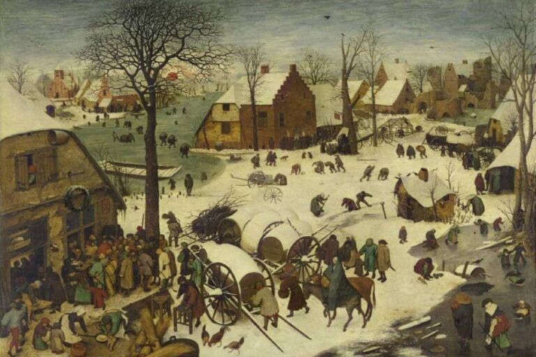 لوحة _إحصاء في بيت لحم_ لبروغل (موسوعة الفن الكلاسيكي) ثقافة و فنون “إحصاء في بيت لحم”: لوحة دينية أم منشور سياسي؟ by admin 3 August، 2025 written by admin 3 August، 2025 92 تطرح محاولة فهمها سؤالاً حول كيفية وصلت الثلوج والبيوت الأوروبية الشمالية إلى “الضفة الغربية” الفلسطينية اندبندنت عربية / إبراهيم العريس باحث وكاتب يمتلك متحف الفنون الجميلة في مدينة الشمال الفرنسي، ليل، لوحة للرسام الذي يكاد يكون ابن تلك المنطقة لكن شهرته غمرت عالم الفن كله بوصفه واحداً من سادة الفنون “الواقعية” في تاريخ الفن الأوروبي وواحداً من كبار رسامي الطبيعة. ونتحدث هنا عن لوحة “إحصاء في بيت لحم” للفنان بيتر بروغل البالغ ارتفاعها 112 سم وعرضها 163 سم، والتي يعرف الجميع أنها اللوحة التي تجتذب في ذلك المتحف الفرنسي أكبر عدد من المتفرجين على الإطلاق. للوهلة الأولى تبدو هذه اللوحة التي رسمها بروغل عام 1555 وكان في الـ30 من عمره، معبرة عن مشهد طبيعي ينسجم تماماً مع تلك المشاهد التي اعتاد بروغل رسمها في ريفه المفضل في البلاد الواطئة. بل تكاد تكون الأكثر انتماء لتلك المنطقة من العالم بجمهورها وعمران بيوتها وطبيعتها وثلوجها التي تكاد تبدو راسخة شتاء وصيفاً حتى وإن كانت اللوحة تبدو شتائية بامتياز وقد يخلط الناس أحياناً بينها وبين لوحة أخرى لبروغل نفسه مخصصة لفصل الشتاء في رباعيته “الفصول الأربعة”. غير أن هذا كله ليس سوى انطباع الوهلة الأولى بالتأكيد. فتفرس أكثر عمقاً في اللوحة يسبرها في ما وراء مظهرها الخارجي وبدءاً من عنوانها بالطبع، “إحصاء في بيت لحم” سيسارع بنسف الفكرة التي تكون قد تكونت أول الأمر، إذ إن مشاهد اللوحة سينصرف على الفور من اعتبارها مشهداً طبيعياً، إلى النظر إليها بوصفها… لوحة دينية. كناية عن واقع ما وذلك تحديداً لأن عنوان اللوحة نفسه يشير مباشرة إلى فكرة بالاسم نفسه منتزعة من الكتاب المقدس تتحدث عن إحصاء تقوم به السلطات الرومانية في فلسطين عند ما قبل تاريخ ظهور المسيحية مباشرة، للبحث عن طفل النبوءة الذي كانت ثمة حكاية عن ولادته كناشر لدين جديد سيقوض الدولة الرومانية بدءاً من فلسطين. ومن هنا، بحسب الحكاية المتوارثة كجزء من طقوس دينية، ها هي السلطات الرومانية تجري إحصاء لسكان مدينة بيت لحم لمعرفة أين هو ذلك الطفل للتخلص منه. ونعرف طبعاً أن إجراء ذلك الإحصاء كان منطلق الهرب الكبير إلى مصر للجوء من بطش السلطات الرومانية. الهرب الذي خاضته السيدة العذراء مع طفلها وخطيبها يوسف النجار وما إلى ذلك من بقية الحكاية التي نعرف والتي أبدع الفنانون النهضويون في رسمها لوحات رائعة تزين اليوم عديداً من متاحف العالم. فهل يمكننا هنا أن نتساءل عما إذا كان بيتر بروغل، عبر رسمه “إحصاء في بيت لحم” إنما أراد أن يدلي بدلوه، بدوره فنياً في هذا المجال برسمه منطلق الرحلة حين تغادر العائلة المقدسة المدينة الفلسطينية متوجهة إلى مصر؟ يؤمن بيتر بروغل بأن للسياسة دور غير مباشر في الفن (ويكيميديا) من ناحية مبدئية لا شك أن الجواب هو: نعم! لكن بيتر بروغل، الوطني المبدع الذي كان يرى الفن غاية ولكن أيضاً وسيلة لمقاومة الظلم الآتي من الطبيعة أو من ممارسة الإنسان تجاه أخيه الإنسان، حتى وإن كان من المعروف أنه لم يزر الديار المقدسة في فلسطين، كان يعرف تماماً أنها لا تشبه على الإطلاق تلك الطوبوغرافيا التي رسمها في هذه اللوحة، مصراً على أن تشهد حدث الهرب المقدس. كان يعرف أنه يرسم طوبوغرافيا محلية تنتمي عموماً إلى الشمال الغربي الأوروبي وخصوصاً إلى البلاد الواطئة (هولندا تحديداً) بلاده. فما الحكاية؟ من جغرافية إلى أخرى لقد أشرنا قبل سطور إلى أن بروغل كان ذا نزعة وطنية لكنها لم تكن صاخبة. وهو كان يؤمن أن للفن دوراً يلعبه في السياسة ولكن من دون اللجوء إلى ذلك الزعيق المعتاد الذي يمارسه أصحاب الرؤوس الحامية الذي يكتفون عادة بالتبشير بين مؤمنين فلا يكون لفنهم أي تأثير حقيقي. بالنسبة إلى بروغل ليس كل فن احتجاجي فناً جميلاً بالضرورة، ب