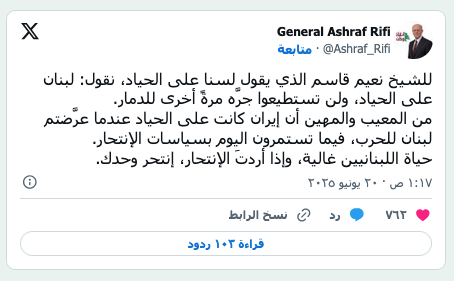 الأمين العام لـ«حزب الله» اللبناني نعيم قاسم (رويترز) عرب وعالم إسرائيل تحذر «حزب الله» من دخول الحرب إلى جانب إيران by admin 21 يونيو، 2025 written by admin 21 يونيو، 2025 149 تنديد لبناني بإعلان قاسم الاصطفاف إلى جانب إيران… وتأكيد على «الحياد» بيروت: «الشرق الأوسط» وجهت إسرائيل تحذيراً رسمياً لـ«حزب الله» من مغبة المشاركة في الصراع مع إيران، مهددة بضرب «من يهددونها»، بعد تصريحات لأمين عام الحزب نعيم قاسم الذي قال في بيان، الخميس، إن الحزب «سيتصرف بما يراه مناسباً»، وسط تنديد لبناني بتجاوز الحزب لقرار حصرية قرار السلم والحرب بيد الدولة اللبنانية، وتشديد لبناني على تحييد البلاد. وحذّر وزير الدفاع الإسرائيلي، الجمعة، الحزب من مغبة المشاركة في الصراع مع إيران، قائلاً إن صبر إسرائيل نفد مع «الإرهابيين» الذين يهددونها، وقال يسرائيل كاتس: «لم يتعلم الأمين العام لـ(حزب الله) من أسلافه ويهدد بالعمل ضد إسرائيل»، في إشارة إلى الأمين العام السابق لـ«حزب الله» حسن نصر الله الذي اغتالته إسرائيل في سبتمبر (أيلول) الماضي. وأضاف محذراً: «أقترح على الوكيل اللبناني أن يكون حذراً، وأن يفهم أن إسرائيل فقدت صبرها مع (الإرهابيين) الذين يهددونها». وقال قاسم، الخميس، إن جماعته «ليست على الحياد» في الصراع بين إيران من جانب، وإسرائيل والولايات المتحدة من جانب آخر. وأضاف، في بيان: «لذا نُعبِّر عن موقفنا إلى جانب إيران وقيادتها وشعبها، ونتصرف بما نراه مناسباً في مواجهة هذا العدوان الإسرائيلي – الأميركي الغاشم». الحكومة وحدها تتصرف وانسحبت ردود الفعل من تصريح قاسم على الداخل اللبناني؛ إذ جددت القوى السياسية اللبنانية تأكيد موقفها الداعي إلى حياد لبنان في ظل الحرب الإيرانية – الإسرائيلية، وشددت على أن قرار السلم والحرب بيد الدولة وحدها. وقال رئيس حزب «القوات اللبنانية»، سمير جعجع، متوجهاً إلى قاسم: «شيخ نعيم، لا تستطيع التصرُّف بما تراه مناسباً. الحكومة اللبنانية وحدها تستطيع التصرُّف بما تراه مناسباً؛ لأنها تمثِّل أكثرية الشعب اللبناني». وأضاف: «لبنان وطن ودولة، وبخاصة حالياً في العهد الجديد، وليس مقبولاً على الإطلاق أن يسمح كل أحد لنفسه بالتصرُّف، وإلا تحوّل لبنان إلى ساحة فوضى لا يحكمها حاكم، ولا يرعى شؤونها دستور ولا قانون». وتابع متوجهاً إلى قاسم بالقول: «إذا كان لديك أي اقتراح فيما يخص الحرب الدائرة بين إسرائيل وإيران، تستطيع أن تحمِّله إلى ممثليك في الحكومة كي يطرحوه في أول جلسة لمجلس الوزراء، وهناك حصراً يتم التداول به واتخاذ القرار المناسب». وجاء بيان قاسم بعد وقت قصير على تصريحات أدلى بها رئيس البرلمان نبيه بري، وهو حليف «حزب الله»، قال فيها إن الحزب لن يدخل الحرب، ولن يفتح جبهة من لبنان على إيقاع تلك الحرب. ورأى عضو «اللقاء الديمقراطي» النائب مروان حمادة أن «موقف رئيس المجلس النيابي نبيه بري عندما قال إننا لن ننجر إلى الحرب، يطرح علامات استفهام حول كلام الأمين العام لـ(حزب الله)»، متسائلاً: «هل يهدد قاسم بفتح جبهات جديدة لتعديل موازين القوى أمام الولايات المتحدة؟ أو أنه يلوّح باستخدام ما تبقى من ترسانة (حزب الله) في محاولة لتشكيل جبهة استراتيجية جديدة رغم الخطر الكبير الذي قد يجلبه هذا الخيار على لبنان؟». ورأى حمادة، في تصريح إذاعي، أن تصريحات قاسم «لم تأتِ من فراغ بل ترتبط بشكل مباشر بالولاء لنهج الولي الفقيه، وقد لامست مشاعر شريحة واسعة من الطائفة الشيعية، ما قد يضغط على (حزب الله) باتجاه التحرك، خاصة إذا ما تعرض المرشد الإيراني خامنئي لأي مكروه»، مشيراً إلى أن «بيان قاسم كان صريحاً في مساندة إيران، لكنه ترك الباب مفتوحاً بقوله: سنتصرف بما نراه مناسباً في الوقت نفسه». حياد لبنان وتدعم قوى سياسية كثيرة موقفَ الحكومة اللبنانية الداعي إلى تحييد لبنان عن الصراع. وقال النائب أشرف ريفي في تغريدة على منصة «إكس»: «للشيخ نعيم قاسم الذي يقول لسنا على الحياد، نقول: لبنان على الحياد، 