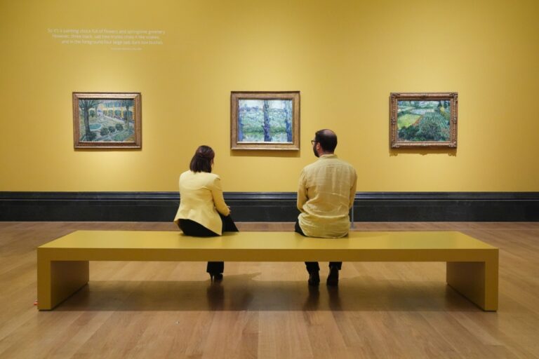 Lucy North/PA Images via Getty Images / لوحات "فناء المستشفى في أرل" (1889)، "منظر من أرل" (1889)، و"حقل الخشخاش" (1889) ثقافة و فنون الشعراء والعشاق والأمكنة والأشياء كما رآهم فان غوغ by admin 7 فبراير، 2025 written by admin 7 فبراير، 2025 329 أحد أضخم المعارض الاستعادية في لندن المجلة / فيء ناصر ما الذي يجعل فنانا مثل فنسنت فان غوغ مات قبل أكثر من مئة سنة تقريبا، شهيرا ومألوفا من عامة الناس، وكل معرض يحمل اسمه يصبح حدثا مهما يترقبه ويزوره الآلاف؟ هذا بالفعل ما حدث في معرضه الأخير الذي أقيم في “ناشونال غاليري” في لندن لمناسبة مرور مئتي سنة على افتتاح الصالة الشهيرة، التي تتوسط ساحة الطرف الأغر، أبرز ساحات لندن، ومرور مئة سنة على اقتناء لوحته “عبّاد الشمس”. المعرض شهد زيارة ما يقارب 350 ألف زائر، كثر منهم جاؤوا من أوروبا، واضطرت إدارة الغاليري إلى استقبال الزوار 24 ساعة في عطلة نهاية الأسبوع قبل نهايته، وهذه سابقة تحدث للمرة الثانية في تاريخ الغاليري الشهيرة بعد معرض ليوناردو دافنشي عام 2012. المخلص دوما يشعر زائر هذا المعرض بتعاطف تجاه الفنان الذي أبدع هذه اللوحات الباهرة وهو في أحلك لحظات حياته، ويشعر أيضا بعبقرية فان غوغ المتفردة وجرأته وقدرته غير المتناهية على التجريب وتأثيث العالم البسيط من حوله بالجمال والأمل والألوان الحارقة. كل اللوحات في المعرض تؤرخ للفترة الزمنية التي عاش فيها فان غوغ في أرل جنوب فرنسا بعد مغادرته باريس التي عاش فيها سنتين (1886-1888)، حيث أقام مع أخيه ثيو تاجر الفنون الذي دعمه ماليا وعاطفيا، وساعده في عرض لوحاته ومحاولة بيعها. في باريس، سكن فنسنت وثيو بيت رقم 56 في شارع “لبيك” في حي “مونمارتر” الشهير، حيّ الفنانين والبوهيميين ومركز الحركات الفنية، مثل الانطباعية وما بعد الانطباعية. حاول فان غوغ الانغماس في تلك الحركات الفنية واكتساب تقنياته الخاصة وتطويرها، فانضم إلى استديو مفتوح يشرف عليه الفنان الفرنسي فرنان كورمون (1845/1924)، وتعرف الى بول سيناك وبول غوغان وهنري دو تولوز لوتريك. لكنه سرعان ما ضجر من مجتمع باريس الصاخب والمنافق الذي أرهقه نفسيا وجعله يتوق إلى العزلة والهدوء. ولأنه كان يعاني من مشاكل جسدية ونفسية، ظن أن الريف الفرنسي الجنوبي سيمنحه فرصة للشفاء والتركيز على فنه وكانت لديه أيضا رغبة في العثور على الحب خصوصا ان أرل اشتهرت بجمال نسائها. فنسنت في أرل وصل فنسنت إلى أرل في فبراير/ شباط 1888. وكان يأمل أن يجد في هذه المدينة الصغيرة الدافئة الإلهام في الطبيعة، وأن يخلق تجمعا فنيا صغيرا مع صديقيه بول غوغان وإميل برنار، لذلك استأجر بيتا قريبا من محطة المدينة (البيت الأصفر) الذي يطل على حديقة عامة جميلة، رسمها فنسنت في العديد من أعماله مثل “حديقة الشعراء” (1888). وهناك لوحات تعود إلى الأشهر الأولى له في أرل منها لوحة “العاشق” (سبتمبر/ أيلول 1888) وهي بورتريه شخصي لصديقه الضابط في الجيش الفرنسي بول- يوجين ميليه الذي نُقل إلى أرل بداية عام 1888، وأصبحا صديقين مقربين حتى إن فنسنت أعطاه دروسا في الرسم. كان ميليه وسيما وله حظوة مع النساء، بخلاف فنسنت، لذلك سمّى هذه اللوحة “العاشق” وكتب فنسنت بحسد: “له جميع نساء أرل اللواتي يريدهن”. يشعر زائر هذا المعرض بتعاطف تجاه الفنان الذي أبدع هذه اللوحات الباهرة وهو في أحلك لحظات حياته، ويشعر أيضا بعبقريته المتفردة من لوحات شهوره الأولى في أرل أيضا لوحة “الشاعر” (1888) وهي بورتريه شخصي لصديقه الفنان يوجين بوش يبدو فيها قلقا هزيلا، وقبحه واضح وراء لحية رقيقة، بينما تتفجر الليلة من حوله بلمعان النجوم. كان يوجين بوش رساما بلجيكيا وهو أحد أصدقاء فان غوغ القلائل في أرل، التقاه في يونيو/ حزيران من العام نفسه حيث أعجب فان غوغ بوجهه النحيف كالشفرة وعينيه الخضراوين، لأنه كان يُذكره بالشاعر الإيطالي دانتي. خلفية البورتريه سماء مرصعة بالنجوم رمزا لأحلام الشاعر الكبيرة. رُسِمت هذه اللوحة وعُلقت في غرفة نوم فنسنت في البيت الأصفر وتظهر في لوحة “غرفة النوم”.