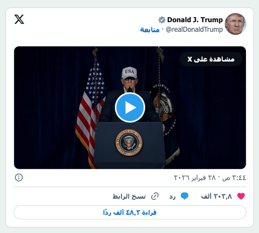 الرئيس الأميركي دونالد ترمب في ولاية تكساس (أ.ب) عرب وعالم ترمب: بدأنا عمليات قتالية كبرى ضد إيران by admin 28 February، 2026 written by admin 28 February، 2026 64 واشنطن: «الشرق الأوسط» أعلن الرئيس الأميركي دونالد ترمب في مقطع فيديو نشر على موقع «تروث سوشيال» أن الولايات المتحدة بدأت عمليات قتالية «واسعة النطاق» في إيران، حسب وكالة «بلومبرغ» للأنباء، اليوم (السبت). وقال ترمب إن بلاده ستدمر صواريخ إيران وتقضي على برنامجها الصاروخي، مؤكداً أن طهران حاولت إعادة بناء برنامجها النووي. وأضاف ترمب أن إيران تعمل على تطوير صواريخ بعيدة المدى من شأنها تهديد الولايات المتحدة ودول أخرى. وأشار إلى أن الجيش الأميركي ينفذ عملية ضخمة ومستمرة في هذا السياق. وكان وزير الدفاع الإسرائيلي يسرائيل كاتس قد أعلن في وقت سابق أن إسرائيل شنت هجوماً وقائياً ضد إيران. وأعلن الجيش الإسرائيلي أيضاً أنه أطلق صفارات الإنذار في مناطق متفرقة من البلاد «لإبلاغ السكان باحتمالية إطلاق صواريخ باتجاه إسرائيل» رداً على الهجوم. وقال ترمب في كلمته: «قبل وقت قصير، بدأ الجيش الأميركي عمليات قتالية كبرى في إيران. هدفنا هو الدفاع عن الشعب الأميركي من خلال القضاء على التهديدات الوشيكة الصادرة عن النظام الإيراني، وهو نظام شرس يضم أشخاصاً قساة وخطرين. أنشطته العدائية تهدد بشكل مباشر الولايات المتحدة، وقواتنا، وقواعدنا في الخارج، وحلفاءنا في أنحاء العالم». https://canadavoice.info/wp-content/uploads/2026/02/ترمب-بدانا-عمليات-قتالية-كبرى-ضد-ايران.mp4 وتابع ترمب: «على مدى 47 عاماً، هتف النظام الإيراني بالموت لأميركا وشن حملة دموية متواصلة استهدفت الولايات المتحدة وقواتها وأبرياء في دول عديدة. ومن أوائل أفعاله دعم الاستيلاء العنيف على السفارة الأميركية في طهران واحتجاز عشرات الرهائن الأميركيين لمدة 444 يوماً. وفي عام 1983 نفذ وكلاؤه تفجير ثكنات المارينز في بيروت الذي أودى بحياة 241 عسكرياً أميركياً. وفي عام 2000 كانوا على علم أو ربما متورطين في الهجوم على المدمرة (يو إس إس كول). قتلت القوات الإيرانية وأصابت مئات الجنود الأميركيين في العراق». وأردف ترمب :«استمرت ميليشياتها في شن هجمات لا تُحصى ضد قواتنا في الشرق الأوسط، وضد سفننا العسكرية والتجارية في الممرات البحرية الدولية. لقد كان إرهاباً واسع النطاق، ولن نتحمله بعد الآن. من لبنان إلى اليمن، ومن سوريا إلى العراق، سلّح النظام ودرّب وموّل ميليشيات إرهابية أغرقت الأرض بالدماء. وكان وكيله (حماس) هو من نفّذ هجمات السابع من أكتوبر (تشرين الأول) على إسرائيل، وقتل أكثر من ألف مدني، بينهم 46 أميركياً، واحتجز 12 من مواطنينا رهائن. إيران هي الراعي الأول للإرهاب في العالم، وقد قتلت مؤخراً عشرات الآلاف من مواطنيها في الشوارع أثناء احتجاجهم. وكانت سياسة الولايات المتحدة، وخصوصاً إدارتي، أن هذا النظام الإرهابي لا يمكن أن يمتلك سلاحاً نووياً — أكرر، لن يمتلك سلاحاً نووياً أبداً». https://canadavoice.info/wp-content/uploads/2026/02/ترمب-بدانا-عمليات-قتالية-كبرى-ضد-ايران-1.mp4 وتابع الرئيس الأميركي :«لهذا السبب، في عملية (مطرقة منتصف الليل) في يونيو (حزيران) الماضي، دمّرنا برنامجهم النووي في فوردو ونطنز وأصفهان. وبعد تلك الضربة حذرناهم من استئناف سعيهم الخبيث لامتلاك سلاح نووي، وسعينا مراراً إلى إبرام اتفاق، لكنهم رفضوا كما فعلوا لعقود. بدلاً من ذلك، حاولوا إعادة بناء برنامجهم النووي وتطوير صواريخ بعيدة المدى يمكن أن تهدد حلفاءنا في أوروبا وقواتنا في الخارج وربما الأراضي الأميركية. تخيلوا كيف سيكون الحال إذا امتلك هذا النظام سلاحاً نووياً. لهذا ينفذ الجيش الأميركي عملية واسعة ومستمرة لمنع هذه الديكتاتورية المتطرفة من تهديد أميركا ومصالحنا الأمنية. سندمر صواريخهم وصناعتهم الصاروخية بالكامل. سنقضي على أسطولهم البحري. وسنضمن ألا تتمكن ميليشياتهم من زعزعة استقرار المنطقة أو العالم أو مهاجمة قواتنا. وسنضمن ألا تحصل إيران على سلاح نووي. إنها رسالة 