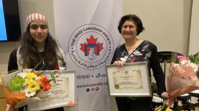 قدم فرع مونتريال للجمعية العراقية الكندية، بمناسبة يوم المرأة العالمي، شهادات تقدير لكلّ من هالة العبيدي (إلى اليمين) وحنين أوميد، وهما من أصل عراقي وتقيمان في مونتريال. الصورة: Radio Canada International CANADAكندا عربي [تقرير] تكريم لِلمرأة العراقية الكندية في يومها العالمي by admin 11 مارس، 2024 written by admin 11 مارس، 2024 258 راديو كندا الدولي / سمير بن جعفر احتفل أول أمس الجمعة فرع الجمعية العراقية الكندية في مونتريال بيوم المرأة العالمي الذي يصادف أيضا تاريخ تأسيسه منذ ثلاث سنوات. وأقيمت الفعالية باسم المهندسة المعمارية العراقية البريطانية الراحلة زها حديد وطبعتها الأحداث الجارية حاليّا في غزة. وفي كلمتها الافتتاحية، طلبت ياسمين الورد، مضيفة الاحتفال، من الحضور الوقوف دقيقة صمت ترحّما على أرواح ضحايا الحرب الدّائرة منذ خمسة شهر في غزة. وقالت انتصار الناصري، رئيسة الجمعية، إنّنا ’’نحتفل اليوم بروح الإبداع التي تمتاز بها المرأة العربية.‘‘ وذكرت بدورها المرأة الفلسطينية. نحتفل اليوم بروح التضحية التي تتسم بها المرأة الفلسطينية. ونؤكّد على ضرورة تحقيق المساواة والعدالة الاجتماعية والاقتصادية. ونواصل دعمنا وتقديرنا لها ونعمل معاً من أجل مستقبل يحمل الحرية والسلام والعدالة للجميع.ن قلا عن انتصار الناصري، رئيسة الجمعية العراقية الكندية في مونتريال وأضافت أنّ الجمعية تؤكّد على دعمها المستقل للمرأة العراقية في الداخل والخارج. احتفل فرع مونتريال للجمعية العراقية الكندية بالذكرى الثالثة لتأسيسه والذي تتزامن مع اليوم العالمي للمرأة. ياسمين الورد (الأولى من اليسار) مضيفة الأمسية وانتصار الناصري (الرابعة من اليسار) رئيسة الجمعية.الصورة: Radio Canada International / Samir Bendjafer وتأسست الجمعية العراقية الكندية في عام 1991 في ميسيساغا. وفي حوار مع راديو كندا الدولي، أوضحت انتصار الناصري أنّ ’’الجمعية تأسست في البداية في [مقاطعة] أونتاريو التي يقيم فيها أكبر عدد من العراقيين في كندا.‘‘ وفي 2021، تمّ تحويل الجمعية إلى منظمة تخضع للقانون الفدرالي ما سمح باستحداث فروع خارج أونتاريو منها فرع مونتريال. ولم تولد الجمعية بسبب هذا الأمر الإداري ولكنّ حسب انتصار الناصري، ’’كان الناس في الهجرة يرون أنّ التغيير في العراق صعب بعد سنوات الحرب. ولكنّ في عام 2021 كانت هناك حركة شبابية [في العراق] تطالب بحقوقها وبالتغيير وبحياة أفضل. ونمّى هذا فينا شعوراً بأنّ هناك أمل في التغيير فجئنا لندعم الداخل ونحن متواجدين في الخارج.‘‘ وقالت إنّ هذا الدعم ’’وطني وليس سياسياً‘‘. ويشاطرها الرأي محمد جواد، وهو عضو في الجمعية، قال في حديث مع راديو كندا الدولي ’’إننا ندعم التغيير للنهوض بالبلد.‘‘ وقامت الجمعية بحملات توعية موجهة للمرأة في العراق. وأدّت الحروب التي عرفتها العراق في العقدين الأخيرين إلى زيادة كبيرة في عدد الأرامل والأيتام. ’’فتحنا مراكز خياطة في مناطق ومحافظات مختلفة في العراق لتمكين النساء حيث يقمن بالخياطة والبيع بأنفسهن‘‘، كما قالت. وأوضح محمد جواد أنّ عدد العراقيين في مقاطعة كيبيك أقلّ من عددهم في مقاطعة أونتاريو المجاورة. ويعود ذلك لحاجز اللغة الفرنسية. عدد العراقيين في كيبيك يتراوح بين 7 و 8 آلاف شخص. يوجد عدد أكبر في أونتاريو [في مدن مثل] كيتشنر، وندسور، ميسيساغا، تورونتو حيث هناك حضور واضح للجالية العراقية. ويوجد عدد أقل في فانكوفر. نقلا عن محمد جواد، عضو لجمعية العراقية الكندية في مونتريال ألقى عدد من شعراء الجالية العربية في مونتريال قصائد شعرية خلال هذه الأمسية. من اليمين إلى اليسار: غادة الأرناؤوط، مشارك، هتاف السوقي، ثراء حسن الجادي وإيهاب للطيف. عيسى حسن الياسري (جالس على الكرسي).الصورة: Radio Canada International وحضر الفعالية عدد من شعراء الجالية العربية في كندا ألقوا قصائد عن المرأة وعن المرأة الفلسطينية. هالة العبيدي وحنين أوميد وسلّمت الجمعية بمناسبة يوم المرأة العالمي شهادات تقدير لكلّ من هالة ا