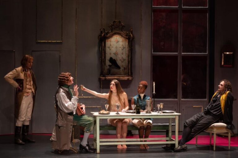 من أجواء مسرحية "دون جوان" على مسرح أوديون الباريسي (خدمة المسرح) ثقافة و فنون “دون جوان” موليير يفرط في لعبة الإغراء وينال عقابه by admin 27 أبريل، 2024 written by admin 27 أبريل، 2024 356 صيغة مسرحية جديدة أنجزتها المخرجة ماشا ماكييف قي مسرح الأوديون الباريسي اندبندنت عربية / كاتيا الطويل @katiatawil الجمعة 26 أبريل 2024 14:34 تعد شخصية دون جوان (أو دون خوان بالإسبانية) شخصية مسرحية أسطورية خالدة كثر العمل عليها وتقديمها أدبياً ومسرحياً عبر العصور، بأشكال مختلفة وأنماط كتابية متنوعة. وطالما شكلت شخصية هذا الرجل الأرستقراطي الوسيم الثائر الذي يغوي النساء، بعذب كلماته وسلطته ومكانته، معضلة أخلاقية ومصدر إلهام أدبي للكتاب. فدون جوان بقدرته الهائلة على الإيقاع بالجميلات، بشخصيته المثيرة والشيقة والمحفزة، تحول بالنسبة إلى الكتاب والشعراء والمسرحيين نموذجاً محبباً لزير نساء ثائر، يعيدون كتابته كل بحسب ثقافته وعصره وبيئته. فتقول الأسطورة إن دون جوان كان شابا ثرياً مشهوراً وسيماً ذا مكانة مرموقة في المجتمع، لكنه كان كذلك رجلاً لعوباً عاشقاً للجميلات يغويهن من دون رادع ديني أو أخلاقي أو اجتماعي. وبعد إشارات وتحذيرات عدة من الأعلى لم يستمع إليها ولم يعبأ بها، ينال دون جوان عقابه بنزوله إلى الجحيم كالخطأة. ومن الجدير ذكره أن دون جوان ظهر للمرة الأولى في القرن الـ17 في إسبانيا، قبل أن يذيع صيته لاحقاً في أوروبا ثم في العالم أجمع. وتنسب كتابة هذه الشخصية للشاعر الباروكي الإسباني تيرسو دي مولينا، في روايته “ماجن إشبيليا” التي نشرت عام 1620، (El burlador de Sevilla y convidado de Piedra,Tirso de Molina) ليعود إليها لاحقاً عدد هائل من الكتاب والمسرحيين، أبرزهم الفرنسي موليير (توفي سنة 1673)، والنمسوي موزارت (توفي سنة 1791)، والبريطاني اللورد بايرون (توفي عام 1824)، والإيرلندي جورج برنارد شو (توفي عام 1950).صراع دون جوان في المسحرية (خدمة المسحر) صراع دون جوان في المسرحية (خدمة المسرح) تقدم المخرجة المسرحية ومصممة الديكور والأزياء، الروسية الأصل، ماشا ماكييف حالياً مسرحية “دون جوان” بحسب نص موليير على مسرح “أوديون” الباريسي العريق. وليست هذه التجربة الأولى لماكييف مع أعمال موليير، إذ قدمت مديرة مسرح La Criée، وهو المسرح الوطني في مرسيليا، أعمالاً متعددة له، منها “النساء العالمات” (Les femmes savants) عام 2015، وطرطوف (Tartuffe) عام 2020. تقدم ماشا ماكييف عملاً تاريخياً كلاسيكياً عبر رمزية الألوان والأخيلة وخلال عناصر مسرحية متعددة حذقة، تختار أن تنقل عبرها معضلة أخلاقية دينية أزلية وهي علاقة الإنسان بخالقه. والمتعارف عليه في الميثولوجيا والأديان السماوية الثلاث أن الإنسان الفاني الذي يعصى الوصايا ويتجرأ على النهل من منابع السعادة واللذة من دون رادع، إنما ينزل به الإله شر عقاب، وهو ما يحدث تماماً مع دون جوان. فكيف يبدو دون جوان موليير وماشا ماكييف؟ هل هو بطل مغو متهور يتحدى الآلهة أم هو رجل حزين ملعون؟ وكيف تمكنت ماكييف من تقديم معضلتها الأخلاقية من خلال عناصر الديكور وألوانه؟ أحمر الحب والغضب تستند ماكييف في مسرحيتها “دون جوان” إلى ثلاثة ألوان حاضرة بقوة تجسد مراحل حياة دون جوان وتسلط الضوء على طبعه ومصيره القاتم. فيقع المتفرج أولاً على حضور قوي وواضح للون الأحمر الذي تتغير معانيه ورمزياته بتقدم أحداث العرض الذي يمتد إلى ساعتين ونصف ساعة. الحب والعقاب (خدمة المسرح) يرمز الأحمر في بداية المسرحية إلى لعبة الشغف واللذة والإروتيكية المتفلتة التي يعيشها دون جوان. فيرمز الأحمر الموجود في غرفة نوم دون جوان، وفي مرحلة أولى، إلى ألاعيبه الشبقة وانصياعه لغريزته وتحديه الممنوعات الأخلاقية والدينية والاجتماعية. يرمز الأحمر في هذه المرحلة إلى الخطيئة وإلى الرغبة ليصطبغ دون جوان بلون الراكض خلف المحرمات والملذات الجسدية. في مرحلة تالية يتحول اللون الأحمر الذي يطغى على خلفية المسرح إلى لون التهديد والوعيد، لون الغضب السماوي الذي يدعو دون جوان إلى 