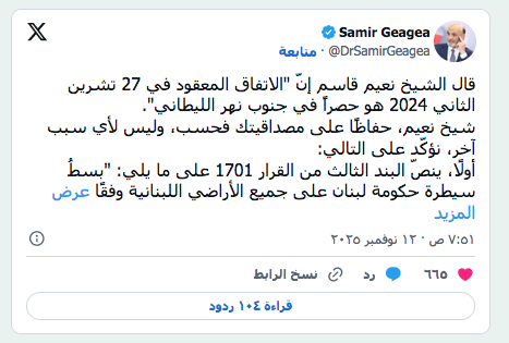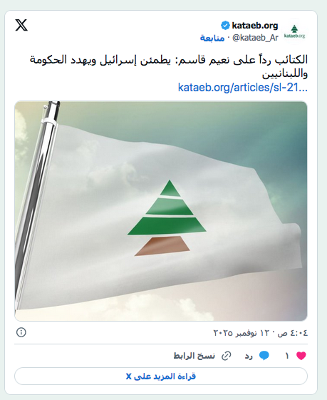 أمين عام «حزب الله» نعيم قاسم خلال إلقاء كلمة متلفزة (إعلام الحزب) عرب وعالم رفض لبناني لكلام قاسم: لطمأنة أهالي الجنوب بدل المستوطنات الإسرائيلية by admin 13 نوفمبر، 2025 written by admin 13 نوفمبر، 2025 63 مواقف عدَّت أن تهديداته باتت موجّهة للداخل وليس لإسرائيل الشرق الاوسط / بيروت: كارولين عاكوم اتسم خطاب أمين عام «حزب الله» نعيم قاسم الأخير بالكثير من التناقضات التي رأى فيها بعض الأفرقاء اللبنانيين «طمأنة لإسرائيل» وتهديداً للداخل وللحكومة اللبنانية، عبر إصراره على الاحتفاظ بسلاحه ومواجهة أي قرارات ضده. وأتت مواقف قاسم في ظل الضغوط التي يتعرض لها الحزب في الفترة الأخيرة؛ إذ قال: «نحن في (حزب الله) نقول إن اتفاق وقف إطلاق النار هو حصراً لجنوب الليطاني، وعلى إسرائيل الخروج من لبنان، وإطلاق سراح الأسرى، ولا خطر على المستوطنات الشمالية»، محبطاً في المقابل جهود المسؤولين اللبنانيين للتفاوض مع إسرائيل قبل تنفيذ اتفاق نوفمبر (تشرين الثاني). «إرباك وتخبّط» وفي تعليقها على كلام قاسم، قالت مصادر وزارية مقربة من الرئاسة اللبنانية، لـ«الشرق الأوسط»: «لا نعلم إذا كان كلام قاسم دليل إرباك وتخبط أم ماذا؟». وتضيف: «عندما يقول بأن لا خوف على مستوطنات الشمال يعني أنه لا يريد أن يردّ على الانتهاكات الإسرائيلية، وبالتالي يطرح هنا السؤال المنطقي: لماذا لا يريدون القبول بمبادرة رئيس الجمهورية (جوزيف عون) للتفاوض وإنهاء هذا الواقع على الحدود الجنوبية؟ أليس بالأحرى طمأنة أهالي هذه القرى التي تعيش يومياً على وقع التهديدات الإسرائيلية وتأمين الاستقرار لهم عبر التفاوض وانتشار الجيش اللبناني؟». وتتابع المصادر: «السؤال الثاني هو: لماذا يريد الحزب الاحتفاظ بسلاحه شمال الليطاني، وأين سيستخدمه؟». وفي تناقض واضح في كلام قاسم، أكد في خطابه أن «استمرار العدوان لا يمكنُ أن يستمرّ، فلكلّ شيءٍ حدّ». عنصر في «يونيفيل» يقف إلى جانب مدنيين يزيلون الركام الناتج من غارة إسرائيلية استهدفت الطيبة بجنوب لبنان الخميس الماضي (أ.ف.ب) وفي ردها على مطالبة قاسم الحكومة بـ«أن تتصرف على أساس حماية المواطنين، وحماية المنظومة الاجتماعية، ومسؤوليتها عن الإعمار والبناء»، وقوله: «ليس دور الحكومة اللبنانية أن تستمع إلى الإملاءات الأميركية وتبدأ بتنفيذها»، تقول المصادر الوزارية: «دور الحكومة أن تتخذ القرارات وعلى الأطراف المعنية تنفيذها، ولا سيما الطرف الذي أدخل لبنان في حرب الإسناد من دون العودة إلى الدولة اللبنانية». يأتي ذلك بينما أبدى رئيس الجمهورية أكثر من مرة استعداد لبنان للتفاوض مع إسرائيل، في حين أكد «حزب الله» رفضه أن «يُستدرج» لبنان إلى تفاوض مع إسرائيل. وقال قاسم في كلمته: «لن نتخلّى عن سلاحنا الذي يعطينا هذه العزيمة وهذه القوة، ويمكّنُنا من الدفاع». خطة لاستعادة السيادة وفي كلامه وجّه قاسم انتقاداً للحكومة، سائلاً: «لماذا لا تضعُ الحكومةُ خطّةً زمنيّةً واضحةً لاستعادة السيادة الوطنيّة وتكليف القوى الأمنيّة بتنفيذها؟ إذا كان الجنوب نازفاً اليوم، فالنزيفُ سيطول كلّ لبنان بسبب أميركا وإسرائيل، ولا يمكن أن يستمرّ الوضع على ما هو عليه، فلكلّ شيءٍ نهايةٌ، ولكلّ صبرٍ حدود». وفي هذا الإطار، تقول المصادر الوزارية: «لا شك أننا نوافق قاسم على أهمية وضع خطة لاستعادة السيادة كما أن نزيف الجنوب سيؤدي إلى نزيف كلّ لبنان، لكن المشكلة تكمن في أن الحزب وبعد كل ما حصل في الحرب الأخيرة لا يريد أن يطبق قرارات الحكومة التي جاء فيها خطة حصرية السلاح بيد الدولة لاستعادة السيادة، وهي التي كان الحزب نفسه وافق عليها عبر منح الثقة للحكومة بناءً على بيانها الوزاري الذي نص بشكل واضح على هذا الأمر كما على خطاب قسم رئيس الجمهورية». «الكتائب»: ما وظيفة السلاح بعد طمأنة إسرائيل؟ وفي ردّ منه على قاسم، أصدر حزب «الكتائب اللبنانية» بياناً قال فيه إن «قاسم طمأن الإسرائيلي بأن لا خطر يهدّد مستوطناته الشمالية، ويُبدي استعداد حزبه لإ