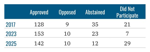 بأقلامهم روبرت ساتلوف يكتب عن: لمحة عن تفاقم العزلة الدبلوماسية لإسرائيل: مقارنة بين التصويتات الرئيسية في الجمعية العامة للأمم المتحدة، 2017 – 2025 by admin 23 سبتمبر، 2025 written by admin 23 سبتمبر، 2025 220 washingtoninstitute / روبرت ساتلوف روبرت ساتلوف يشغل منصب المدير التنفيذي لـ”سيغال” في معهد واشنطن منذ عام 1993. English تسلط أنماط التصويت في الجمعية العامة للأمم المتحدة الضوء على تفاقم العزلة الدولية لإسرائيل، إذ تخلى عنها حتى بعض المدافعين الذين ناصروها منذ فترة طويلة. كان الأسبوع الماضي من أسوأ الأسابيع التي مرت على الدبلوماسية الإسرائيلية في الآونة الأخيرة: يوم الثلاثاء، أثارت الضربة العسكرية التي استهدفت قادة “حماس” في الدوحة إدانة صريحة من الرئيس ترامب. يوم الخميس، أصدر مجلس الأمن الدولي بياناً يدعم قطر ويدين الضربة، وذلك بإجماع الأعضاء، في خطوة نادرة منذ غزو روسيا لأوكرانيا. ورغم أن واشنطن حالت دون الإشارة إلى إسرائيل بالاسم في البيان، إلا أن رسالة الغضب الجماعي كانت واضحة. يوم الجمعة، صوتت 142 دولة من أصل 164 في الجمعية العامة لصالح مبادرة فرنسية – سعودية لإنشاء دولة فلسطينية، وذلك رغم اعتراضات إسرائيل والولايات المتحدة. وفيما يركّز العديد من المراقبين – بشكل مفهوم – على حادثة قطر وتأثيرها المباشر على حرب غزة وتداعياتها على اعتماد دول الخليج على الضمانات الأمنية الأمريكية، يبقى تصويت الجمعية العامة على تأييد “إعلان نيويورك” بشأن حل الدولتين أمراً بالغ الأهمية. وليس ذلك لكون الإعلان يحمل صلة حقيقية بصنع السلام الفعلي بين إسرائيل وفلسطين – بل على العكس تماماً؛ إذ إنّه، كحال العديد من قرارات الجمعية العامة، سيُطوى سريعاً، نظراً إلى أن دعوته لإقامة دولة ترتكز على سلطة فلسطينية مُصلحة تفتقر كلياً إلى أي ارتباط بالواقع السياسي الراهن للطرفين. بل إن الأهمية الحقيقية تكمن في أن حصيلة الأصوات وأنماط الامتناع عن التصويت تكشف بوضوح تفاقم عزلة إسرائيل الدولية، لدرجة أن بعض المدافعين عنها منذ فترة طويلة قد تخلّوا عنها مؤخراً. ويزداد هذا الاتجاه المثير للقلق وضوحاً عند تتبّع التصويت على ثلاثة قرارات متحيّزة صادرة عن الجمعية العامة للأمم المتحدة بشأن القضية الإسرائيلية – الفلسطينية: أولها في كانون الاول/ديسمبر 2017، والذي انتقد بشكل ضمني إدارة ترامب الأولى لنقل السفارة الأمريكية إلى القدس، حيث وصف القرار هذا النقل بأنه “لاغٍ وباطل”، وحثّ الدول الأخرى على الامتناع عن نقل سفاراتها إلى المدينة المقدسة؛ وثانيها في كانون الاول/ديسمبر 2023 خلال إدارة بايدن، والذي دعا إلى وقف فوري وشامل لإطلاق النار في غزة لدوافع إنسانية؛ أما القرار الثالث والأخير فيتمثّل في التصويت الذي جرى الأسبوع الماضي لتأييد إنشاء دولة فلسطينية مستقلة في خضم حرب دائرة. وجاءت نتائج هذه التصويتات النهائية على النحو التالي: تكشف نظرة فاحصة عن عدة جوانب مثيرة للاهتمام في هذه التصويتات: تبدو مجموعة “المعارضين” متماسكة في الظاهر، لكنها كشفت عن تقلب واضح، حيث صوّتت أربع عشرة دولة مختلفة بـ”لا” في مرحلة أو أخرى. وبجانب الولايات المتحدة وإسرائيل، لم تُعارض سوى دولتين كافة القرارات الثلاثة: ميكرونيسيا وناورو. يُمثّل انخفاض عدد حالات الامتناع عن التصويت اتجاهاً مقلقاً بالنسبة لإسرائيل، نظراً لأن الامتناع يُعتبر في العرف الدبلوماسي لدى الجمعية العامة للأمم المتحدة نوعاً من أنواع الدعم السلبي لإسرائيل. ولم تُظهر معارضة أو امتناعاً ثابتاً في كل التصويتات الثلاثة سوى ثلاث دول: غواتيمالا، التي عارضت قراري 2017 و2023 وامتنعت عن التصويت الأسبوع الماضي، بالإضافة إلى الكاميرون وجنوب السودان، اللذين امتنعا عن التصويت في المناسبات الثلاث جميعها. غير أن الغالبية العظمى من الدول التي امتنعت عن التصويت في 2017 و2023 انتهت إلى تأييد القرار الأخير في نهاية المطاف. يُعدّ تراجع عدد حالات الامتناع عن التصويت خطيراً بشكل خاص بين ا