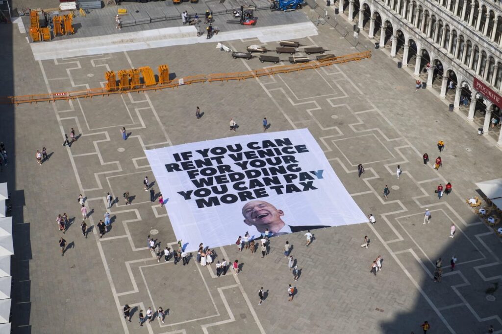 متظاهرون في البندقية يعلقون لافتة مناهضة لـ بيزوس على جسر ريالتو قبيل زفاف الملياردير (رويترز) منوعات زفاف بيزوس يغرق البندقية في بحر الثراء والغضب الشعبي by admin 27 يونيو، 2025 written by admin 27 يونيو، 2025 81 بينما يستعد ملياردير التكنولوجيا وعروسه لتصدر الأضواء بزفاف تبلغ كلفته 10 ملايين دولار يهيمن خلاله على المدينة الإيطالية التراثية في ذروة موسم السياحة، كانت الاحتجاجات بدأت فعلاً في التصاعد لتعرقل بعضاً من خططهما اندبندنت عربية / زوي بيتي تبدأ الحكاية، حالها حال كل الأساطير الجميلة، بموازنة قدرها 10 ملايين دولار، ويخت عملاق بحجم ملعب كرة قدم، وشبكة من النجوم اللامعين إلى حد تكاد جاذبيتهم تغير مجرى الأمور [تقلب عالم البندقية رأساً على عقب]. هذا الأسبوع، يتحول زفاف جيف بيزوس ولورين سانشيز إلى عرض فخم من البذخ المترف. بعد قصة حب دامت خمس سنوات، خطط الثنائي لحفلة استثنائية في قلب مدينة البندقية، تلك المدينة الساحرة بقنواتها المتعرجة، وجمالها الذي لا يذبل، وعمارتها التي تقف شامخة منذ قرون، لكن المدينة الأدرياتيكية لا تذوب عشقاً – بل تغلي غضباً، فالسكان المحليون في حالة سخط تام. يقولون إن أحد أغنى رجال الأرض يحتجز مدينتهم “رهينة”، فبالنسبة إلى أبناء البندقية، لا يبدو هذا الزفاف وجهة رومانسية، بل أشبه بالاحتلال. يرى السكان والنشطاء أن هذه الزيجة، بما تحمله من إسراف فاحش، على وشك أن تحول موطنهم إلى “مكان لهو للأثرياء”. وماذا عن ردود الفعل؟ احتجاجات واسعة تعم أرجاء المدينة، في محاولة لتعكير صفو ما يروج له على أنه “زفاف العام”. “ببساطة، سيتعامل مع المدينة بأكملها كما لو كانت قاعة رقص خاصة، مساحة مغلقة لحفلته، وكأن السكان غير موجودين أصلاً”، هكذا صرحت أليتشه باتزولي، الناشطة في حركة “لا مكان لـ بيزوس” No Space for Bezos، وهي مجموعة تحتج على ما تسميه “خصخصة” و”استغلال” المدينة من الملياردير. بينما تضيف فيدريكا تونينيلي، وهي ناشطة أخرى من الحركة نفسها، في تصريح لقناة “سكاي نيوز”: “ليس هذا ما تحتاج إليه البندقية. ليس هذا ما تحتاج إليه مدينة تعاني أساساً من السياحة المفرطة”. أما “البصمة البيئية للترف”، وهي الأثر البيئي الناجم عن تدفق الطائرات الخاصة واليخوت الفاخرة خلال عطلة نهاية الأسبوع، فستكون هائلة، كما يقول النشطاء، وهي انعكاس صارخ لحجم الضرر الذي ألحقه طوفان السياحة غير المنضبطة والتسليع المفرط بروح المدينة. لكن هذه المرة، أضيفت إلى المعادلة وقاحة التفرد والاستثناء. أما التفاصيل فبسيطة: هذا الأسبوع، من المقرر أن يعقد الملياردير بيزوس وخطيبته، المذيعة السابقة التي أصبحت إحدى نجمات المجتمع، قرانهما في مدرج يقع ضمن مجمع محصن تملكه مؤسسة تشيني في جزيرة سان جورجيو. وكان من المقرر أن يرسو يخت بيزوس الفاره “كورو” Koru، الذي تبلغ قيمته 500 مليون دولار (ما يعادل 370 مليون جينه استرليني) ويزن 3493 طناً – أطول يخت شراعي في العالم – في بحيرة البندقية، لكن أمام تصاعد الاحتجاجات، ربما سيكون من الأفضل إبقاؤه في كرواتيا، فيما يتنقل بيزوس وضيوفه إلى المدينة على متن طائرات مروحية. رئيس إمبراطورية “أمازون” ومالك صحيفة “واشنطن بوست“، الذي طلب يد سانشيز بخاتم خطوبة من الألماس بقيمة 2.5 مليون دولار عام 2023، قيل إنه استحوذ على عدد كبير من سيارات الأجرة المائية في البندقية لخدمة ضيوفه، كما حجز أفخم الفنادق والمواقع الفاخرة في أرجاء المدينة. وتشير التقارير إلى أنهم حجزوا قصر غريتي، وفندق دانييلي، وأمان فينيس، وفندق بلموند شيبرياني، وفندق سانت ريجيس فينيسيا، لإحياء احتفال يمتد على مدار ثلاثة أيام. تبدأ أسعار الغرف في قصر غريتي وفندق أمان من 3200 دولار لليلة الواحدة، وقد تصل إلى 10 أضعاف هذا المبلغ في الأجنحة الأفخم. نشطاء غرينبيس ينظمون احتجاجاً ضد حفلة زفاف جيف بيزوس في البندقية (غرينبيس) على كل حال، فقد تم استبعاد أحد المواقع التي كانت مطروحة، وهو سكولا غراندي ديلا ميسيريكورديا – وه