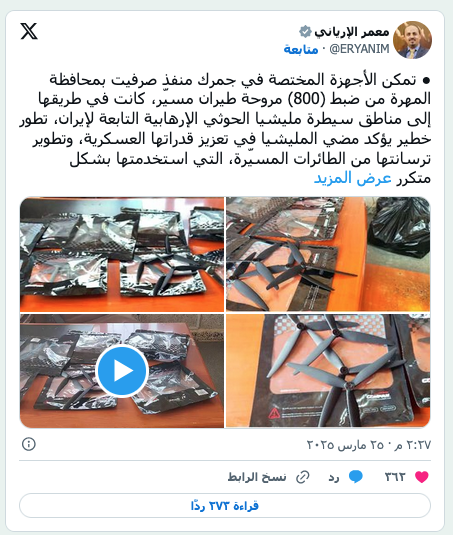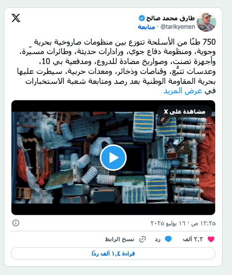 صورة للسفينة المضبوطة نشرها الإعلام العسكري لقوات المقاومة الوطنية اليمنية عرب وعالم «صفعة بحرية» للحوثيين بعد ضبط أكبر شحنة أسلحة إيرانية by admin 17 يوليو، 2025 written by admin 17 يوليو، 2025 106 طارق صالح تعهد بجهود لا تتوقف ضد مشاريع «الحرس الثوري» الشرق الاوسط / الرياض: جبير الأنصاري وجَّهت قوات المقاومة الوطنية اليمنية «صفعة» بحرية للحوثيين بعد ضبطها شحنة أسلحة إيرانية «ضخمة»، ووصفت القيادة المركزية الأميركية العملية بأنها الأكبر في تاريخ إحباط الأسلحة الإيرانية للجماعة. وتعهد طارق صالح، عضو مجلس القيادة الرئاسي اليمني، قائد القوات التي تتخذ من الساحل الغربي مقراً لها، «بجهود لا تتوقف ضد مشاريع (الحرس الثوري)»، وذلك عبر منشور على منصة «إكس» يوم الأربعاء. وقالت القيادة المركزية الأميركية، إن قوات يمنية «صادرت أكثر من 750 طناً من الذخائر والعتاد تضم مئات الصواريخ المتطورة المضادة للسفن وطائرات ورؤوساً حربية وأجهزة بحث، بالإضافة إلى مئات المحركات لطائرات مسيرة، ومعدات دفاع جوي، وأنظمة رادار ومعدات اتصالات». وأوضح طارق صالح أن العملية جاءت بعد رصد ومتابعة شعبة الاستخبارات في «المقاومة الوطنية»، مضيفاً أن الأسلحة المضبوطة توزعت بين «منظومات صاروخية بحرية وجوية، ومنظومة دفاع جوي، ورادارات حديثة، وطائرات مسيرة، وأجهزة تنصت، وصواريخ مضادة للدروع، ومدفعية بي 10، وعدسات تتبُّع، وقناصات وذخائر، ومعدات حربية». ومن المرتقب أن ينشر «الإعلام العسكري» التابع للمقاومة عن تفاصيل العملية، وعلَّق صالح بأن شحنة الأسلحة جاءت «استمراراً لقتالهم (إيران والحوثيين) الشعب اليمني، والسيطرة على قراره ومصادرة سلطته الجمهورية». رهان إيران تصاعد عمليات التهريب في العامين الماضيين، بحسب باحثين، يشير إلى عدم توقف الدعم الإيراني للحوثيين، بل اتخذ طابعاً أكثر تنوعاً، بالتوازي مع تصعيد الجماعة لعملياتها في البحر الأحمر، وتنفيذ هجمات طالت أهدافاً إسرائيلية. يقول محمود شحرة، الزميل المشارك في المعهد الملكي البريطاني للشؤون الدولية (شاتام هاوس) لـ«الشرق الأوسط»: «كان هناك اعتقاد بأن إيران ستكون مشغولة بترميم وضعها الداخلي عوضاً عن دعم إحدى أبرز أذرعها وهم الحوثيون، ولكن الحقيقة أن إصرار إيران اتضح أنه أكثر، وأنها لن تتخلى عن استثمارها فيهم». ويرى شحرة أن «الحوثيين يعتبرون الذراع المتقدمة والبارزة حديثاً، ووظيفتهم هي ليس الدفاع عن إيران، ولكن الهجوم من أجلها، وهي فرصة لـ(توزيع الأحمال)، كما وصفها أحد المحللين، خاصة بعد سقوط أذرعها في سوريا ولبنان». قوات المقاومة اليمنية صادرت أكثر من 750 طناً من الذخائر والعتاد (الإعلام العسكري) ولا تعترف إيران صراحة بدعم الحوثيين، وسبق لمسؤولين إيرانيين نفي ارتباطهم بتهريب الأسلحة إلى الجماعة. يقرأ الباحث في «شاتام هاوس» ذلك بالقول إن «السردية معروفة. إيران اعترفت بعلاقتها بشكل رسمي مع كل أذرعها في العراق ولبنان وسوريا إلا جماعة الحوثيين»، ويعود السبب كما يرى إلى رغبة طهران في خوض مغامراتها عبر الحوثيين، ويرجع ذلك لسلوكيات الجماعة إذ لا تلزمها مثلاً بقواعد الاشتباك، فهي في حالة تصعيد دائمة، وتعد أكثر مغامراتية من بقية أذرع إيران. «إيران تقوم بما يمكن تسميته تخفيف أحمال، وتريد نقل الجبهة إلى اليمن، بحيث تنقل التركيز والمعركة على الحوثيين»، بحسب شحرة الذي أضاف أن «طهران ستحرص حتى وهي في حالة حرب على استمرارية برنامج تهريب الأسلحة من قبل (الحرس الثوري) الإيراني إلى الحوثيين في اليمن». ويعتقد الباحث في «شاتام هاوس» أن «ردع الحوثيين مكلف على المجتمع الدولي، ولكن مستقبلاً سيكون أكثر تكلفة». تضم الشحنة المضبوطة مئات الصواريخ المضادة للسفن وطائرات ورؤوساً حربية (الإعلام العسكري) تدفق الأسلحة لم يتوقف الدعم الإيراني، بحسب الباحثين، للحوثيين خلال سنوات الحرب، وتكشف عمليات متعددة لضبط الأسلحة اعتماد الجماعة على شبكات تهريب معقدة تنشط عبر البحر الأح