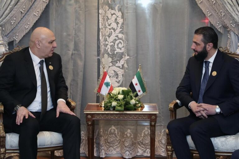 لقاء عون والشرع على هامش القمة العربية الطارئة في القاهرة (حساب الرئاسة اللبنانية على منصة إكس) عرب وعالم عون يبحث مع الشرع “ضرورة” ضبط الحدود اللبنانية-السورية by admin 5 مارس، 2025 written by admin 5 مارس، 2025 159 الرئيسان تناولا عدداً من المسائل العالقة في لقاء هو الأول بينهما اندبندنت عربية / أ ف ب التقى الرئيس اللبناني جوزاف عون في القاهرة الثلاثاء الرئيس السوري أحمد الشرع على هامش القمة العربية الطارئة في القاهرة بشأن غزة، وفق الرئاسة اللبنانية التي أشارت إلى أن الرئيسين شددا على “ضرورة” ضبط الحدود بين البلدين. ويتشارك لبنان وسوريا حدوداً بطول 330 كيلومتراً غير مرسمة في أجزاء كبيرة منها وخصوصاً في شمال شرق البلاد مما جعلها منطقة سهلة للاختراق من جانب مهربين أو صيادين أو حتى لاجئين. وجاء في بيان للرئاسة اللبنانية على منصة إكس أن عون والشرع “تناولا عدداً من المسائل العالقة”. وتابعت الرئاسة اللبنانية “تم الاتفاق على التنسيق عبر لجان مشتركة تُشكَل بعد تأليف الحكومة السورية الجديدة”، كما تم “التأكيد على ضرورة ضبط الحدود بين البلدين لمنع جميع أنواع التجاوزات”. واللقاء هو الأول بين الرجلين. وكانت السلطات السورية أعلنت في مطلع فبراير (شباط) إطلاق عملية أمنية في منطقة حمص الحدودية (وسط) “لإغلاق طرق تهريب الأسلحة والبضائع”. ووفق المرصد السوري لحقوق الإنسان فقد هدفت الحملة إلى “طرد المسلحين والمهربين ومطلوبين من تجار المخدرات وشخصيات مقربة من (حزب الله) اللبناني”. ومنذ العام 2013، أي بعد عامين على اندلاع النزاع في سوريا، بدأ “حزب الله” اللبناني القتال بشكل علني دعماً لجيش النظام السوري السابق. وشكلت المناطق الحدودية مع لبنان في ريف حمص، وفيه قرى ذات غالبية شيعية يقطن بعضها لبنانيون، محطة لوجستية مهمة للحزب إن على صعيد نقل العناصر أو إقامة مخازن للأسلحة. وأقر الأمين العام لـ “حزب الله” نعيم قاسم في ديسمبر (كانون الأول) بأن الحزب لم يعد قادراً على تلقي إمدادات عسكرية عبر سوريا عقب سقوط بشار الأسد. المزيد عن: لبنانسورياالحدود اللبنانية السوريةجوزاف عونأحمد الشرعالقمة العربيةحزب اللهتهريب الأسلحةتهريب المخدراتسقوط بشار الأسد 0 comment 0 FacebookTwitterPinterestEmail admin previous post (22 اتفاقية) شبه منجزة بين السعودية ولبنان… متى موعد التوقيع؟ next post كيف تعامل العرب تاريخيا مع القضية الفلسطينية؟ You may also like هل يصدر لبنان مذكرة توقيف بحق نعيم قاسم؟ 10 مارس، 2026 كواليس دعم روسيا لإيران في حربها مع أميركا... 10 مارس، 2026 التطورات الميدانية تقلب موازين حرب “زئير الأسد” 10 مارس، 2026 زعيم” كومله” الكردي: ترمب اتخذ قرارا شجاعا ونرحب... 10 مارس، 2026 تقرير: لبنان طلب إجراء مفاوضات مباشرة مع إسرائيل 10 مارس، 2026 الأحواز: الهوية والنفط والصراع على الأرض 10 مارس، 2026 أستراليا تمنح اللجوء لـ5 لاعبات من منتخب إيران... 10 مارس، 2026 هل يشكّل حصار أو احتلال جزيرة (خارك/ خرج)... 10 مارس، 2026 قوات “دلتا” تتأهب.. كيف سيكون شكل الهجوم البري... 10 مارس، 2026 الجيش السوري: «حزب الله» أطلق قذائف تجاه نقاط... 10 مارس، 2026