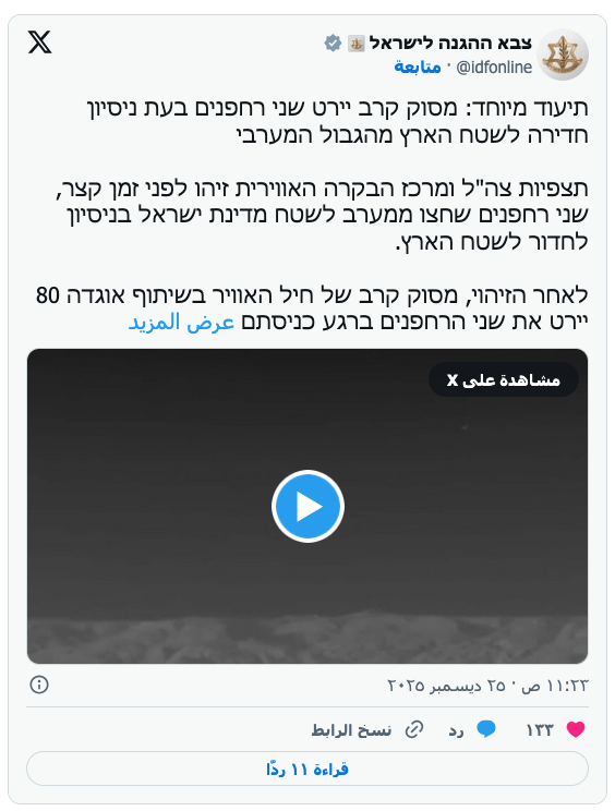 جندي يقف حارساً بالقرب من معبر نيتسانا الحدودي في جنوب إسرائيل، 18 فبراير 2024. (Yossi Zamir_Flash90) عرب وعالم في سابقة، مروحية حربية تابعة لسلاح الجو تسقط طائرتين مسيرتين لتهريب الأسلحة من مصر by admin 29 December، 2025 written by admin 29 December، 2025 148 الجيش يحقق في حادثة مميتة وقعت ليلًا على الحدود، أسفرت عن مقتل رجل بدوي رميًا بالرصاص؛ أُلقي القبض على أحد الناجين من الحادث، لكنه ينفي أن يكون هو والقتيل من المهربين تايمز اوف اسرائيل / ستاف ليفاتون في سابقة هي الأولى من نوعها، اعترضت مروحية حربية تابعة لسلاح الجو الإسرائيلي طائرتين مسيرتين خلال محاولة تهريب من مصر إلى المجال الجوي الإسرائيلي يوم الخميس، حسبما أفاد الجيش الإسرائيلي، ونشر لقطات مصورة للحادثة. ووفقًا للجيش، رصدت وحدات المراقبة التابعة للجيش الإسرائيلي ومركز التحكم الجوي التابع لسلاح الجو طائرتين مسيرتين تعبران “من الغرب” باتجاه الأراضي الإسرائيلية. وقد تم إرسال المروحية بالتنسيق مع فرقة “إدوم” الثمانين، وأسقطت الطائرتين فور دخولهما المجال الجوي الإسرائيلي. وقال مسؤول كبير في سلاح الجو إن عملية الاعتراض تعكس تحولًا أوسع في نهج الدفاع الحدودي الإسرائيلي في ظل تزايد استخدام الطائرات المسيرة لتهريب الأسلحة عبر الحدود. وأضاف المسؤول: “في إطار تغيير جذري في عقيدتنا الدفاعية الحدودية، أنشأ سلاح الجو مراكز تحكم تعمل تحت إشراف التقسيمات الإقليمية، مما حسّن بشكل كبير قدرات الكشف وتوجيه القوات ضد التهديدات الجوية منخفضة الارتفاع”. وأشار المسؤول إلى أن عملية الاعتراض هذه هي الأولى من نوعها. وقال المسؤول: “نواصل تعزيز التعاون والقدرات التشغيلية لإحباط عمليات التسلل على طول الحدود”. أعلن الجيش الإسرائيلي أنه يحقق في حادث إطلاق نار مميت وقع ليلة الأربعاء/الخميس خلال عملية تهريب مشتبه بها في منطقة نيتسانا على الحدود المصرية. وذكرت صحيفة هآرتس أن القتيل مدني بدوي من قرية بئر هداج. وبحسب تحقيق أولي للجيش الإسرائيلي، تورط جندي ومدني، كانا يستقلان سيارة مدنية، في إطلاق النار بعد إتمام عملية مُخطط لها. ولا يزال من غير الواضح ما إذا كان المدني متورطًا في عمليات الجيش الإسرائيلي، وإلى أي مدى. وبينما كانا خارج المنطقة العسكرية العملياتية المحددة، رصد الاثنان عددًا من المشتبه بهم الملثمين الذين يُزعم تورطهم في عمليات تهريب. ثم أطلق المدني النار على إطارات سيارة المشتبه بهم مستخدمًا سلاحه الشخصي وسلاح الجندي، مما أدى إلى انحراف السيارة عن مسارها. منظر للحدود الإسرائيلية المصرية. 9 سبتمبر 2025. (Yaniv Nadav_FLASH90) أُصيب أحد المشتبه بهم في الحادث، وتوفي لاحقًا بعد نقله إلى المستشفى، وفقًا لما أفاد به الجيش. وقد عرّفت صحيفة هآرتس المتوفى بأنه أيوب محمد طوحي، وهو رجل بدوي في العشرينات من عمره. وأُلقي القبض على رجل آخر كان برفقته، وقضت محكمة الصلح في بئر السبع بتمديد حبسه حتى يوم الأحد للاشتباه بتورطه في عمليات تهريب، وذلك بحسب محضر المحكمة الذي نقلته هآرتس. وقال محامو المشتبه به المحتجز للصحيفة إن موكلهم ينفي أي تورط في عمليات التهريب، ويدّعي أنه والسائق لم يدركا أنهما مُطالبان بالتوقف، مشيرين إلى أن السيارة التي أُطلقت منها النيران كانت مدنية وأن ركابها كانوا يرتدون ملابس مدنية. وقال أقارب المتوفى إن أفراد عائلته مُنعوا من الاقتراب من مكان الحادث بعد إطلاق النار، وأن السيارة المتورطة سُحبت ولم تُعاد. وأعلن الجيش الإسرائيلي أن ملابسات تصرف الجندي والمدني قيد التحقيق. ويجري التحقيق في الحادث من قبل فريق مشترك من الشرطة العسكرية والشرطة الإسرائيلية. 0 comment 0 FacebookTwitterPinterestEmail admin previous post تقرير: إسرائيل بدأت بإلقاء الأسلحة جواً على الدروز السوريين بعد أيام من الإطاحة بالأسد next post إعلام إسرائيلي: نتنياهو سيقنع ترامب بقتالٍ ينزع سلاح الحزب You may also like علي بردى يكتب عن: ترمب يتوعد كوبا بعد... 7 March، 2026 أكراد إيران على الجانب العراقي.. ماذا يريدون؟ ومم.