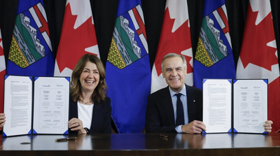 رئيس الحكومة الفدرالية مارك كارني ورئيسة حكومة ألبرتا دانييل سميث يبرزان أمام عدسات المصورين مذكّرة التفاهم لبناء أنبوب نفط التي وقّعاها اليوم في كالغاري. الصورة: La Presse canadienne / Jeff McIntosh CANADAكندا عربي كارني وسميث يوقّعان مذكرة تفاهم لبناء خط أنابيب نفط by admin 30 نوفمبر، 2025 written by admin 30 نوفمبر، 2025 58 راديو كندا الدولي / RCI وقّع رئيس الحكومة الفدرالية مارك كارني ورئيسة حكومة مقاطعة ألبرتا دانييل سميث مذكّرة تفاهم تلزمهما بالعمل على بناء خط أنابيب لنقل نفط ألبرتا إلى ساحل جارتها الغربية، مقاطعة بريتيش كولومبيا، على المحيط الهادي. كما يفتح التفاهم الباب أمام تغييرات على الحظر المفروض على ناقلات النفط الساحلية. وفي حفل التوقيع الذي أقيم اليوم في كالغاري، كبرى مدن ألبرتا، اتفق كارني وسميث على أن تسمح الحكومة الفدرالية بتصدير النفط عبر ميناء بحري عميق إلى الأسواق الآسيوية و’’إذا لزم الأمر‘‘ تعديل حظر ناقلات النفط لتحقيق ذلك. وتنصّ مذكرة التفاهم على أنّ التزام أوتاوا مشروط بأن تتمّ الموافقة على خط الأنابيب كمشروع ذي أهمية وطنية، وبأن يوفر المشروع ’’فرص مُلكية مشتركة للسكان الأصليين ومزايا اقتصادية مشتركة‘‘. منشآت لاستخراج النفط من الرمال الزفتية في منطقة فورت ماكموري في شمال شرق مقاطعة ألبرتا في غرب كندا (أرشيف).الصورة: La Presse canadienne / Jeff McIntosh ’’هذا يوم عظيم حقاً لسكان ألبرتا‘‘، قالت رئيسة حكومة حزب المحافظين المتحد (UCP) في ألبرتا قبل حفل التوقيع. ’’إنه يوم عظيم لألبرتا ويوم عظيم لكندا‘‘، قال من جهته رئيس الحكومة الليبرالية في أوتاوا. ’’في الواقع، لقد أدّى (التفاهم) إلى تحوّل في مجال الطاقة، لكنه فعلياً يمهّد الطريق لتحوّل صناعي. وفي جوهر التفاهم، بالطبع، أولوية إنشاء خط أنابيب (يتيح تصدير النفط) إلى آسيا‘‘، أضاف كارني، ’’وهذا سيجعل كندا أقوى وأكثر استقلالية ومرونة واستدامة‘‘. وتنص مذكرة التفاهم على أنّ الخطة كناية عن بناء خط أنابيب لنقل ما لا يقل عن مليون برميل يومياً. وتشير إلى أنه سيتم بناء خط الأنابيب وتمويله من قبل القطاع الخاص وسيُعطي الأولوية للتصدير إلى آسيا. وقال مسؤولون حكوميون إنه لم يتم بعد تحديد مسار محدد لخط الأنابيب. وتشير مذكرة التفاهم إلى أنه سيتم تقديم طلب مشروع خط الأنابيب إلى مكتب المشاريع الكبرى التابع للحكومة الفدرالية بحلول الأول من تموز (يوليو) المقبل. وكانت سميث قد تعهدت سابقاً بأن يكون جاهزاً في الربيع. مسار خط أنابيب ’’ترانس ماونتن‘‘ في غرب كندا: من محيط إدمونتون، عاصمة مقاطعة ألبرتا، إلى مرفأ بورنابي على ساحل مقاطعة بريتيش كولومبيا.الصورة: Radio-Canada وبينما لم تتقدّم حتى الآن أيّ شركة من القطاع الخاص بعرض لبناء خط الأنابيب، قالت سميث إنّ التفاهم مع أوتاوا يساعد في تهيئة الظروف التنظيمية اللازمة لجذب الاستثمارات. كما يفتح التفاهم الباب أمام إنشاء المزيد من خطوط الأنابيب، حيث ينص على إنشاء خط واحد ’’أو أكثر‘‘ بالإضافة إلى التوسعة المخطط لها لخط أنابيب ’’ترانس ماونتن‘‘. وقال كارني إنّ هناك عدة أمور يجب أن تحدث قبل أن يتم بناء خط أنابيب، بدءاً بتأمين جهة راعية من القطاع الخاص. ’’يجب أن تكون هناك شراكة كاملة، بما في ذلك ملكية أسهم، وفوائد اقتصادية كبيرة للسكان الأصليين في ألبرتا والسكان الأصليين في بريتيش كولومبيا، بالإضافة إلى اتفاق وفوائد اقتصادية كبيرة لسكان بريتيش كولومبيا‘‘، أضاف كارني، ’’نحن ننظر إلى هذا على أنه بداية لعملية‘‘. (نقلاً عن وكالة الصحافة الكندية، ترجمة وإعداد فادي الهاروني) روابط ذات صلة: مشروع أنبوب النفط: نواب ليبراليون يؤكدون عدم التراجع في ملف البيئة سميث في أوتاوا للدفع نحو شراكة مع الحكومة الفدرالية في مشاريع الطاقة الطاقة النووية والغاز المُسال من ضمن مشاريع كارني الكبرى طعنٌ في صحة القانون ’’سي-5‘‘ الذي يسرّع تنفيذ المشاريع الكبرى قمة بين كارني والأمم الأُوَل بشأن قانون المشاريع الكبرى إ