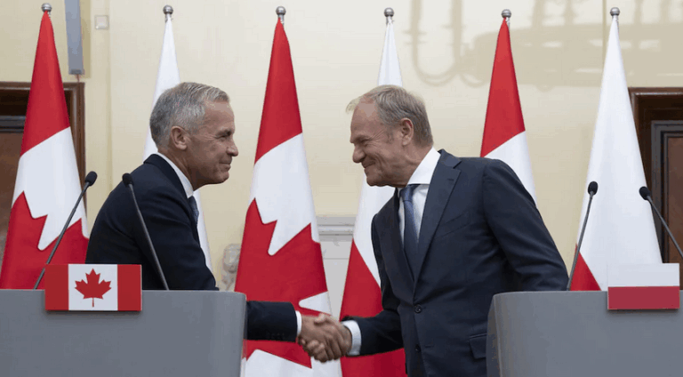 مصافحة اليوم بين رئيس الوزراء الكندي مارك كارني (إلى اليسار) ونظيره البولندي دونالد توسك في مؤتمر صحفي مشترك في وارسو. الصورة: La Presse canadienne / Christinne Muschi CANADAكندا عربي كارني يبرم شراكة استراتيجية جديدة مع بولندا by admin 26 August، 2025 written by admin 26 August، 2025 90 راديو كندا الدولي / RCI أبرم رئيس الوزراء الكندي مارك كارني شراكة استراتيجية جديدة مع بولندا ستسمح لكندا بتعميق علاقاتها في مجالات التجارة والدفاع والطاقة مع هذا البلد الأوروبي الذي يشهد نمواً متسارعاً. وكان كارني في وارسو اليوم حيث التقى نظيره البولندي دونالد توسك. واتفقت كندا وبولندا على تعزيز التعاون في مجالات مثل الدفاع والطيران والأمن السيبراني والطاقات النظيفة. وسيعقد البَلدان اجتماعات ثنائية سنوية وسيسعيان إلى تشجيع الشراكات الصناعية في هذه القطاعات. ووفقاً لرئيس الوزراء الكندي ستحفّز هذه الشراكة مع بولندا الطلب الأوروبي على الصادرات الكندية وستعزّز وجود كندا في قطاع الدفاع في أوروبا. مقر منظمة حلف شمال الأطلسي في بروكسل، وكندا عضو مؤسس في الحلف الذي أبصر النور عام 1949، أمّا بولندا فانضمّت إليه عام 1999 بعد نهاية الحرب الباردة وتفكك الاتحاد السوفياتي.الصورة: AFP / KENZO TRIBOUILLARD وفي مؤتمر صحفي مشترك مع رئيس الوزراء البولندي قال كارني إنّ من الضروري أن تتعاون كندا مع أوروبا إذا أرادت تحقيق هدفها المتمثل في مضاعفة استثماراتها في مجال الدفاع أربع مرات بحلول نهاية عقد الزمن الحالي. ’’لقد تعلمنا الكثير من رئيس الوزراء (البولندي) وحكومته، لا سيما أهميةَ القيام بدورنا الكامل في منظمة حلف شمال الأطلسي (’’ناتو‘‘ NATO)‘‘، أضاف كارني. ’’سوف نحتاج لبضع سنوات للوصول إلى مستوى التزام بولندا، لكن هذا ممكن وقد تعهدنا بذلك‘‘، قال كارني. يُذكر في هذا الصدد أنّ كارني تعهّد في حزيران (يونيو) الفائت بأن تلتزم حكومته بالوفاء بالهدف المعياري للـ’’ناتو‘‘ المتمثل في أن تنفق دُوَله ما لا يقل عن 2% من إجمالي ناتجها المحلي على الدفاع الوطني، مؤكداً أنّ كندا ستبلغ هذا الهدف بحلول نهاية السنة المالية الحالية في 31 آذار (مارس) 2026. كما أعلن مكتب كارني أنّ كندا ستترأس المعرض الدولي لصناعة الدفاع في عام 2026. وهذا الحدث، الذي يقام سنوياً في مدينة كيلسي البولندية، هو أحد أهم المعارض المهنية المخصصة للدفاع في أوروبا. رئيس الوزراء الكندي مارك كارني (إلى اليسار) يسير مع الرئيس الأوكراني فولوديمير زيلينسكي وزوجته أولينا زيلينسكا خلال مراسم الاحتفال بعيد استقلال أوكرانيا يوم أمس في كييف.الصورة: La Presse canadienne / Sean Kilpatrick وجاءت زيارة كارني إلى بولندا اليوم غداة زيارة مفاجئة إلى كييف للمشاركة في الاحتفال بعيد استقلال أوكرانيا. وفي كلمة ألقاها أمس إلى جانب الرئيس الأوكراني فولوديمير زيلينسكي، حثّ كارني الشركاء الدوليين على تعزيز دعمهم لأوكرانيا في هذه المرحلة الحرجة من حربها مع روسيا. وقال رئيس الوزراء البولندي إنه شعر بتصميم نظيره الكندي عندما رآه يتحدث أمس مع الرئيس الأوكراني. ’’أُدرك عزم كندا وبولندا وشركائنا الأوروبيين على مواصلة مساعدة أوكرانيا أثناء الحرب وبعدها، وسنتعاون بشكل وثيق مع كندا في هذا المجال‘‘، قال توسك. ويوم أمس لم يستثنِ كارني إمكانية إرسال قوات كندية إلى أوكرانيا كجزء من ضمانة أمنية في مواجهة تهديدات روسية محتمَلة إذا ما تمّ التوصل إلى اتفاق سلام. واليوم أوضح وزير الدفاع الوطني ديفيد ماكغينتي أنّ شكل الدور الذي ستلعبه كندا في الحفاظ على سلام مُحتمَل في أوكرانيا لا يزال قيد المناقشة. من جانبه، استبعد توسك إمكانية دخول جنود بولنديين إلى أوكرانيا بعد انتهاء الحرب هناك، لكنه قال إنه يعتزم تنظيم اللوجستيات على حدود بلاده مع أوكرانيا لمساعدة هذا البلد الذي مزقته الحرب وحماية الحدود بين أوروبا وروسيا. (نقلاً عن وكالة الصحافة الكندية، ترجمة وإعداد فادي الهاروني) روابط ذات صلة: كارني لا يستبعد إرسال جنود كنديين إلى أوكرانيا إذا ما حل