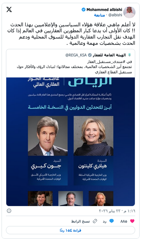 دعا "مستقبل العقار" شخصيات عالمية باستمرار لكن الوزيرين أثارا الشكوك (اكس) عرب وعالم لعنة “الربيع العربي” تطارد هيلاري وكيري في السعودية by admin 28 January، 2026 written by admin 28 January، 2026 76 حضور الثنائي الديمقراطي مناسبة عقارية في الرياض يقلب جحيم الذاكرة ضد رجال حقبة “أوباما” سيئة السمعة في الخليج اندبندنت عربية / مصطفى الأنصاري كاتب وصحافي @mustfaalansari يروي أحد السياسيين الأقطاب في السعودية أن زعيماً في البلاد أوصى رجاله بتجنب الغضب ما أمكن. أما إن استوفيت كل فرص الحلم وقررت أن تغضب، “إياك ثم إياك أن ترضى”. إن كانت تلك حكمة أو استراتيجية مقصودة بين السياسيين في السعودية العريقة، فإن عدداً من المهتمين يمارسونها تلقائياً من دون تخطيط في الأرجح مع الشخصيات والدول ذات السوابق السيئة مع الرياض. فعلى رغم مرور أعوام على مرحلة ما يسمى “الربيع العربي“، فإن حضور وزيري الخارجية الأميركيين السابقين هيلاري كلينتون وجون كيري لمنتدى “مستقبل العقار” كان كافياً لفتح الحسابات القديمة مع الشخصيتين ورئيس مرحلتهما باراك أوباما، حتى وإن كان الحضور في سياق آخر لا علاقة له بالسياسة والثورات وحقوق الإنسان والمناخ. وقال رئيس تحرير “الاقتصادية” محمد البيشي المتخصص في هذا السياق إنه لا يفهم “ما هي علاقة هؤلاء السياسيين والإعلاميين بهذا الحدث”، وذلك تعليقاً منه في “إكس” على منشور للجهة المنظمة يؤكد حضور هيلاري وكيري وتاكر كارلسون وآخرين، مؤكداً أن “الأولى أن يدعى كبار المطورين العقاريين في العالم إذا كان الهدف نقل التجارب العقارية الدولية للسوق المحلية ودعم الحدث بشخصيات مهمة وعالمية”. سوء سمعة وانتهاء صلاحية! إلا أن هذا الاستشكال الذي بدا في ظاهره مهنياً صرفاً، فسره محلل اقتصادي آخر تحدث إلى “اندبندنت عربية” بشرط عدم ذكر اسمه تجنباً لإحراج إدارة المنتدى، أنه يخفي من ورائه سخطاً سياسياً لا يزال دفيناً ضد عدد من السياسيين الغربيين، جعل استضافة أمثال كيري وهيلاري “تثير تساؤلات مشروعة”. وأضاف أن “سجل هذه الأسماء، ومعها شخصيات غربية أخرى مشابهة، يتضمن مواقف سلبية تجاه السعودية في مراحل سابقة”. أما السبب الثاني، الأكثر وضوحاً في نظره، فيتعلق بكون هذه الشخصيات لم تعد فاعلة سياسياً، أو كما وصفها المصدر نفسه بأنها “expired”، إضافة إلى أنها “ما لهم أي علاقة حقيقية مع قطاع العقار في السعودية أو حتى في العالم”. وهكذا يرى المنتقدون أن حضورهم لا يضيف قيمة مهنية أو استراتيجية للمنتدى، مقارنة باستضافة خبراء أو مستثمرين لديهم تجربة مباشرة وتأثير فعلي في صناعة العقار. لكن المنتدى الذي تنظم نسخته الخامسة ابتداءً من أمس الإثنين في الرياض، اعتاد استقطاب شخصيات ذات ثقل سياسي مثل بيل كلنتون العام الماضي، إلا أن ذلك لم يثر جدلاً، بالنظر إلى تاريخه الإيجابي مع الخليج عندما كان رئيساً لبلاده في نهاية الألفية الماضية. لا أعلم ماهي علاقة هؤلاء السياسين والإعلاميين بهذا الحدث !! كان الأولى أن يدعا كبار المطورين العقاريين في العالم إذا كان الهدف نقل التجارب العقارية الدولية للسوق المحلية ودعم الحدث بشخصيات مهمة وعالمية . https://t.co/CSvAkB09mb وكان المنتدى أعلن في وقت باكر توجيه الدعوة إلى الرئيس جورج بوش أيضاً، إلا أن مصدراً في المناسبة الدولية أبلغ “اندبندنت عربية” أمس الأحد بأن “بوش وجهت إليه الدعوة بالفعل وتلقينا استجابة مبدئية لكنه لم يؤكدها بإنهاء إجراءات سفره كالمعتاد”. وهو ما أكده مصدر أميركي أخبرنا بأنه لم يبلغ بأي حضور رسمي من الجانب الأميركي. ولم يرغب المنتدى الخوض في الإجابة عن ردود الفعل الناجمة عن دعوته هيلاري وكيري. حراك يتوسع صداه رجل الأعمال السعودي ناصر العودة ينظر إلى الحدث من زاوية أخرى. فهو يرى “الاستضافة إحدى الأدوات الناعمة للسعودية، وتحمل أبعاداً دوليه وليست سياسية واقتصادية وحسب، فالعالم اليوم يتفنن في طرق الجذب الاقتصادي من خلال دعوة مؤثرين على مستوى عالمي لخلق حراك يصل مداه 