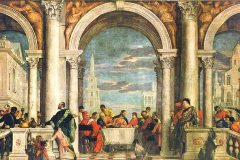 لوحة _العشاء في بيت ليفي_ لفيرونيزي (موسوعة الفن الكلاسيكي) ثقافة و فنون لوحات ابن البندقية فيرونيزي… جماليات الضخامة المفرطة by admin 24 مايو، 2025 written by admin 24 مايو، 2025 181 من فلسطين وتاريخها الديني العريق إلى الحكايات المقدسة مروراً بروعة العمران النهضوي اندبندنت عربية / إبراهيم العريس باحث وكاتب على بعد أمتار قليلة من المكان الذي علقت فيه تلك اللوحة التي يمكن اعتبارها أشهر لوحة في العالم، “الموناليزا” لليوناردو دا فنشي، في واحدة من أكثر صالات متحف “اللوفر” الباريسي شهرة، هناك لوحة كان من شأنها أن تكون، بدورها، واحدة من أشهر اللوحات في تاريخ الفن، بل كذلك واحدة من أضخم لوحات ذلك التاريخ، لولا أن موضوعاً دينياً هو الذي يطغى عليها، ولولا أنه حدث لها أن غابت عن الأنظار طوال ما يزيد على 10 أعوام حين كانت ترمم. وأيضاً، لولا أن الفنان الذي ابتدعها ليست له لا شهرة دا فنشي ولا مكانته في تاريخ الفن النهضوي. ومن هنا، فإنهم قلة أولئك الزائرون الذين قد يصلون إلى “اللوفر”، وفي بالهم أن يشاهدوا تلك اللوحة، لكنهم حين يشاهدونها، وغالباً لمجرد أنها تجاور “الموناليزا“، يذهلون إعجاباً ويتحولون، بين ليلة وضحاها، إلى بعض من غلاة المعجبين بها. واللوحة التي نتحدث عنها هنا هي، بالطبع، “عرس قانا الجليل” لرسام البندقية الكبير فيرونيزي، التي لا تقل مساحتها عن 67 متراً مربعاً، مما يجعلها واحدة من أضخم اللوحات إذا استثنينا الجداريات الضخمة المرسومة مباشرة على الجدران. ولعلنا لسنا، هنا، قادرين على أن نضيف كثيراً إلى ما سبق أن أشرنا إليه وفي هذه الزاوية بالذات، بصدد هذه اللوحة نفسها. غير أننا يمكن أن ننطلق منها، في حديث عن مبدعها يتناول سمة أساسية من تلك السمات التي تميز مبدعي الفنون النهضوية الإيطالية، وهي سمة تلوح أساسية في هذه اللوحة بالذات، وربما تكون هي ما يتبقى منها في بال مشاهدها حتى بعدما ينسى كثيراً من عناصرها الأخرى، وربما، بصورة خاصة، العنصر الديني. فيرونيزي (1528 – 1588) كما صور نفسه في لوحة له (متحف الأرميتاج) محلية المكان فحتى ولو أن موضوع “عرس قانا الجليل” موضوع ديني يعزز من صفته هذه كون اللوحة نفسها قد رسمت لحساب أحد أديرة منطقة البندقية عند منتصف القرن الـ16 تقريباً، وتحديداً بين عام 1562 والعام التالي له، من حول الموضوع الشهير المتعلق بذلك العرس الذي حضره السيد المسيح في شمال فلسطين، فإن العنصر الأساس هنا هو المكان، بل تحديداً هندسة المكان الذي صور فيرونيزي ذلك الحدث فيه. فنحن لسنا هنا، بأية حال من الأحوال لا في فلسطين الأعوام الأولى لولادة المسيحية، ولا في أية قرية فلسطينية على الإطلاق، بل نحن في إزاء هذه اللوحة في البندقية نفسها، بل حتى في البندقية المتخيلة متولدة عن خيال الرسام الذي كان هو نفسه، وكما حال العدد الأكبر والأساس من الفنانين النهضويين، مهندساً عمرانياً إلى جانب كونه رساماً، وفناناً دنيوياً إلى جانب كونه مطبوعاً بالحكايات الدينية وأساطير الأقدمين وحكايات التاريخ. يفيدنا جورجيو فازاري، الفنان ولكن أيضاً، الكاتب النهضوي الإيطالي، والذي كان، بدوره رساماً وعمرانياً إلى جانب كونه كاتباً مؤرخاً، كيف أن فيرونيزي (واسمه الحقيقي باولو كالياري، وهو من مواليد عام 1528 في مدينة فيرونا كما يدل اللقب الذي طغى على اسمه، فيرونيزي)، كان منذ بدايات انطلاقته الفنية في محترف معلمه دي كارباتشيو، مهتماً بهندسة المكان بقدر اهتمامه بسرد تلك الحكايات التي كانت العائلات البندقية الكبرى، ومسؤولو الأديرة والقصور يوصونه عليها، وذلك بالتحديد لأنه كان قد قرر منذ البداية أنه سيحترف الهندسة المعمارية، ولكن، أيضاً، لأن كارباتشيو نفسه كان لا يرى أن الفوارق كبيرة بين الرسم والعمران وأنهما معاً، إضافة إلى النحت طبعاً، تشكل نوعاً من إعادة الهندسة للمكان. ومن هنا، من الواضح أن فيرونيزي أسوة بالآخرين من رفاقه، كان يرى أن في إمكانه حين ينقل حكاياته من الكتب المقدسة أو من التاريخ غير الم