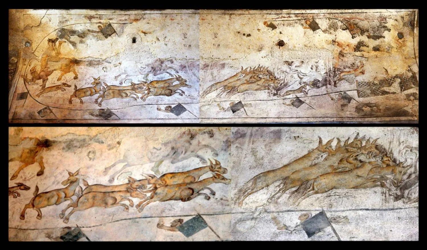 صيد الحمير الوحشية في جدارية من قصير عمرة الأموي في بادية الأردن ثقافة و فنون محمود الزيباوي يكتب عن: صيد الحمير البرية في جدارية أموية by admin 5 مارس، 2026 written by admin 5 مارس، 2026 17 تشكيل متقن بأسلوب متين يتبع التقليد الروماني الكلاسيكي الشرق الاوسط / محمود الزيباوي دأب شيوخ قبائل العرب على صيد الطيور والحيوانات البرية، وجعلوا من هذه المزاولة تقليداً راسخاً، ورثه الحكام الأمويون وطوّروه، فغدا وسيلة من وسائل اللهو، ارتبطت ارتباطاً وثيقاً بالغنى والترف، كما يشهد الميراث الأدبي الخاص بتلك الحقبة. تردّد صدى هذا التقليد في الفن الأموي، وتجلّى في مجموعة من الأعمال التصويرية المتعدّدة الأنواع، منها لوحات من الحجم الكبير تشكّل جزءاً من الجداريات التي تزيّن قاعات قصير عمرة في صحراء الأردن. تمثّل إحدى هذه اللوحات صيد الحمير البرية وسط حلبة مسيّجة، في مشهد شامل وجامع يتميّز بتفاصيله الإنشائية الدقيقة. يحوي قصير عمرة قاعة كبيرة مكوَّنة من ثلاثة إيوانات حافظت على الجزء الأكبر من جدارياتها، ويحضر مشهد صيد الحمير الوحشية في الإيوان الغربي في لوحة أفقية مستطيلة، تحتلّ الجزء الأعلى من الجدار الغربي، وتستقرّ فوق تأليف ثلاثي يجمع بين ثلاثة مشاهد مستقلّة تمتدّ على الجزء الأوسط من هذا الجدار. مُحِي النصف الأعلى من مشهد الصيد بشكل كبير بحيث تعذَّر تحديد معالمه عند اكتشاف القصير في مطلع القرن الماضي، غير أن بعضاً من هذه المعالم انكشف وظهر بفضل أعمال الترميم التي أجرتها بعثة إيطالية من «المعهد العالي للحفظ والترميم» في الموقع خلال عام 2010. في المقابل، حافظ النصف الأسفل من هذه اللوحة على مختلف عناصره، واستعادت هذه العناصر لمعانها الأوّل بفضل هذا الترميم الدقيق. يدور هذا الصيد داخل حلبة تحدّها شرقاً شبكة عريضة ترتفع على شكل سياج مقوّس. داخل هذه الحلبة، تحل مجموعة من البهائم تركض معاً في اتجاه الشبكة. تتكوّن هذه المجموعة كما يبدو من 17 بهيمة متراصة، تحضر كلها في وضعية جانبية، وتظهر وهي تجري في حركة واحدة، رافعة رؤوسها إلى الأمام. وحدها البهيمة التي تحضر في الطرف الأخير تدير رأسها إلى الخلف في اتجاه كلب سلوقي يلاحقها ويدنو منها. تبدو هذه البهائم من فصيلة الخيليات، وهيكلها ما بين الحمار والحصان، ممّا يوحي بأنّها من الحمير البريَّة التي تُعرف في الميراث الأدبي بحُمر وحش، كما تُعرف بحمير وحش. يأتي ذكر هذه الحمير في الأدبيات الخاصة بالصيد، وأقدم ما وصلنا منها رسالة الصيد المنسوبة إلى عبد الحميد بن يحيى، كاتب مروان بن محمد، آخر خلفاء بني أمية، وفيها يذكر كلاب السلوقي السريعة في مطاردة الغزلان، ويتحدّث عن غابة «من ورائها حمير وحش كثيرة». تنقل جدارية قصير عمرة صورة حيَّة لهذه الحمير، وفيها تبدو «صُفْر المناخرِ والأَشْداق»، كما وصفها الشاعر ابن ميادة في زمن الدولة الأموية، ويظهر من خلفها ثلاثة من رجال الصيد يمتطون خيلهم. مُحِيَت صور هؤلاء الفرسان، وما بقي منها يُظهر تقدّم اثنين منهم في حركة موازية، وتهاوي الثالث وسقوطه عن حصانه في حركة معاكسة. في القسم الأسفل من التأليف، ترتفع سلسلة من الرايات المرفوعة فوق قضبان مغروسة في الأرض، تقابلها سلسلة مشابهة في القسم الأعلى من الصورة. تُشكّل هاتان السلسلتان حلقة تطلّ من خلف عدد من راياتها قامات تُمثّل على الأرجح مراقبي جولة الصيد. يظهر كلّ فرد من هؤلاء المراقبين أمام راية من هذه الرايات، رافعاً ذراعه أفقياً في حركة واحدة ثابتة. في المقابل، تظهر خيمة سوداء في طرف التأليف شرقاً، حيث ترتفع تحت الشبكة المقوّسة. تكشف هذه الخيمة عن ثلاثة وجوه تُمثّل كذلك مراقبين يتابعون جولة الصيد. وتقابل هذه الخيمة في الطرف المعاكس خيمة أخرى مشابهة تخلو من الشهود. رصد بازيار العزيز الفاطمي أحوال الصيد وطقوسه في كتاب يُعرف باسم «البيرزة»، وفيه أشار إلى تعدد هذه الأحوال بحسب الأوضاع الطبقية الخاصة بالصيادين، وقال: «ويغدو للصيد اثنان متفاوتان، صعلوك منسحق الأطمار،