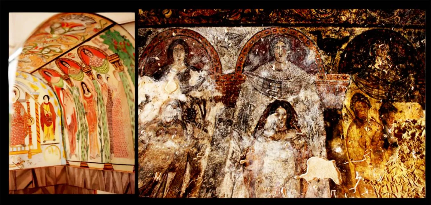 تفصيل من جدارية تزي_ن ركن العرش في قصير عمرة مع رسم توثيقي حديث لهذه الجدارية ثقافة و فنون محمود الزيباوي يكتب عن: عرش الأرض الطيبة في قصير عمرة by admin 24 February، 2026 written by admin 24 February، 2026 65 يتزيَّن بفضائل التاريخ والحكمة والشعر الشرق الاوسط / محمود الزيباوي يحتل قصير عمرة موقعاً خاصاً في خريطة القصور الأموية التي تمّ الكشف عنها في صحاري بلاد الشام، ويتميّز في المقام الأوّل بجدارياته التي تشكّل منجماً فنياً يزخر بالصور متعدّدة المعاني، كما تشهد الأبحاث التي دأبت على دراستها وتحليلها، منذ اكتشاف هذا الموقع في مطلع القرن الماضي. يتوزّع قسم كبير من هذه الجداريات على قاعة كبرى تتألّف من ثلاثة إيوانات، يتوسّطها ركن يُعرف بـ«ركن العرش»، وفيه يحضر أمير القصر على عرشه تحت قبّة على شكل قنطرة، تزيّنها حلّة تصويرية مبتكرة تجمع بين سلسلة من القامات الأنثوية. تتبنّى هذه الحلّة طرازاً شاع في العالم المتوسّطي خلال القرون الميلادية الأولى، وتمثّل على الأرجح الأرض المثمرة بخيراتها الوفيرة التي ورثتها الخلافة الأموية، وأضحت أمينة عليها. يحتلّ وسط سقف هذه القنطرة شريط تزييني عريض متقن أُنجز بحرفيّة عالية، ويتبنّى تأليفاً نباتياً تقليدياً، قوامه أربع زهريّات يونانية متراصة عمودياً، تحيط بها أربع شتول من فصيلة الأقنثا. تمتدّ هذه الشتول بأوراقها المسنّنة في فضاء التأليف، وتتوزّع بشكل تعادلي متناسق، لتؤلف لوحة نباتية يغلب عليها الطابع التجريدي الهندسي. لا يخلو هذا التأليف من العناصر التصويرية، الآدمية والحيوانية، إذ نجد في القسم الأسفل من هذا الشريط قامتين متواجهتين في وضعية نصف جانبية، ترفع كل منهما ذراعيها في اتجاه الأخرى، ونجد في القسم الأعلى طائرين متواجهين في وضعية جانبية، يرفع كلّ منهما رأسه في اتجاه الآخر. تحيط بهذا الشريط النباتي ستّ قامات نسائية نصفية، توزّعت على جانبي جداري القنطرة المقوّسين في بناء تعادلي محكم. تتشابه هذه القامات الأنثوية بشكل كبير، وتُقارب في تشابهها التماثل، مع اختلافات بسيطة تحضر في تفاصيل ثانوية. ترتفع الرؤوس بشكل ثابت، محدّقة في اتجاه المشاهد، وتكشف عن وجوه ذات ملامح واحدة، تكلّلها خصل من الشعر تلتفّ من حولها، وتنسدل من خلف الكتفين. اللباس واحد، وقوامه جبّة، تتغير ألوانها ونقوشها بين قامة وأخرى. الحركة واحدة، وتتمثّل بحضور وشاح على شكل رزمة عريضة تنفتح أفقياً عند حدود الصدر. يستقرّ كلّ من هذه الرؤوس وسط قوس زيّن بسلسلة من النقوش المتراصة، وسط مساحة أفقية تزيّنها طيور من فصيلة الدراج، تصطفّ أفقياً في وضعيّة جانبية. تحضر ثلاثة طيور على الحائط الغربي، وتحضر إلى جانبها زهرية يونانية في طرف الصورة. ويتكرّر هذا التأليف بشكلّ مماثل على الحائط الشمالي. ترتفع هذه الأقواس الستة فوق عواميد رخامية طويلة تكلّلها تيجان، وفقاً لطراز كلاسيكي يُعرف بـ«قوس المجد». وتنتصب وسط هذه العواميد سلسلة من القامات في وضعية المواجهة. ترتفع أربعة عواميد على الحائط الغربي، وتجاورها شجرة مورقة ترتفع إلى جانبها في طرف الصورة. تظهر تحت القوس الأوّل ثلاث قامات مُحِيَ الجزء الأكبر من تفاصيلها، ويتَضح عند التأمّل فيما بقي منها أنها تمثل قامة «ملكية» ترافقها قامتان من رجال الحرس، كما يوحي اللباس والرماح التي تظهر من خلف الظهر. تظهر تحت القوس الثاني امرأة تنتصب وسط شجيرات خضراء، حاملة بيديها شتولاً مزهرة. وتظهر تحت القوس الثالث، امرأة تنتصب كذلك في وضعية مشابهة. يتكرّر هذا التأليف على الحائط الشمالي، مع اختلاف في التفاصيل. يرافق الحرس القامة الملكية تحت القوس الأول. وتقف امرأة وسط شجيرات مثمرة تحت القوس الثاني. وتقف رفيقتها تحت القوس الأخير، رافعة بيدها اليسرى نحو الأعلى قرناً ضخماً. يستعير هذا التأليف مفرداته من القاموس التشكيلي الكلاسيكي المتوارث. فالمرأة التي ترفع رزمة، هي في الأصل «غايا»، الأرض الأم التي ولد منها الكون وتشكّل، بحسب سفر التكوين اليوناني. وهي في ا