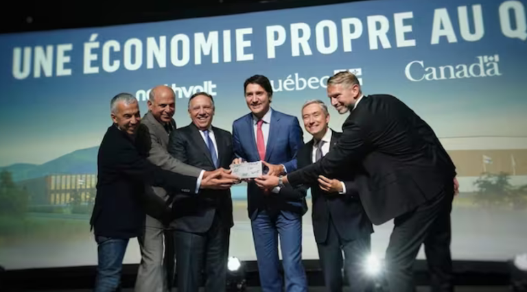 رئيس الحكومة الكندية جوستان ترودو (الثالث من اليمين) ورئيس الحكومة الكيبيكية فراسنوا لوغو (عن يمينه) يشاركان في حمل بطارية اليوم في مونتريال خلال حفل الإعلان عن بناء مصنع ’’نورثفولت‘‘ لبطاريات السيارات الكهربائية. الصورة: Radio-Canada / Ivanoh Demers CANADAكندا عربي مصنع ضخم لبطاريات السيارات الكهربائية في كيبيك by admin 29 September، 2023 written by admin 29 September، 2023 368 راديو كندا الدولي\RCI قال عملاق صناعة بطاريات السيارات السويدي ’’نورثفولت‘‘ (Northvolt) إنه سيقوم ببناء مصنع جديد لبطاريات السيارات الكهربائية بمليارات الدولارات في كيبيك، وهو مشروع وُصف بأنه أكبر استثمار خاص في تاريخ المقاطعة. وتمّ الإعلان عن ذلك في مونتريال صباح اليوم بحضور رئيس الحكومة الفدرالية جوستان ترودو ورئيس حكومة كيبيك فرانسوا لوغو ووزير الابتكار والعلوم والصناعة الفدرالي فرانسوا فيليب شامبان ووزير الاقتصاد والابتكار والطاقة الكيبيكي بيار فيتزغيبون ومسؤولين كبار في ’’نورثفولت‘‘، من بينهم رئيسها التنفيذي بيتر كارلسون. وسيمتد المصنع الضخم، الأول لـ’’نورثفولت‘‘ خارج أوروبا، على مساحة 170 هكتاراً في منطقة قريبة من مدينتيْ سان بازيل لوغران وماكماسترفيل، على بعد حوالي 30 كيلومتراً شرق مونتريال. والمرحلة الأولى من المشروع بتكلفة 7 مليارات دولار، وتمنح المصنع قدرة تصنيع خلايا بطاريات تصل سعتها إلى 30 جيغاواط ساعة سنوياً، وتوجِِد ما يصل إلى 3000 وظيفة في المنطقة عندما يبلغ المصنع طاقته الإنتاجية الكاملة. سيارة كهربائية قيد الشحن.الصورة: Radio-Canada / Carl Boivin ’’هذا إعلان تاريخي وتحويلي‘‘، قال ترودو أمام الحضور، مضيفاً أنّ الاستثمارات في هذا المصنع ستجلب ’’تصنيع بطاريات متكامل‘‘ إلى كندا. ’’ستكون هذه المنشأة قادرة على إنتاج بطاريات لمليون سيارة كهربائية سنوياً، وبطاقته الإنتاجية الكاملة سيساهم المصنع بما يصل إلى 1,6 مليار دولار (سنوياً) في اقتصادنا‘‘، أضاف رئيس الحكومة الليبرالية. من جهته أشاد لوغو بالإعلان عن بناء المصنع الذي يشكل ’’أكبر استثمار خاص في تاريخ كيبيك الحديث‘‘. وأضاف رئيس حكومة حزب التحالف لمستقبل كيبيك أنّ المقاطعة تحقق رؤيتها بأن تصبح رائدة على مستوى العالم في الاقتصاد الأخضر. مصنع بطاريات لـ’’نورثفولت‘‘ في بولندا (أرشيف).الصورة: Northvolt واختارت شركة ’’نورثفولت‘‘ موقع مصنعها الجديد من بين 70 موقعاً مختلفاً في أميركا الشمالية. وسيتضمن الموقع أيضاً مرافق لإنتاج المواد النشطة للكاثود ولإعادة تدوير البطاريات. وتخصص الحكومة الفدرالية لبناء المصنع ما يصل إلى 1,34 مليار دولار كحد أقصى، فيما تقدّم له حكومة كيبيك 1,37 مليار دولار. ومن المتوقع بناء المصنع بحلول نهاية عام 2026. والتزمت الحكومة الفدرالية وحكومة كيبيك بتزويد ’’نورثفولت‘‘ بدعمٍ إنتاجي مطابق لائتمان الإنتاج الصناعي المتقدم بموجب قانون الحد من التضخم في الولايات المتحدة، والذي يعادل ما يصل إلى 35 دولاراً أميركياً لكل كيلوواط ساعة. وستكون الشركة مؤهلة أيضاً للحصول على حوافز إنتاج حكومية تصل إلى 4,6 مليارات دولار على مدى السنوات الخمس إلى التسع المقبلة. وستدفع حكومة كيبيك ثلث هذا المبلغ، أي 1,5 مليار دولار تقريباً. ولم يتم تقديم جدول زمني للمرحلة الثانية من المشروع والتي من المتوقع أن تضاعف الطاقة الإنتاجية للمصنع. (نقلاً عن موقع ’’سي بي سي‘‘ مع إضافات من وكالة الصحافة الكندية، ترجمة وإعداد فادي الهاروني) روابط ذات صلة: أوتاوا تدعم ’’فولكسفاغن‘‘ بما يصل إلى 13 مليار دولار لمصنعها في أونتاريو ’’فولكسفاغن‘‘ تطلق مصنعاً لبطاريات السيارات الكهربائية في أونتاريو بحلول 2027 اتفاق بين كندا وكلّ من ’’فولكسفاغن‘‘ و’’مرسيدس بنز‘‘ حول السيارات الكهربائية كندا تريد جذب مصنّعي السيارات الكهربائية اليابانية إليها 0 comment 0 FacebookTwitterPinterestEmail admin previous post حملات تضليل ضدّ كندا في روسيا والهند next post حكومة ساسكاتشِوان تلجأ إلى بند الاستثناء لتطبيق سي