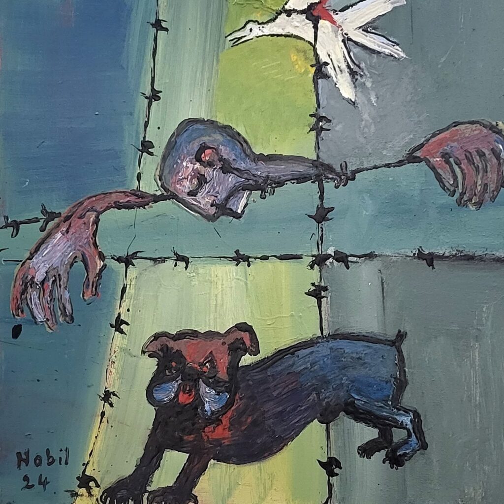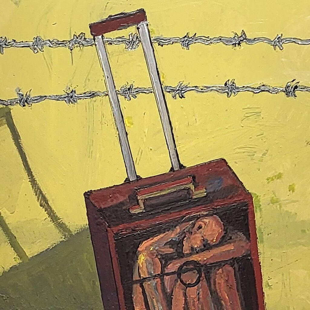 الرسام اللبناني الفلسطيني نبيل أبو حمد. ثقافة و فنون نبيل أبو حمد يرسم في لندن معاناة اللاجئين by admin 13 نوفمبر، 2025 written by admin 13 نوفمبر، 2025 56 يحمل المعرض هماً إنسانياً واضحاً، ويضم 16 لوحة منفّذة بأسلوب رمزي تعبيري. النهار اللبنانية / رؤوف قبيسي- لندن تشهد لندن حتى نهاية هذا الشهر معرضاً مميزاً وفريداً يعرض فيه الرسّام اللبناني الفلسطيني نبيل أبو حمد مجموعة من أعماله حول موضوع ساخن يشغل الساحة السياسية، ووسائل التواصل الاجتماعي في بريطانيا، يتمثل في تصوير قوافل اللاجئين وهم يلجأون إلى الحدود المُحصَّنة بالأسلاك الشائكة التي تدمي أقدامهم وظهورهم إن حاولوا القفز فوقها، ومكوثهم أياماً وأحياناً أسابيع في براري الأصقاع الأوروبية. من أعمال نبيل أبو حمد. يقام المعرض في “غاليري تيل” بجامعة “مورلي”، ويحمل هماً إنسانياً واضحاً. يضم 16 لوحة كبيرة مرسومة بالألوان الزيتية على قماش مغطى بالرمال والأتربة، في محاولة لتجسيد قساوة الهجرة بين الأقطار، منفذة بأسلوب رمزي تعبيري يعتمد منهج الفكرة (Conceptual) بصفته طريقة تخاطب العقل المعاصر. من بين الأعمال لوحة تصوّر لاجئاً في وضع مزرٍ يقيم داخل حقيبة متنقلة، وأخرى لأقدام أدمتها الأسلاك الشائكة، وثالثة لطير لم تسعفه الحواجز على الإفلات فوقع بين أشواكها، وأخرى لمجموعة من النازحين معلّقين على أشرطة كأنهم ذبائح في دكان جزار. كما يعرض الفنان نموذجاً للكرة الأرضية مكبلة بالحدود، في إشارة إلى أن قادة العالم منحوا أنفسهم سلطة فوقية لتقسيمها إلى كيانات وفق أهوائهم وقدراتهم التعسفية. من أعمال نبيل أبو حمد. ويتزامن المعرض، بالإضافة إلى ما يحمله من وجع إنساني، مع هجمة يمينية يقودها بعض أوساط الأثرياء في الطبقة الحاكمة في بريطانيا، الساعية إلى وراثة حزب المحافظين تحت عنوان “التغيير” (Reform)، الحزب الذي يقوده نايجل فراج، اليميني المتطرف وأحد أبرز الذين دعوا إلى خروج بريطانيا من الاتحاد الأوروبي، والذي يُحمّل الغرباء تبعة التدهور الاقتصادي وتراجع القيم وارتفاع معدلات الجريمة. من أعمال نبيل أبو حمد. يُذكر أن نبيل أبو حمد، المولود في يافا لأب لبناني وأم فلسطينية زمن الانتداب البريطاني على فلسطين، كان قد أقام ستة معارض شخصية مختلفة في بريطانيا، وافتتح قبل ثلاثين عاماً غاليري خاصة به باسم “أرجيل”، عرض فيها أعمالاً لفنانين لبنانيين مثل بول غيراغوسيان، وصليبا الدويهي، وعارف الريس، وموسى طيبا، والفنانة الفلسطينية جمانة الحسيني، إضافة إلى فنانين عرب وأجانب آخرين، كما شغل منصب المدير الفني في مجلتي “الدستور” و “الحوادث”، اللتين كانتا تصدران في لندن في سبعينات القرن الماضي. 0 comment 0 FacebookTwitterPinterestEmail admin previous post الشرع لـ”واشنطن بوست”: طردنا إيران وحزب الله من سوريا… ونخوض مفاوضات مباشرة مع إسرائيل next post الكندي المصري هاني مصطفى يحصل على جائزة العلوم في كيبيك You may also like “البحث عن الإمبراطور” رواية استشرفت سقوط الاتحاد السوفياتي 9 مارس، 2026 الحرب على سرير التحليل النفسي والثقافي 9 مارس، 2026 “ثلاثمئة حكاية” لفرانكو ساكيتي: وقائع إيطالية في زمن... 9 مارس، 2026 زيارة رمضانية إلى دوستويفسكي عن الجوع الاختياري 9 مارس، 2026 ندى حطيط تكتب عن: الذكاء الاصطناعي يكشف عن... 9 مارس، 2026 “ميشال ستروغوف” لجول فيرن… اكتشاف أدبي للعولمة 8 مارس، 2026 اللبناني نبيل نحاس يحمل “اللاحدود” إلى بينالي البندقية 7 مارس، 2026 “دراكولا” برام ستوكر: ديكتاتور بقناع مصاص دماء 7 مارس، 2026 الأمل معقلنا الأخير عندما يلف الجنون العالم 7 مارس، 2026 رحيل أنطوان غندور رائد الدراما اللبنانية ما قبل... 7 مارس، 2026