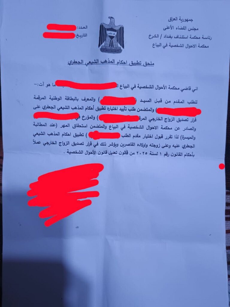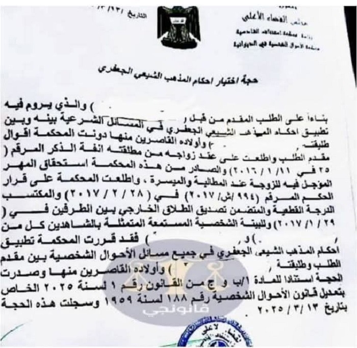 لعب ديوان الوقف الشيعي دوراً محورياً عبر "المجلس العلمي" الذي أوكل إليه التعديل الأخير (قانون 1 لعام 2025) مهمة صياغة "مدونة الأحكام الشرعية" وفق المذهب الجعفري (أ ف ب) عرب وعالم نساء العراق يواجهن تبديل عقود زواجهن أو طلاقهن من دون معرفتهن by admin 2 سبتمبر، 2025 written by admin 2 سبتمبر، 2025 80 تعديل قانون الأحوال الشخصية يسمح بتحويل عقود الزواج القديمة إلى “المدونة الجعفرية” من دون موافقة الزوجة مهدداً الحضانة والحقوق الأسرية اندبندنت عربية / آية منصور صحفية عراقية @aya_mansour_11_ لم يكد يمضي الشهر الأول من زواج ليلى (اسم مستعار) حتى خرجت من بيتها للمرة الأولى. تحول المنزل سريعاً إلى غرفة انضباط: طعام بإذن وتلفاز محظور وانقطاع عن التواصل. توالت الإهانات على مظهرها وحركاتها وروائح جسدها، وأرغمت، على حد قولها، على الاغتسال مرات متتابعة وتبديل العطور “لإزالة رائحة” يتهمها بها، مع اتهامات أخرى بمرض نفسي وألعاب ضغط ذهني. “كان يدفعني إلى الخلع لأخرج من زواج مملوء بالتعنيف بأقل الحقوق، طالبني بدفع بدل إيجار لأني سكنت معه. وحين حملت، أنكر النسب وطلب مني إسقاط الجنين، بل أخفى حبوب إسقاط في الطعام، قبل أن تلزمني طبيبة بالرقاد ومنع الحركة”، هكذا تقول ليلى التي عادت إلى بيت أهلها، وبدأت دورة منهكة، إذ يرجعها أياماً ثم يطردها أعواماً ويرفض تطليقها. كبر طفلها عند الجدين، فيما الأب يحضر متقطعاً “ليستفزه ويختفي”. منذ السنة الأولى حصلت على تأييد حضانة، وقال الأب للقاضي، “دعوها تأخذ الطفل، لكن امنعوها من السفر”. رفع دعاوى مشاهدة واصطحاب، غير أنه نادراً ما حضر الجلسات. في يونيو (حزيران) الماضي، وبينما كانت ليلى، بحسب أوراقها، لا تزال على ذمته لكن مهجورة، تقدم زوجها بطلب لتغيير العقد القانوني لزواجهما إلى الأحكام الجعفرية من دون تبليغها مسبقاً. كانت تراجع المحكمة أسبوعياً، ووجدت في إحدى مراجعاتها أن التحويل نفذ. لم تلحق سوى الطعن تمييزاً، وبعد أقل من شهرين صدرت “الحجة”، وتعني رفض طعنها. تلتها دعوى الطلاق، وحسم الطلاق من غير حضورها أو حضور وكيلها. قبل ذلك. كانت ليلى مطمئنة، لأنها ببساطة، تزوجت على قانون الأحوال الشخصية رقم (188) لعام 1959، وعلمت كغيرها من العراقيين بدخول تعديلات على ذلك القانون، وفق مدونة الأحكام الشرعية، ودخلت حيز التنفيذ في فبراير (شباط) 2025. لكن لم تتخيل يوماً أن التعديل سيمسها، ولم تتخيل للحظة واحدة أن زوجها قد يستطيع تحويله. بالصدفة اكتشفت أن ملفها تحول إلى مدونة الأحكام الشرعية للفقه الجعفري، أي إلى التعديل الديني الجديد من دون توقيعها أو حتى اتصال يستطلع رأيها، وعرفت بالأمر من طريق مراجعتها الدورية للمحكمة. كانت الورقة القضائية الجديدة غيرت عقدهما على مدونة 188 إلى القانون الجديد من طريق زوجها وحده، من دون إعلامها. وتقول ليلى بينما الدموع تهبط من عينها وتحاول مسحها سريعاً، “عند لحظة تحويله لهذا العقد قام بتطليقي، لأعوام لم يُرد تطليقي حتى لا يعطني نفقة، كان ينتظر تعديل القانون ليفعل كل ذلك وأنا لا أعلم. وبعد عام واحد سيتمكن من نيل حضانة طفلي الذي لم يمنحه الحب كأب يوماً، فقط سيسقط حضانتي نكاية بي، بعدما حملته وربيته أنا وعائلتي وحدنا كل هذه الأعوام. كنت أظن أن اختيار القانون قرار مشترك بيننا لحماية حق المرأة والطفل من هذا التلاعب، ثم اكتشفت أن كلمة واحدة تكفي لتغيير كل شيء. هذا شيء ظالم وكسر قلبي وسيكسر قلوب آلاف النساء”. موافقة على طلب الزوج بتخويله اعتماد القانون بأخذ شهادات لشهود وتدوين ذلك دون الاشارة إلى الزوجة عن موافقتها أو معرفتها أو وجودها حتى (اندبندنت عربية) مخالفة الدستور على مدار نحو سبعة أعوام من زواج متقطع، كانت ليلى تعاد إلى منزل زوجها أياماً قليلة ثم تطرد طويلاً، من دون مسكن زوجي ولا نفقة لها. وصلت نفقة الطفل لعامين ثم توقفت بسبب تهديدات بالاصطحاب. وتقول إن الأب يعنف الصغير ويمنع عنه أشياء أساسية، “حينما يقابله يجعله يبكي، ولا أستطيع أن أدافع عنه. يع