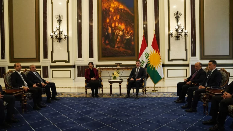 نيجيرفان بارزاني خلال لقاء مع «وفد إيمرالي» في أربيل الاثنين (أ.ف.ب) عرب وعالم نيجيرفان بارزاني يؤيد دعوة «أوجلان» للسلام ويعدها «فرصة تاريخية» by admin 18 فبراير، 2025 written by admin 18 فبراير، 2025 203 فيدان لمّح إلى تحالف لدحر «العمال الكردستاني» بالتزامن مع زيارة «وفد إيمرالي» لأربي الشرق الاوسط / أنقرة: سعيد عبد الرازق التقى وفد الحوار مع زعيم منظمة حزب «العمال الكردستاني» عبد الله أوجلان رئيس إقليم كردستان العراق نيجيرفان بارزاني بأربيل في إطار الاتصالات الدائرة حول عملية سلام جديدة في تركيا قد تفضي إلى حل الحزب. تزامن اللقاء مع إعلان وزير الخارجية التركي عن تنسيق مع العراق وسوريا وإيران لمكافحة نشاط حزب «العمال الكردستاني». واستقبل بارزاني الوفد المكون من نائبي حزب «الديمقراطية والمساواة للشعوب»، سري ثريا أوندر وبروين بولدان، بعد لقاء مع مسعود بارزاني. وتم توسيع الوفد ليشمل عدة نواب آخرين من الحزب وأعضاء من أحزاب كردية و محمد كاماتش محامي أوجلان. دعم من نيجيرفان بارزاني وجرى خلال اللقاء مناقشة مساعي عملية السلام في تركيا، التي يُتوقع أن تبدأ برسالة فيديو من أوجلان من سجنه في جزيرة إيمرالي جنوب بحر مرمرة، والجزيرة تابعة لولاية بورصة غرب تركيا، على بعد 51 كيلومتراً من إسطنبول. وأكد نيجيرفان بارزاني استعداده لدعم عملية السلام في تركيا، واصفاً إياها بفرصة تاريخية لتعزيز الأخوة بين الأكراد والأتراك. وأشار إلى أهمية السلام للجميع، مؤكداً أن الحلول السلمية أفضل من الحرب، وأعرب عن أمله في أن يتبنى حزب «العمال الكردستاني» رؤية استراتيجية للسلام. نيجيرفان بارزاني مصافحاً النائبة بروين بولدان وإلى جانبها النائب سري ثريا أوندر خلال استقباله الوفد في أربيل (أ.ف.ب) وكان بارزاني قد قال في ختام مشاركته في مؤتمر ميونيخ للأمن: زار «وفد إيمرالي» أربيل، وسيتوجه إلى السليمانية، وإنهم ينتظرون رسالة سلام من أوجلان. وأكد أمله في استجابة حزب «العمال الكردستاني» لهذه الرسالة، وذلك بعد لقائه وزير الخارجية التركي هاكان فيدان خلال المؤتمر. وذكرت مصادر حزب «الديمقراطية والمساواة للشعوب» أن الوفد نقل تحيات أوجلان إلى بارزاني، وأشاد بجهوده في دعم عملية السلام السابقة، معبراً عن أمله في استمراره بدعم العملية الحالية. الأكراد يتطلعون للحل قال كيسكين بايندر، الرئيس المشارك لحزب «المناطق الديمقراطية» المؤيد للأكراد في تركيا، إن الوفد نقل رسالة من أوجلان إلى بارزاني، الذي أبدى موقفاً إيجابياً تجاه نجاح العملية، مؤكداً أن «الشعب الكردي» يعلق آمالاً كبيرة على تحقيق السلام. وأضاف بايندر: «نسعى إلى إعلان بشرى سارة لشعبنا وشعوب الشرق الأوسط حول السلام والحل»، مشيراً إلى أهمية دور مسعود ونيجيرفان بارزاني في نقل القضية الكردية من الصراع إلى السلام. الرئيس المشارك لحزب «المناطق الديمقراطية» الكردي في تصريحات عقب لقاء وفد إيمرالي مع نيجيرفان بارزاني (أ.ف.ب) ووصف بايندر اللقاء مع نيجيرفان بارزاني بأنه إيجابي وبنّاء، مشيراً إلى استعداد بارزاني وحزبه لدعم العملية. ودعا قيادات حزب «العمال الكردستاني» إلى أخذ دعوة أوجلان بجدية واغتنام الفرصة التاريخية. والتقى الوفد مسعود بارزاني في أربيل الأحد، حيث نقل إليه رسالة من أوجلان ضمن جهود إحياء عملية السلام مع تركيا. ولعب مسعود بارزاني دوراً محورياً في عملية السلام الداخلي التركي (2013 – 2015)، حيث دعا أوجلان خلال احتفالات عيد النيروز في 21 مارس (آذار) 2014 «العمال الكردستاني» إلى إلقاء السلاح، ورغم استجابة الحزب، انهارت العملية بعد رفض إردوغان الاعتراف بها في 2015. وكان من المقرر أن يتوجه الوفد إلى السليمانية، الاثنين، للقاء رئيس حزب «الاتحاد الديمقراطي» الكردستاني، بافل طالباني، ونائب رئيس وزراء إقليم كردستان، قباد طالباني، إلا أنه بقي في أربيل، حتى عودة نيجيرفان بارزاني من مؤتمر ميونيخ للأمن، وسيجري مباحثاته في السليمانية، الثلاثاء. تحالف ضد «العمال