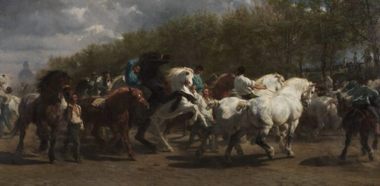 روزا: "معرض الأَحصنة" (1855) ثقافة و فنون هنري زغيب يكتب عن: المجهولة التي تفوقت ريشتُها على المعلومين (2 من 3) by admin 17 يوليو، 2024 written by admin 17 يوليو، 2024 314 تعويضًا عن غلطته في عدم اقتناء لوحة “معرض الأَحصنة” اتصل الدوق دو مروني بروزا وأوصاها على لوحة، فرسمت له لوحة “حصاد العشب اليابس في أُوفيرن”، ونالت هذه أَيضًا إِعجاب اللجنة التحكيمية في صالون باريس، فنالت عليها روزا المدالية الذهبية، وذهبَت اللوحة لاحقًا إِلى متحف اللوكسمبورغ. بيروت- النهار العربي / هنري زغيب في الجزء الأَول من هذه الثلاثية، سردتُ السيرة الشخصية لتلك الرسامة التي اقتحمَت تقاليد عصرها بريشتها المبدعة، ما جعل أَبناء جيلها يُشيحون عنها، وفناني عصرها يَسِمُونها بــ”التقليدية الباهتة”، مع أَن الجميع أَقرّوا ببراعة ريشتها في لوحاتها الواقعية النهج والفكرة والتعبير. تلك هي الرسامة الفرنسية روزا بونور Bonheur (1822-1899)، فماذا بعدُ عنها؟ الفنُّ حبها الوحيد لم تكن في لوحاتها لمساتُ حنان لدى رسمها حيوانات كأَنها ستفرُّ من القماشة البيضاء. وعن المؤَرخين أَنها كانت تزور بعض المسالخ كي تدرس التفاصيل في أَجسام الحيوانات، كما كانت للغاية ذاتها تزور حدائق الحيوانات كي تدرس تحركاتها عن قُرب. من هنا دقة لوحتها والتفاصيل فيها ما جعل فنَّها شعبيًّا في عصرها. في دفتر مذكراتها وُجدت عبارة: “فني هو حبي الوحيد. والفن طاغية، يتطلَّب الوقت والقلب والعقل والروح والجسد، وليس سواه من يأْخذ قلبي. أَنا تزوجتُ الفن. هو زوجي وعالَمي وحلم حياتي والهواء الذي أَتنفس. لا أَشعر بشيْءٍ سواه ولا بأَحد سواه ولا أعرف سواه ولا أُفكر بأَمرٍ سواه”. كتاب كاترين هِيْوِيْتْ عن روزا كتابٌ مفصل عنها هذه العبارة أَعلاه، تناولتها الناقدة ومؤرخة الفن الكاتبة الإنكليزية كاترين هِيْوِيْتْ وجعلتها عنوان السيرة التي وضعتها: “الفن طاغية – سيرة روزا بونور غير الاتِّباعية” (منشورات “آيْكُن” – لندن – 2020). وبين ما أَكدت عليه أَيضًا هِيْوِيْتْ في سيرة روزا: “قرارُها انتعال أَحذية رجالية ضخمة سميكة، وارتداء ملابس ذُكُورية واعتبارها الملابس النسائية مزعجة”. تلك الظاهرة في حينها كانت علامة فارقة في بيئتها، وسلوكًا رائدًا سابقًا مجتمعَها، إِذ كانت المرأَة عصرئذٍ تحتاج إِذْنَ سماحٍ خاصًّا لارتداء أَزياء غير النسائية التقليدية. وأَكثر: كسرت روزا تقليد عدم التدخين لدى النساء، فكانت تلفُّ بـأَصابعها التبغ وتدخِّن في المحافل والاحتفالات والاجتماعات العامة. كما كانت تتعمَّد أَن تظهر دومًا بالشَعر القصير كشَعر الرجال. وفي أَحاديثها كانت تُبدي اعتزازها بشخصيتها وسلوكها وعملها، وتفرض أَن يُنظَر إِليها تمامًا كالنظرة إِلى الفنانين الرجال من دون أَيِّ تمييز جندريّ. وما إِلَّا سنواتٍ طويلةً بعدها حتى شهدنا هذه الظاهرة الثائرة المتمردة مع لعبة الرسامة المكسيكية فريدا كالو (1907-1954)، فروزا كانت تقتَني لعبةً من خزَف تشبهها، ذاتَ لباس ذكوري وشَعر قصير. ومن مظاهرها غير الاتباعية أَنها عاشت زمالة طويلة (نحو 40 سنة) مع رفيقة طفولتها الرسامة الفرنسية ناتالي ميكاس (1824-1889) حتى إِذا توفيَت ميكاس زاملت روزا الرسامةَ الأَميركية آنَّا كْلُوْمْكِه (1856-1942). وهذه الأَخيرة كتبت عنها سيرةً موسعة (“روزا بونور:حياتها وأَعمالها”-منشورات فلاماريون-باريس 1908) )، ولدى وفاة روزا (1899) أَنشأَت آنَّا لتخليد ذكراها “معهد روزا بونور للفنون” (1900). وهنا لمحة عن أَبرز أعمالها: “الأَرنبان” (1840) هي أَول لوحة قدّمتْها روزا لـ”معرض باريس”، وكانت لا تزال في الثامنة عشرة، وقبلَت اللجنة تلك اللوحة لـــ”معرض باريس 1841″. ومنذئذٍ بدأَت شهرتها تتَّسع كـ”رسامة حيوانات” فريدة في عصرها. هذه اللوحة أَيضًا دخلَت “معرض باريس (1849)، ونالت المدالية الثالثة. وكانت شهرةُ لوحات روزا أَخذَت تتسع في فرنسا، لذا كانت الحكومة الفرنسية هي التي أَوصتها على تلك اللوحة التي هي حاليًّا في متحف اللوكسمبورغ. ثم تتا