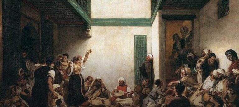 "عرس في المغرب" (1839) ثقافة و فنون هنري زغيب يكتب عن: رومنسيَّة دولاكْرْوَى بين الشاعرية والإِباحية والشغَف (3 من 3) by admin 27 أغسطس، 2024 written by admin 27 أغسطس، 2024 158 المواضيع الاستشراقية، كما في مشاهد أَفريقيا الشمالية، كانت جاذبةً أَيضًا رسامي القرن التاسع عشر، لما فيها من ملامح إِباحية وكان منافس دولاكْرْوَى الرسام الفرنسي جان أُوغست دومينيك إِنْغْر (1780-1867) اشتهر برسم الجواري في الحرَم، بيروت- النهار العربي / هنري زغيب عن تاريخ الفن التشكيلي في القرن التاسع عشر أَنَّ الرسام الفرنسي أُوجين دولاكْرْوَى (1798-1863) هو الممثل الأَول للرومنسية في عصره. وهو حافظ على هذه النزعة طيلة حياته وعلى امتداد أَعماله جميعها. وبلغ من الشهرة، منذ هو في الأَربعين، أَن تتالت عليه طلبات الدولةُ رسميًّا بـوضع لوحاتٍ لوجوه ومناظر في الأَماكن العامة ومؤَسسات الدولة، منها على القماشة البيضاء، ومنها على الجدران والسقوف. وإِلى اللوحات، ترك محفورات وليتوغرافيات ومقالات كثيرة لعدد من المجلات في عصره، ودفتر مذكرات طُبِع بُعَيْد وفاته وأُعيد طبعه مرارًا. لفتَ إِليه المعنيين منذ “صالون باريس 1824” وانطلق ينتج أَعمالًا كبرى ذاتَ مواضيع تاريخية أَو أَدبية أَو وطنية عامة. في الجزءَين السابقَين عرضتُ عددًا من لوحات دولاكْرْوَى وما فيها من سماتٍ تجعله أَبرز الرومنسيين وممثل التيار التشكيلي الرومنسي في عصره. في هذا الجزء الثالث تتمة أَخيرة لتلك الأَعمال الخالدة. دولاكْرْوَى: كبير رومنسيي عصره الغرابة في لوحاته الستة الأَشهر التي قضاها دولاكْرْوَى في أَفريقيا الشمالية خلال النصف الأَول من سنة 1832، تركَت أَثَرها البيِّن على لوحاته اللاحقة. وكما عدد كبير من الرسامين في القرن التاسع عشر، انسحر هناك بالأَزياء الشعبية المحلية والعادات والتقاليد والهندسة المعمارية والأَلوان في الطبيعة وفي جدران البيوت. كل ذلك كان جديدًا عليه وجاذبًا إِياه إِلى القلم والريشة. فأَفريقيا الشمالية كانت للرسامين الرومنسيين مثالًا غريبًا شدَّهم إِليها لما فيها من حضارة وطبَعية عفوية وشغف أَكثر ومدنية أَقل. صحيح أَن دولاكْرْوَى بالغ في خطوطه وأَلوانه عند نقل تلك الأَجواء، لكنه يَعتَبر أَنه نقل ما رآه كما رآه، وكما دوَّنه في دفتر مذكراته وملاحظاته، وفيها تفاصيل كثيرة ودقيقة عما عاينه في الشوارع وبين البيوت وداخلها، ما ظهر في لوحاته طيلة العشر السنوات اللاحقة. وهو في لوحته “عرس في المغرب” (1839) رسم واقعًا عاينَه ونقلَه كما هو. وكان دعاه إِلى حضور العرس دليلُهُ ومترجِمُهُ، فرسم تمامًا ما كان دَوَّنَه كتابيًّا في دفتر ملاحظاته لتلك المناسبة. من هنا أَصاب في نقل الأَزياء والآلات الموسيقية والهندسة المعمارية في المنزل، مع ما شعر به من مزاج حين حضَر ذاك العرس، وعاين حر الشمس والجلوس في الظل ومتابعة الاحتفال المحلي التقليدي. “موت ساردانابالوس” (1827) دولاكْرْوَى الإِباحيّ بضوابط المواضيع الاستشراقية، كما في مشاهد أَفريقيا الشمالية، كانت جاذبةً أَيضًا رسامي القرن التاسع عشر، لما فيها من ملامح إِباحية وكان منافس دولاكْرْوَى الرسام الفرنسي جان أُوغست دومينيك إِنْغْر (1780-1867) اشتهر برسم الجواري في الحرَم، وحاول دولاكْرْوَى مقاربة تلك المشاهد. سوى أَن إِنغْر بقي متفوقًا بمهارته وبراعته وحذاقته في نقل تلك المشاهد التي تنضح منها إِباحية العري إِنما من دون تبذُّل. قارب دولاكْرْوَى تلك الإِباحية في بعض لوحاته مثل “نساء جزائريات في الحرَم” (1834) لكنه استعاض عن العري الكامل بتلميح ذكي في أَوضاع النساء وجلساتهنّ في الحرَم. وفي لوحته “جارية تستلقي على أَريكة” (1825) لم يستطع تجنُّب بعض العري الضروري لخلْق الجو العام، خصوصًا في وضعية استلقائها، وعينيها الزائغتين، وشفتيها المفتوحتين شهوةً، وما حولها من ظلال، ما أَوحى ببيئة كانت سائدة عصرئذٍ داخل الأَحرام في تلك المنطقة من الشرق. “نساء جزائريات في الحرَم” (1834) أَبرز الرومنسيين إِطلاقًا