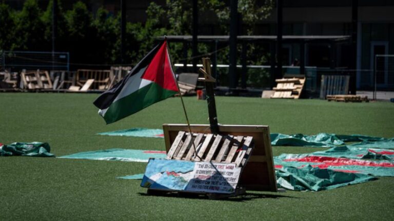 ترك المتظاهرون المؤيدون للفلسطينيين في جامعة بريتيش كولومبيا وراءهم علماً فلسطينياً ورسالة أكّدوا فيها أنهم سيواصلون النضال. الصورة: Radio-Canada / Ethan Cairns CANADAكندا عربي المتظاهرون الداعمون للفلسطينيين يفككون مخيمهم في جامعة ’’يو بي سي‘‘ by admin 10 يوليو، 2024 written by admin 10 يوليو، 2024 268 راديو كندا الدولي / RCI قام متظاهرون مؤيدون للفلسطينيين بتفكيك مخيّم احتجاجي أقاموه قبل أكثر من شهرين في ملعب رياضي داخل حرم جامعة بريتيش كولومبيا (UBC) في فانكوفر على ساحل المحيط الهادي. وفكّك المتظاهرون عشرات الخيام بحلول اليوم، لكنّ الحواجز والسياج حول الموقع كانت لا تزال قائمة عند إعداد هذا الخبر. وجاء في بيان صادر عن إدارة الجامعة أنّ ’’المتظاهرين غادروا ملعب ماكينيس‘‘ المتاخم لحلقة النقل في الجامعة ولمبنى اتحاد الطلاب يوم الأحد. لكنّ البيان لم يعطِ تفاصيل إضافية. وأكدت متحدثة باسم المخيم الاحتجاجي في رسالة نصية أنه تم إغلاقه. وقال حارس أمن تابع للجامعة في ملعب ماكينيس، رفض الكشف عن اسمه، إنّ المتظاهرين أخلوا الموقع مساء أمس الأحد دون تقديم أيّ إشعار. وقام الحراس بدوريات في المنطقة اليوم لمنع الأشخاص غير المصرَّح لهم من دخول الملعب بانتظار وصول فرق التنظيف. لقطة عن بُعد للمخيم الاحتجاجي في حرم جامعة بريتيش كولومبيا (UBC) في فانكوفر في الأيام الأولى لانطلاقه.الصورة: Radio-Canada / Ben Nelms ويوم الجمعة كان بالإمكان رؤية أكثر من 35 خيمة وعدد صغير من الأشخاص في المخيم الذي أطلقه المتظاهرون في 29 نيسان (أبريل). وعند إطلاقهم المخيّم طالب المتظاهرون إدارةَ الجامعة بسحب استثماراتها من الشركات الإسرائيلية التي اتّهموها بالتواطؤ في ’’قمع‘‘ الفلسطينيين و’’إبادتهم الجماعية‘‘، كما طالبوا الجامعة بمقاطعة الجامعات الإسرائيلية على الصعيد الأكاديمي. ويأتي الإغلاق الهادئ للمخيم الاحتجاجي في جامعة بريتيش كولومبيا بعد إخلاء مخيم احتجاجي آخر في جامعة تورونتو الأسبوع الماضي. فقد أصدر قاضٍ من المحكمة العليا في مقاطعة أونتاريو يوم الثلاثاء الفائت أمراً للمعتصمين في حرم جامعة تورونتو بإزالة الخيام وكافة المنشآت في المخيم الاحتجاجي، مستجيباً بذلك لطلب من إدارة الجامعة. (نقلاً عن وكالة الصحافة الكندية، ترجمة وإعداد فادي الهاروني) روابط ذات صلة: أمر قضائي بإزالة المخيم الاحتجاجي في جامعة تورونتو فانكوفر: الشرطة تتدخل لفتح طريق في حرم ’’يو بي سي‘‘ وتوقف شخصاً جامعة بريتيش كولومبيا مستعدة للتحدث مع طلابها حول استثماراتها 0 comment 0 FacebookTwitterPinterestEmail admin previous post سكن مخصص للطلاب الفرنكوفونيين في جامعة ميموريال next post السماح بدعوى جماعية لمحتجَزي الهجرة ضد الحكومة الفدرالية You may also like Police involved in power pole crash while chasing... 28 أبريل، 2026 Three drivers in HRM charged with stunting 28 أبريل، 2026 كندا لا تزال تراجع خطتها لشراء مقاتلات ’’إف... 28 أبريل، 2026 كارني يُعلن إنشاء أوّل صندوق سيادي للثروة الوطنية... 28 أبريل، 2026 Manitoba man killed in Shubenacadie car crash 27 أبريل، 2026 Prime Minister Mark Carney announces Canada’s 1st sovereign... 27 أبريل، 2026 Power restored after thousands in the dark in... 27 أبريل، 2026 Church Point’s historic Église Sainte-Marie wins national restoration... 27 أبريل، 2026 كارني ناقش مع شينباوم مجالات التعاون بين بلديهما 27 أبريل، 2026 بريتيش كولومبيا: الخمور الأميركية ستبقى محظورة لأنّ الناس... 27 أبريل، 2026