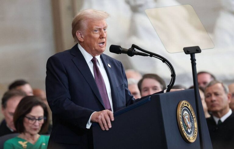 الرئيس الأميركي دونالد ترمب لدى إلقائه خطاب التنصيب في الكابيتول الاثنين (أ.ف.ب) عرب وعالم علي بردى يكتب عن: ترمب العائد يطلق عاصفة «عظمة أميركا» و«عصرها الذهبي» by admin 21 يناير، 2025 written by admin 21 يناير، 2025 277 خطاب القسم حمل على «الخونة»… وقراراته التنفيذية تجهض بعض إنجازات بايدن الشرق الاوسط / واشنطن: علي بردى https://canadavoice.info/wp-content/uploads/2025/01/ترمب-العايد-يطلق-عاصفة-عظمة-اميركا-وعصرها-الذهبي.mp4 عاد الرئيس الأميركي دونالد ترمب، الاثنين، بقوة إلى البيت الأبيض بعدما أدى اليمين في القاعة المستديرة تحت قبة الكابيتول ليكون الرئيس السابع والأربعين للولايات المتحدة، مستهلاً يومه الأول بعاصفة من القرارات التنفيذية الحازمة التي دائماً ما كانت محط ترقب وانتظار في طول البلاد وعرضها، كما في كل أنحاء العالم. ومثّل أداء اليمين الساعة 12:04 بعد ظهر الاثنين عودة دراماتيكية لترمب بعد خسارته السباق الانتخابي لعام 2020 أمام الرئيس السابق جو بايدن الذي انتهى عهده، الاثنين، فضلاً عن نجاته من محاولات عزل في الكونغرس وكثير من القضايا الجنائية المرفوعة ضده في المحاكم. وأطلق الرئيس العائد موجة عارمة من القرارات التنفيذية التي تقوض بعض أهم إنجازات سلفه بايدن، والتي تظهر أيضاً عظمة الولايات المتحدة وقوتها تطبيقاً للشعار الذي رفعه منذ اقتحامه الحلبة السياسية في واشنطن عندما فاز في انتخابات عام 2016 «فلنجعل أميركا عظيمة مرة أخرى». وهذه هي المرة الثانية في تاريخ الولايات المتحدة التي يخسر فيها رئيس منصبه، ويتمكن من العودة إلى السلطة ليصير الأكبر سناً (78 عاماً) لدى دخوله رئيساً إلى البيت الأبيض، بعدما عزز مكانته داخل الحزب الجمهوري بوصفه شخصية دائمة وتحويلية بدلاً من كونه عابراً لفترة رئاسية واحدة. ويستند ترمب القوي في ولايته الثانية إلى سيطرة الجمهوريين على الغالبية في مجلسي النواب والشيوخ، بالإضافة إلى الغالبية المحافظة في المحكمة العليا الأميركية. وما كان ذلك ليحدث لولا تعييناته في هذه المحكمة خلال ولايته الأولى. وكذلك يستند إلى ائتلاف عريض جديد يضم الناخبين من الطبقة العاملة البيضاء والسود واللاتينيين والشباب من كل الخلفيات والأعراق ساعياً من خلال كل ذلك إلى إعادة تشكيل مؤسسات البلاد. موجة الصقيع وخلال اليوم الطويل في واشنطن التي شهدت موجة صقيع قطبية أدت إلى نقل مراسم الاحتفال الرئيسية إلى داخل الكابيتول، بدأ ترمب يومه برفقة زوجته وأفراد أسرته لزيارة كنيسة القديس يوحنا في واشنطن، إلى جانب نائب الرئيس جيه. دي. فانس وأسرته. ثم توجه إلى مبنى بلير المقابل للبيت الأبيض، حيث احتسى الشاي مع الرئيس المنتهية ولايته، لينتقلا لاحقاً إلى تلة الكابيتول، حيث كانت الحشود تنتظره. وقبل ترمب، وفقاً للأعراف الأميركية، أدى جيمس ديفيد فانس (40 عاماً)، الذي سيكون نائب الرئيس الـ50 وثالث أصغر نائب رئيس في التاريخ الأميركي، القسم الدستوري بعدما تلا القسم أمام قاضي المحكمة العليا بريت كافانو. ومن ثم حلف ترمب اليمين أمام رئيس المحكمة العليا جون روبرتس، مستخدماً نسخة العائلة من الكتاب المقدس والنسخة الأولى التي استخدمها الرئيس أبراهام لينكولن في حفل تنصيبه عام 1861. وتحرك ترمب بسرعة إلى ما هو أبعد من طقوس يوم التنصيب لوضع بصمته على اليوم الأول من عهده. وباشر التوقيع فوراً على ما يصل إلى 100 من القرارات التنفيذية، مركزاً بصورة خاصة على الهجرة غير الشرعية، والعفو عن مؤيدين شاركوا في الفوضى التي شهدها الكابيتول في 6 يناير (كانون الثاني) 2021. الرئيس الأميركي دونالد ترمب لدى إلقائه خطاب التنصيب في الكابيتول الاثنين (أ.ف.ب) خطاب ترمب ووسط الحضور التقليدي للرؤساء السابقين جو بايدن وباراك أوباما وجورج بوش وبيل كلينتون ونواب الرئيس السابقين وكذلك زعماء الحزبين الجمهوري والديمقراطي والشخصيات البارزة محلياً ودولياً للمناسبة التي صادفت يوم مارتن لوثر كينغ، برزت مجموعة من المليارديرات ورجال التكنولوجيا الذين سعوا إلى كسب