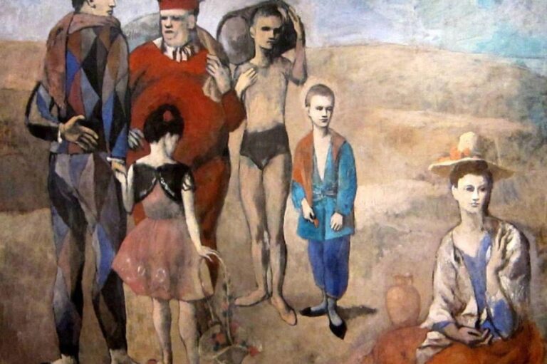 لوحة عائلة لاعبي السيرك لبيكاسو (موقع الفنان) ثقافة و فنون غرباء يشغلون بفوضاهم مكانا ضائعا في لوحة لبابلو بيكاسو by admin 12 نوفمبر، 2023 written by admin 12 نوفمبر، 2023 276 “عائلة فناني السيرك” تجمع البؤس والفن والتجديد عشية ظهور التيار التكعيبي اندبندنت عربية / إبراهيم العريس باحث وكاتب اللوحة التي نطل عليها هنا لوحة لبيكاسو، لكنها تبدو للوهلة الأولى غريبة عن العالم المتوقع، بشكل عام، من بيكاسو. فنحن نعرف أن هذا الفنان الإسباني الكبير الذي عاش معظم سنوات حياته في فرنسا حتى اعتبر أكبر فنان “فرنسي” حي في القرن الـ20 ارتبط اسمه أكثر ما ارتبط بأنواع شديدة التعقيد والتلوين من الفن التكعيبي، الفن الذي كان هو على أية حال في طليعة الفنانين الذين ابتكروه وأبدعوا فيه إلى جانب جورج براك معادله الفرنسي، وخوان غراي مواطنه الإسباني. من المعروف أن الفن التكعيبي اعتبر دائماً من أكثر الفنون انتماءً إلى القرن الـ20، في مقابل أنماط أخرى من فن الرسم، كانت لها جذور ضاربة في التاريخ، حتى ولو كانت سوريالية أو تجريدية وشديدة الحداثة. الفن التكعيبي ارتبط بالثورة العلمية التي شهدها العالم في القرن الـ20، ولا سيما بنظرية النسبية التي وضعها العالم ألبرت أينشتاين، من ناحية تجاوز بعدي الزمان والمكان إلى افتراضات ثالثة تمزج بينهما من طريق حركة – وهمية طبعاً – في الفن التكعيبي، لكنها تقدم فيه كناتج من تضافر هذين البعدين. خصوصية فنية طبعاً ينتمي هذا الكلام إلى تحليلات تحتاج إلى تعمق وإسهاب ليس هنا مكانهما، لكننا سقناه من أجل تأكيد كم أن هذه اللوحة ستبدو غريبة بالنسبة إلى كل الذين عرفوا بيكاسو في طول القرن الـ20 وعرضه، أو تصوروا أنهم عرفوه حقاً، وصارت البيكاسوية بالنسبة إليهم خصوصية فنية لا تشبه شيئاً غير ذاتها، وتعطي صاحبها مكانة تبعده عن كل ما يربطه بمنطقية أو بواقعية في الفن، لكن هذا كله لم يمنع بيكاسو من أن يقول دائماً عن فنه التكعيبي، وحتى عن مراحله اللاحقة التي تبدو أكثر فوضوية وحرية بالتالي، أنها تنتمي إلى الفن الواقعي، أي إلى الواقع، ولكن كما تلتقطه وتفهمه عين الفنان، لا كما يمكن تصوره في شكل مسبق وميكانيكي. والحال أن كثراً من المحللين رأوا منطقية ما في هذا الحكم ووافقوا الرسام عليه، لا سيما منهم أولئك الذين درسوا، خصوصاً، لوحته الأشهر “غرنيكا” واجدين فيها “أعظم عمل فني واقعي” في تاريخ البشرية، غير موافقين على آراء أولئك الذين رأوا أن واقعيتها تنبع من الفكرة المسبقة التي يملكها مشاهدها، عن موضوعها المعبر عن تلك المجزرة المرعبة التي ارتكبها الطيران النازي في تلك البلدة الإسبانية الوادعة. سجال نظري كل هذا يبقى في حيز السجال النظري، وفي حاجة إلى كثير من التعمق المتخصص، لكن في المقابل، ومهما كان من شأن “واقعية” التكعيبية البيكاسوية، نذكر مرة أخرى بأن بيكاسو كانت له أكثر من مرحلة “واقعية” في فنه، ونعني هنا واقعية مباشرة أو شبه مباشرة، عبرت عن مواضع وبشر ومواقف قد لا تكون – طبعاً – فوتوغرافية تماماً، لكنها تندرج في خانة الفن الواقعي بأنماطه الكثيرة. لعل في إمكاننا أن نعتبر معظم اللوحات التي رسمها بيكاسو فترة شبابه وشهرته الأولى، منذ حل في فرنسا، في شكل موقت أولاً، ثم في شكل شبه دائم بعد ذلك، لوحات واقعية، سواء انتمت إلى المرحلة الزرقاء أو إلى المرحلة الوردية وهما مرحلتان في فن بيكاسو سبقتا التكعيبية حتى من دون أن تمهدا لها. من نتاجات المرحلة الوردية تنتمي لوحة “عائلة فناني السيرك” إلى المرحلة الوردية من تراث بيكاسو وتاريخه، بل إن النقاد يعتبرونها عادة، اللوحة التي وصل فيها فن بيكاسو “الوردي” إلى ذروة تعبيره، حتى وإن كان ثمة بين النقاد من يعتبرها لوحة بؤسوية، أي همها، من منظور اجتماعي نضالي غاضب، أن تعبر عن حياة البؤس التي يعيشها الناس الصغار في هذا العالم. غير أن هذه الفرضية، وإن كانت صحيحة نسبياً، يجب ألا تجعل الجانب الاجتماعي المتعاطف مع البائسين يغلب على فنية اللوحة وهيمنتها ا