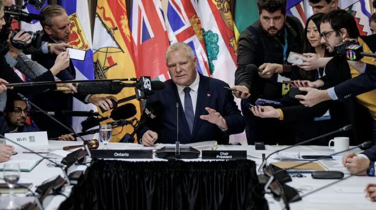 رئيس حكومة أونتاريو دوغ فورد متحدثاً إلى وسائل الإعلام اليوم خلال اجتماع مجلس الفدرالية في تورونتو. الصورة: Radio-Canada / Evan Mitsui CANADAكندا عربي فورد يقول إنّ المقاطعات والأقاليم ستظلّ متحدة بوجه تهديد ترامب by admin 17 ديسمبر، 2024 written by admin 17 ديسمبر، 2024 345 راديو كندا الدولي / RCI سيبقى جميع رؤساء حكومات مقاطعات كندا وأقاليمها متحدين كـ’’فريق كندا‘‘ في مواجهة تهديدات الرئيس الأميركي المنتخَب دونالد ترامب بفرض رسوم جمركية على واردات بلاده من كندا، على الرغم من ’’الفوضى‘‘ التي تسود أوتاوا حالياً، وفق ما قاله اليوم الرئيس الحالي لمجلس الفدرالية، رئيس حكومة مقاطعة أونتاريو دوغ فورد، بعد ساعات على إعلان وزيرة المالية الفدرالية كريستيا فريلاند استقالتها. وعقد مجلس الفدرالية، الذي يضمّ رؤساء حكومات المقاطعات العشر والأقاليم الثلاثة، اجتماعه الخريفي في تورونتو أمس واليوم. وحثّ خلاله فورد نظراءَه على ”إظهار الوحدة على امتداد البلاد‘‘. وكان أحد أهم بنود جدول أعمال الاجتماع مناقشةَ تهديدات الرئيس الأميركي المنتخَب. يُذكر أنّ ترامب هدّد في 25 تشرين الثاني (نوفمبر) بفرض رسوم جمركية بنسبة 25% على كافة الواردات من كندا والمكسيك في اليوم الأول الذي يتسلّم فيه منصبَه، أي في 20 كانون الثاني (يناير) المقبل، ما لم تعمل هاتان الدولتان على إيقاف العبور غير القانوني للأفراد والمخدِّرات، لا سيما الفنتانيل، إلى الولايات المتحدة. ورداً على سؤال حول ما إذا كان قلقاً من استقالة فريلاند، أجاب فورد، وهو جالس إلى الطاولة نفسها مع نظرائه: ’’أعتقد أننا جميعاً قلقون‘‘. وقال فورد، ككثيرين سواه، إنه لم يكن يتوقع استقالة وزيرة المالية في حكومة جوستان ترودو الليبرالية في أوتاوا. وفاجأت فريلاند الأوساطَ السياسية في كندا عندما أعلنت استقالتها صباح اليوم، قبل ساعات فقط من موعد تقديمها البيان الاقتصادي الخريفي لحكومتها. وكان قرارها بمثابة قنبلة مدوية. نائبة رئيس الحكومة الكندية، وزيرة المالية كريستيا فريلاند، متحدثةً في مؤتمر صحفي في أوتاوا (أرشيف).الصورة: La Presse canadienne / Adrian Wyld وبدا من الصعب تحقيق الوحدة التي يسعى إليها فورد. فقبل بدء اجتماع مجلس الفدرالية كانت مواقف المقاطعات متباينة بشأن النهج الذي يجب اعتماده لمواجهة تهديدات الرئيس الأميركي المقبل. فورد، الذي يرأس حكومة كبرى مقاطعات كندا من حيث عدد السكان وحجم الاقتصاد، دعا لاتخاذ موقف متشدد، مهدداً بوقف إمدادات الطاقة عن خمس ولايات أميركية في حال نفّذ ترامب تهديده. رئيسة الحكومة الليبرالية في مقاطعة نيو/نوفو برونزويك، سوزان هولت، قالت إنّ الردّ برسوم جمركية على تهديدات ترامب يمكن أن يساهم في جعله يتراجع، لكنها أضافت أنه سيكون من الصعب على المقاطعات أن تتوصل إلى موقف موحّد حول ذلك. رئيسة حكومة حزب المحافظين المتحد في ألبرتا، دانييل سميث، قالت أمس إنه من ’’السُخف‘‘ الاعتقاد بأنّ النزاع يمكن حله عن طريق فرض رسوم جمركية على الواردات الأميركية إلى كندا. وأضافت سميث أنها لا تدعم قطع صادرات النفط والغاز من مقاطعتها إلى الولايات المتحدة وأنها تفضّل حلّ الأزمة باعتماد السبل الدبلوماسية. وألبرتا في غرب كندا هي أغنى مقاطعات البلاد بالنفط. رئيسة حكومة ألبرتا دانييل سميث (أرشيف).الصورة: Radio-Canada / Emilio Avalos وكان رئيس حكومة حزب التحالف لمستقبل كيبيك فرانسوا لوغو قد قال الأسبوع الماضي إنّ على كندا ألّا تلجأ إلى التهديد رداً على تهديدات ترامب. وأوضح أنه اجتمع بترامب في باريس على هامش مراسمِ إعادة افتتاح كاتدرائية ’’نوتردام‘‘ وأنه سأله ما إذا كان بالإمكان تجنّبُ الرسوم الجمركية وأنّ الرئيسَ الأميركيَّ المنتخّب أجابه بأنّ هذا ممكن إذا قامت كندا بتعزيز الأمن على الحدود المشتركة ولم يعد هناك مهاجرون غيرُ شرعيين يدخلون إلى الولايات المتحدة. وفي مجال آخر، اتفق رؤساء حكومات المقاطعات والأقاليم على اقتراح جديد لتسريع الموافقات على الأدوية المنقذة للحياة