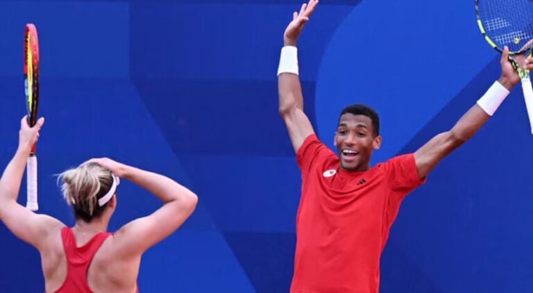 في الملعب، غابرييلا دابروفسكي من مدينة أوتاوا وفيليكس أوجيه ألياسيم من كيبيك يعبران عن فرحهما بعد فوزهما بالميدالية البرونزية في بطولة الزوجي المختلط لكرة المضرب في أولمبياد باريس اليوم الجمعة. الصورة: Reuters / Angelika Warmuth CANADAكندا عربي كندا تفوز بأول ميدالية أولمبية في كرة المضرب منذ ألعاب سيدني by admin 3 أغسطس، 2024 written by admin 3 أغسطس، 2024 237 راديو كندا الدولي / RCI فاز الثنائي الكندي غابرييلا دابروفسكي وفيليكس أوجيه ألياسيم بالميدالية البرونزية في بطولة الزوجي المختلط لكرة المضرب في أولمبياد باريس اليوم الجمعة. وتغلب الثنائي الكندي على الهولنديين ديمي شورس وويسلي كولهوف بمجموعتين 6-3 و7-6 (7/2). تجدر الإشارة إلى أنها أول ميدالية أولمبية لكندا في التنس منذ الميدالية الذهبية التي فاز بها دانييل نيستور وسيباستيان لارو في أولمبياد سيدني في أستراليا عام 2000. أداء متكامل للاعبَين الكنديين اليوم في بطولة الزوجي المختلط للتنس، مما أنسى جمهورهما الخسارة التي مُنيا بها في اليوم السابق أمام لاعبَي تشيكيا كاترينا سينياكوفا وتوماس ماتشاك في نصف النهائي. على أنغام النشيد الوطني الكندي وصيحات المشجعين، احتفل أوجيه ألياسيم ودابروفسكي بانتصارهما في أولمبياد باريس. فازت اليوم الجمعة الكندية من مقاطعة كيبيك صوفي آن ميتوت بالميدالية البرونزية في بطولة الترامبولين في أولمبياد باريس. وهي أول كيبيكية تشارك في هذه الرياضة في الألعاب الأولمبية.الصورة: AP / Charlie Riedel يذكر أنه قبل ساعات قليلة من اليوم الجمعة، وعلى الملعب الرئيسي، تغلب الإسباني كارلوس الكاراس على أوجيه ألياسيم في نهائي مسابقة كرة المضرب للرجال. تجدر الإشارة إلى أن عدد الميداليات التي أحرزتها كندا إلى الآن هي 11 ميدالية: ثلاث ذهبيات واثنتان فضيتان وست برونزية. فازت كريستا ديغوتشي بميدالية ذهبية في بطولة الجودو للنساء (57 كيلوغراما). وفازت السباحة سمر ماكنتوش (17 عاما) بذهبيتين واحدة في سباحة الـ 400 متر فردي للإناث والثانية في الـ 200 متر فراشة للإناث. أيضا فازت ماكنتوش بالميدالية الفضية في سباحة الـ 400 متر حرّة للإناث. كما فازت كندا بالميدالية الفضية في بطولة الرجبي السباعي للإناث. (المصدر: راديو كندا، سي بي سي، إعداد وترجمة كوليت ضرغام) روابط ذات صلة: [تقرير] رياضيون من أصول مهاجرة يمثلون كندا في أولمبياد باريس كندا تحرز أول ذهبيتَين في دورة الألعاب الأولمبية في باريس فوز الكنديات على النيوزيلنديات في كرة القدم في أولمبياد باريس كرة القدم الأولمبية: رَفضُ استئناف كندا في قضية التجسس 0 comment 0 FacebookTwitterPinterestEmail admin previous post ’’نسافر إلى بيروت أو لا نسافر‘‘: اللبنانيون أمام معضلة حقاً next post Halifax Wanderers unsure if its highly-regarded new signing will play Monday You may also like Police involved in power pole crash while chasing... 28 أبريل، 2026 Three drivers in HRM charged with stunting 28 أبريل، 2026 كندا لا تزال تراجع خطتها لشراء مقاتلات ’’إف... 28 أبريل، 2026 كارني يُعلن إنشاء أوّل صندوق سيادي للثروة الوطنية... 28 أبريل، 2026 Manitoba man killed in Shubenacadie car crash 27 أبريل، 2026 Prime Minister Mark Carney announces Canada’s 1st sovereign... 27 أبريل، 2026 Power restored after thousands in the dark in... 27 أبريل، 2026 Church Point’s historic Église Sainte-Marie wins national restoration... 27 أبريل، 2026 كارني ناقش مع شينباوم مجالات التعاون بين بلديهما 27 أبريل، 2026 بريتيش كولومبيا: الخمور الأميركية ستبقى محظورة لأنّ الناس... 27 أبريل، 2026