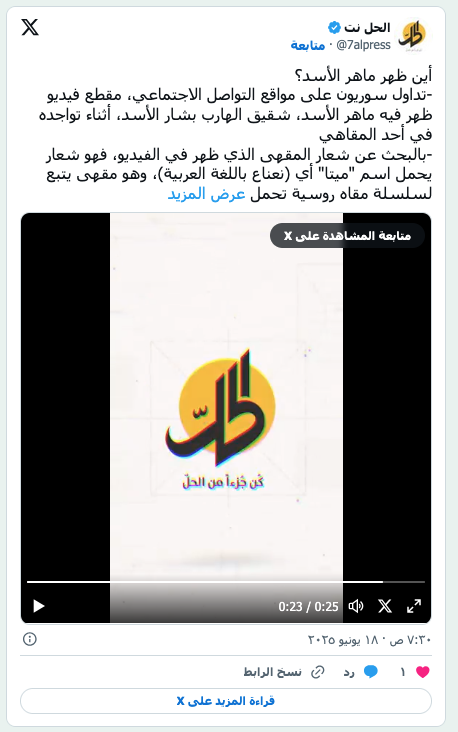 عنصر من القوات السورية الجديدة بالقرب من صورة للرئيس المخلوع بشار الأسد وشقيقه ماهر بمقر الفرقة الرابعة بدمشق (رويترز) عرب وعالم ماهر الأسد يظهر في مقهى شيشة بموسكو by admin 20 يونيو، 2025 written by admin 20 يونيو، 2025 189 داخل مول فخم قريب من مكان إقامة الأسد في ضواحي العاصمة الروسية الشرق الاوسط / دمشق: سعاد جروس في حين لا يزال السوريون يتساءلون عن مكان ماهر الأسد قائد الفرقة الرابعة، وشقيق الرئيس السوري المخلوع بشار الأسد، تداول ناشطون مقطع فيديو التقط خلسة بهاتف جوال يظهر فيه ماهر الأسد في مقهى ينظر في هاتفه وهو برفقة أحد المقربين منه. وأفاد ناشطون بعد تدقيق تفاصيل المكان، بأن المقهى يقع في مول فخم قريب من مكان إقامة الأسد في ضواحي العاصمة الروسية موسكو. وكان بعض السوريين قد شككوا بصحة الفيديو، وأن الظاهر فيها هو شبيه ماهر الأسد، خاصة أنه بدا ممتلئ الوجه، مقارنة مع آخر صورة ظهر فيها قبل بضع سنوات بدا فيها نحيلاً، إلا أن مواقع سورية تداولت منشوراً أكد أن الظاهر في مقطع الفيديو هو بالفعل ماهر الأسد يجلس في مقهى «ميتا» الذي يتبع سلسلة مقاهي «شيشا بار» في موسكو، وتم التأكد من خلال تشابه ما ظهر في الفيديو مع إحدى الصور المنشورة عبر خرائط «غوغل». متداولة على السوشال ميديا لتحديد موقع مكان ماهر الأسد وحسب المنشور، يبعد هذا الفرع نحو 20 دقيقة بالسيارة عن مكان إقامة عائلة الأسد (مجمع سيتي أوف كابيتالز في موسكو). ومن جانبه، أكد موقع «نبض سوريا» أن المقطع صوّر حديثاً في موسكو. ومنذ سقوط نظام الأسد في 8 ديسمبر (كانون الأول) 2024، تنتشر العديد من الروايات حول مصير ماهر الأسد، ومكان وجوده، فهناك روايات عن وجوده شمال العراق يُحضِّر لبناء قوة عسكرية يعود بها إلى مناطق الساحل، وقد أحدثت هذه الرواية صدى واسعاً في مناطق الساحل، وأسهمت في كشف خلايا نائمة للفلول راحت تنشط في مهاجمة السلطة الجديدة، ممهدة لاشتعال أحداث الساحل في 6 مارس (آذار) الماضي. إلا أن روايات أخرى أشارت إلى وجود ماهر الأسد في موسكو، فقد نقلت «وكالة الصحافة الفرنسية» في تقرير سابق عن مصدر عراقي رفيع المستوى ومصدرين سوريين، أن ماهر الأسد (58 عاماً)، لم يكن يعلم بعزم شقيقه على الهروب إلى روسيا؛ لذا فقد هرب بشكل منفصل بواسطة مروحية إلى العراق، ثم إلى روسيا عبر إيران، على الأرجح. أين ظهر ماهر الأسد؟-تداول سوريون على مواقع التواصل الاجتماعي، مقطع فيديو ظهر فيه ماهر الأسد، شقيق الهارب بشار الأسد، أثناء تواجده في أحد المقاهي-بالبحث عن شعار المقهى الذي ظهر في الفيديو، فهو شعار يحمل اسم «ميتا» أي (نعناع باللغة العربية)، وهو مقهى يتبع لسلسلة مقاه روسية تحمل… pic.twitter.com/6UdiH5tZLt — الحل نت (@7alpress) June 18, 2025 وتباينت ردود الفعل السورية حول ظهور ماهر الأسد بين ساخر من تحوُّل عائلة الأسد إلى لاجئين منزوعي السلطة بعد أن هجروا أكثر من 10 ملايين سوري، وآخر قرأ في تداول المقطع في هذا التوقيت، رسالة استفزازية بأن آل الأسد، ورغم كل ما ارتكبوه بحق السوريين يعيشون في سلام، ويمارسون حياتهم الطبيعية في موسكو. وكان الناطق باسم وزارة الداخلية نور الدين البابا، قد قال في مؤتمر صحافي عقد بدمشق في العاشر من الشهر الحالي وأثار الكثير من الجدل، إن وزارة الداخلية شكّلت مديرية للتواصل مع الإنتربول الدولي، مؤكداً أن ملاحقة رموز النظام السابق ليست أولوية في المرحلة الحالية، وإنما معالجة ملف السوريين الذين تم تصنيفهم إرهابيين دولياً أثناء الثورة. أحرقت السلطات السورية الجديدة مئات الأطنان من حبوب الكبتاغون المخدرة بالإضافة إلى أكياس من الحشيش في مقر الفرقة الرابعة في دمشق فبراير الماضي (إ.ب.أ) ماهر الأسد الذي ندر ظهوره في الإعلام سابقاً، يحمل رتبة لواء في قوات النظام، وكان يقود الفرقة الرابعة، أحد أكثر التشكيلات العسكرية السورية قوة وبطشاً، التي ساهمت بشكل حاسم في قمع الاحتجاجات الشعبية عام 2011، مرتكبة مئات المجازر، ما أهّلها لتجاوز دوريها العسكري والأمني نحو لعب أد