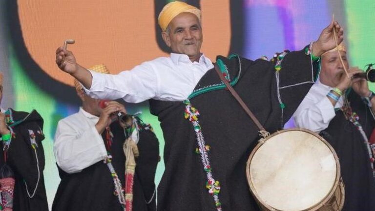 ثقافة و فنون موسيقى جهجوكا المغربية تبهر رواد مهرجان غلاستونبري في إنجلترا by admin 10 يوليو، 2023 written by admin 10 يوليو، 2023 330 Author, ريتشارد هاميلتون \ Role, بي بي سي نيوز في شمال المغرب وتحديدا في قرية جهجوكا الجبلية، اعتادت فرقة ” كبار الموسيقيين في جهجوكا” وعلى مدى مئات السنين أن تطرب مسامع الناس بعزفها الفريد على الطبول و المزامير،الذي تناقلته الأجيال. مؤخرا، افتتحت فرقة كبار الموسيقيين الشعبية مهرجان غلاستونبري في جنوب غرب إنجلترا، والذي يعد أحد أكبر الفعاليات الموسيقية في الهواء الطلق على مستوى العالم. لا أحد يعلم بالتحديد كم عمر تلك الموسيقى التي اعتادت الوديان والتلال المحيطة بقرية جهجوكا على سماعها. تشير بعض الأبحاث إلى أن تاريخ هذه الموسيقى يعود إلى القرن الخامس عشر. يقول ريكي شتاين، والذي ساعد في تنظيم عروض الفرقة في مهرجان غلاستونبري لهذا العام: ” أطلق عليها عالم النفس الأمريكي تيموثي ليري اسم فرقة الروك أند رول ذات الـ 4000 عام”. ويضيف شتاين لبي بي سي: “ربما يكون في هذا بعض المبالغة، ولكن مع ذلك، علينا أن نعلم أن هذه الموسيقى ومنذ دهر بعيد انتقلت من جيل إلى جيل، من الأب إلى الابن”. في عام 1971 وبمحض الصدفة، تعرّف شتاين لأول مرة على فرقة كبار الموسيقيين في جهجوكا. يقول شتاين: “لقد أذهلني وسحرني ما وجدته هناك، لدرجة أنني مزقت تذكرة العودة الخاصة بي وعشت في القرية لمدة عامين”. وفي تلك الفترة أيضا، اكتشف مناهضا الثقافة الأمريكية بول بولز وويليام بوروز، وكذلك الفنان البريطاني الكندي بريون جيسين هذه الفرقة الموسيقية. قال جيسين:” هذه هي الموسيقى التي أود الاستماع إليها ما تبقَّى من حياتي”، مضيفا أن فترة مغيب الشمس لا يمكن أن تمرّ دون الاستماع إلى كبار الموسيقيين. وفي عام 1968 تعاون مؤسس فرقة “رولينغ ستونز” بريان جونز، مع موسيقيي جهجوكا في تسجيل وتقديم ألبوم موسيقي. يتذكر بشير عطار الذي كان حينها فتى يرعى أغنام القرية، كيف تلقى خبر وصول أسطورة موسيقى الروك أند رول إلى قريته: ” عندما وصل بريان جونز إلى القرية، جاء إليّ أخي الصغير مصطفى وقال إن شخص ما بشعر كثيف هنا. ركضت وركضت لرؤية والدي ورأيت هذا الرجل بشعره الأشقر الكثيف. صافحته وبدا رائعا!”. مكث جونز في القرية ليلة ويوماً واحداً، كما أنه حضر مهرجان الموسيقى هناك والذي استمر لعدة أيام بعد رحيله. وعلى غلاف ألبومه الموسيقي الذي سجله عام 1968 كتب جونز”لا أعلم ما إذا كنت أمتلك القدرة الكافية لتحمل سحر هذه الموسيقى طوال فترة المهرجان الكاملة”. Getty Images – على مرّ السنين، تناقص عدد أعضاء الفرقة يستخدم كبار الموسيقيين في عزفهم الآلات المغربية التقليدية. وتسمى المزامير المستخدمة “الغيطة” بالدارجة المغربية، كما أن هناك نوعان من الطبول المستخدمة: الزواك والفاراد. يقول أحمد العطار، والذي يُشار إليه أحيانا بقائد الفرقة: “عندما أعزف الموسيقى أشعر بسعادة بالغة تماما مثل طائر يحلق عاليا”. ويضيف العطار لبي بي سي: “لهذا السبب أريد عزف هذه الموسيقى إلى الأبد. عندما أشعر بالغضب أو الحزن أستمع لها، وفجأة أشعر بالسعادة مرة أخرى، أشعر وكأنني طائر يحلق بعيدا”. يقول عضو آخر في الفرقة يدعى عبد السلام رتوبي: “عندما تعزف الغيطة، فأنت تصبح جزءا من هذا الإيقاع الرائع”. ويضيف: ” أحب رؤية الناس وهم متأثرون بموسيقانا. كلما احتجت لتهدئة نفسي أقوم بالعزف منفردا. إن الدعم الجماهيري المتمثل في رقصهم وسعادتهم هو أجمل هدية تقدم لنا”. عادة يستغرق تعلم الموسيقى بشكل صحيح عدة سنوات، لكن أحمد العطار يقول إن الوصول إلى مرحلة الإتقان قد يستغرق عمرا كاملا. يقول العطار: ” منذ أن كنت طفلا صغيرا في عمر التاسعة تقريبا، بدأت أرقص وأعزف على الطبل. وعندما كبرت في السن التحقت بفرقة كبار الموسيقيين، هناك وبشكل يومي تعلمت الموسيقى على يد قائد الطبول بردوز، وساعدني أيضا زملائي. تعلم الموسيقى ليس بالأمر الصعب، إذا كانت هي حياتك وشغلك الشاغل”. تعود جذور موسيقى ا