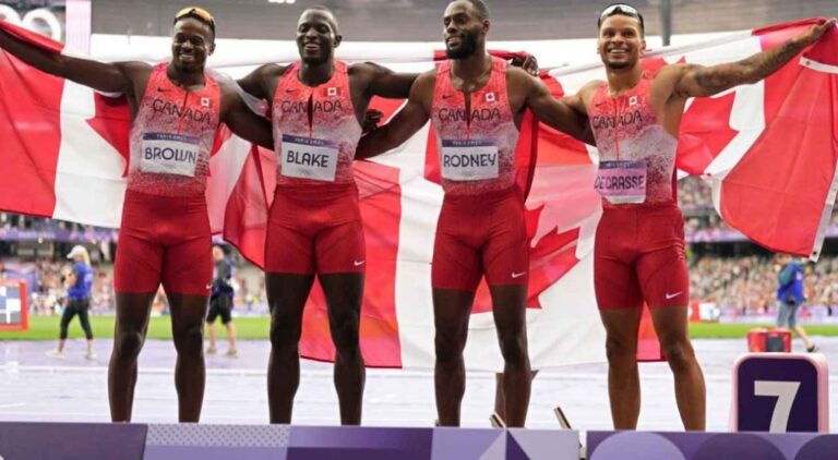 Team Canada pose after winning the gold medal in the men's 4 x 100 meters relay final at the 2024 Summer Olympics. (Ashley Landis_AP) CANADAHALIFAX news Andre De Grasse paces Canada to gold medal upset in men’s 4×100 relay by admin 9 August، 2024 written by admin 9 August، 2024 264 CITYnews halifax / By John Marchesan Canada has won the gold medal in the men’s 4×100 metre relay at the Paris Olympics on Friday. The men’s team of Aaron Brown, Jerome Blake, Brendon Rodney and Andre De Grasse crossed the line in a season-best time of 37.50, beating South Africa by just 7-100ths of a second. Great Britain claimed the bronze. The powerhouse Americans, missing star Noah Lyles who withdrew because of COVID-19, were disqualified after botching an exchange. For De Grasse, who failed to make the finals of the 100 and 200 metre events, he is now tied with swimmer Penny Oleksiak as Canada’s most decorated Olympian with his seventh career medal (two gold, two silver, three bronze). “It feels pretty amazing. To be out with these guys, my brothers, I’ve been with them since the beginning of time, so it’s amazing,” said De Grasse. “We talked about this moment for years. It feels good to bring it to fruition. I’m super grateful.” It is the third consecutive Olympic medal for Canada in this event after silver in 2021 and bronze in 2016. It’s the first gold medal in the event since Donovan Bailey paced the relay team to the top of the podium in 1996 in Atlanta. It is Canada’s seventh gold medal of these Olympic Games which equals the total from Tokyo 2021 and Barcelona 1992 which ties a national record for most-ever won at a non-boycotted Summer Olympics. The 23 overall medals are one shy of the total won in Tokyo three years ago. Meanwhile, Canada’s Sade McCreath, Jacqueline Madogo, Marie-Eloise Leclair and Audrey Leduc finished sixth in the women’s 4×100-metre relay in 42.69 seconds in pouring rain. The United States, anchored by 100-metre silver medallist Sha’Carri Richardson, won in 41.78 seconds, just ahead of Great Britain (41.85). Germany was third in 41.97. 0 comment 0 FacebookTwitterPinterestEmail admin previous post اتهام بالتحرش الجنسي يزيد أوجاع البعثة الأولمبية المصرية في باريس next post عائلة محمدي تكشف عن مواجهات بين سجينات إيرانيات وحراس You may also like Diesel prices to shift again in Nova Scotia... 6 March، 2026 Halifax Water investigating ‘privacy incident’ on its online... 6 March، 2026 Halifax teens lament the loss of government program... 6 March، 2026 Spring Garden area businesses call out paid parking... 6 March، 2026 Five men face obstruction charges related to Dartmouth... 6 March، 2026 مارك كارني يعقد شراكة استراتيجية مع اليابان 6 March، 2026 أوتاوا بدأت أول رحلة جوية لإعادة مواطنيها من... 6 March، 2026 كنديون عالقون في الإمارات العربية المتحدة بسبب الحرب 6 March، 2026 دومينيك لوبلان غدا في واشنطن تحضيرا لمراجعة اتفاق... 6 March، 2026 ‘A terrible idea’: Halifax to raise parking fees,... 6 March، 2026