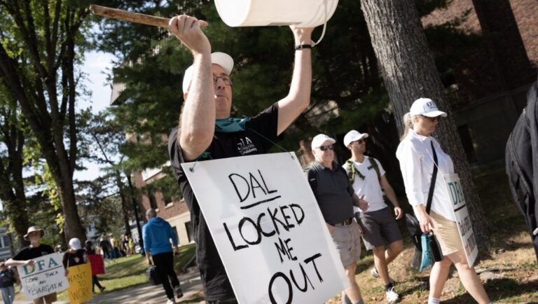 Members of the Dalhousie Faculty Association walk a picket line as students arrive on campus to begin the school year at Dalhousie University in Halifax, Tuesday, Sept. 2, 2025. The first day of school was cancelled for most Dalhousie University students after the university locked members out over a contract dispute. THE CANADIAN PRESS/Darren Calabrese CANADAHALIFAX news Dalhousie University board and faculty ratify new labour agreement by admin 18 سبتمبر، 2025 written by admin 18 سبتمبر، 2025 130 CITYnews halifax / By Emily Baron Cadloff, The Canadian Press The union representing nearly 1,000 Dalhousie University professors and other teaching staff has voted to accept a new collective agreement, bringing an end to a nearly month-long labour dispute. The Dalhousie Faculty Association said their members overwhelmingly supported the new three-year agreement. Out of 939 members who voted, the association said 899 were in favour of the agreement. “Our membership was strong and unified throughout this entire ordeal,” said DFA President David Westwood. “We didn’t get everything we wanted – that’s to be expected – but we made significant gains in a number of areas important to our members.” The association also said the vote also had a participation rate of nearly 95 per cent. The deal includes a raise of over 10 per cent over the three years, increased parental leave benefits and a requirement for each faculty to develop workload policies “to ensure a more fair and equitable distribution of workload,” the association said. The agreement also includes five days of paid leave for Indigenous faculty to observe cultural or traditional days of importance, the association said. Related: Dalhousie University board and faculty ratify new labour agreement Dalhousie, faculty association ‘fairly close’ to a deal, union president says Dalhousie, faculty association reach tentative deal to end lockout While the association said faculty members would return to work on Thursday, classes would resume on Sept. 23. However, additional schedule changes, such as dates of final exams, have not yet been finalized. “Are we going to have to give up some of our vacation, or add to the end (of the semester)? What’s going to happen? Are we going to do a big push now to start a course that we’re halfway into?” asked Johnny Aitchison, a second-year student. Dalhousie’s administration locked out faculty on Aug. 20, and union members began their strike two days later. The union had argued that wages have not kept up with inflation. Salaries can vary dramatically across seniority, type of instruction, and department. At the high end, some senior faculty earn roughly $240,000 per year. On the low end, the salary scale for some technology instructors starts around $56,000 per year. The association said the new deal included salary adjustments between $1,500 and $5,000 for early career faculty who join the university at a rank other than full professor. Prior to the lockout, the university had offered a six per cent salary raise over three years, with an increase of two per cent per year. The faculty association countered with an ask of 14.25 per cent over three years. Some Dalhousie students have planned a sit-in on campus on Thursday to protest for a tuition refund. “It’s not fair for us to pay 100 per cent of our tuition for a semester where we’re only going to get 80 per cent,” says Rose Silivestru, a law student who runs the DalLockedOut Instagram account, which has posted updates throughout the lockout and strike. This report by The Canadian Press was first published Sept. 17, 2025 0 comment 0 FacebookTwitterPinterestEmail admin previous post Nova Scotia’s Donald Oliver, first Black man named to Senate, dies at 86 next post كندا تحثّ إسرائيل على وقف هجومها ’’المُروِّع‘‘ على مدينة غزة You may also like Wilkie wins Canada’s first gold medal at Milan... 8 مارس، 2026 Iranian state TV says Mojtaba Khamenei, son of... 8 مارس، 2026 Missing police badge recovered in proactive traffic stop 8 مارس، 2026 Mooseheads win season series against Eagles 8 مارس، 2026 PM Carney calls federal by-elections for April in... 8 مارس، 2026 بمشاعر تتأرجح بين الارتياح والتوتر: كنديون يغادرون لبنان... 8 مارس، 2026 Diesel prices to shift again in Nova Scotia... 6 مارس، 2026 Halifax Water investigating ‘privacy incident’ on its online... 6 مارس، 2026 Halifax teens lament the loss of government program... 6 مارس، 2026 Spring Garden area businesses call out paid parking... 6 مارس، 2026
