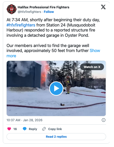 CANADAHALIFAX news Detached garage fire contained in Oyster Pond https://canadavoice.info/wp-admin/post-new.php by admin 29 يناير، 2026 written by admin 29 يناير، 2026 66 CITYnews halifax/By Natasha O’Neill Crews tackled a garage blaze that could have spread to more structures close by. Halifax’s firefighter union said the call for the blaze came in around 7:34 a.m. Station 24, Musquodoboit Harbour, teams responded to Oyster Pond to find a garage in flames. They noted while on scene that about 50 feet away, other structures were at risk of catching. Using a plan to minimize damage and prevent spreading, firefighters were able to quickly douse the flames. “Calls like this are a reminder that emergencies don’t wait — and why having firefighters ready to respond at a moment’s notice saves property and lives,” Halifax Professional Fire Fighters said in a post. The union has been highlighting incident saying more funding is needed to help improve response times across the entire municipality. In 2024, Halifax Regional Fire and Emergency (HRFE) only reached its own response target 54.5 per cent of the time. Related: Halifax firefighters call for new leadership, say department ignored reported abuse Fire crews knocked down dumpster blaze and save two dogs from building Halifax fire chief retiring amid calls to step down “Response time targets are critical to ensure we have enough resources, that’s firefighters on fire trucks, on scene quickly to perform search, rescue and fire suppression,” Joe Triff, vice-president of HPFF, told CityNews. “Every second that passes without intervention allows a fire to grow and spread, increasing the risk to the public and to the responding firefighters.” In 2018, Halifax Regional Council adopted the current standard of 14 firefighters in 11 minutes. That standard is already below the international best practice set out in NFPA 1710. HRFE staffs 51 stations serving 419,000 residents in a 5,577 km2 area. 0 comment 0 FacebookTwitterPinterestEmail admin previous post African Heritage Month a time for learning, celebration, minister says next post RCMP approve 32 awards for officers, staff involved in Nova Scotia mass shooting case You may also like Diesel prices to shift again in Nova Scotia... 6 مارس، 2026 Halifax Water investigating ‘privacy incident’ on its online... 6 مارس، 2026 Halifax teens lament the loss of government program... 6 مارس، 2026 Spring Garden area businesses call out paid parking... 6 مارس، 2026 Five men face obstruction charges related to Dartmouth... 6 مارس، 2026 مارك كارني يعقد شراكة استراتيجية مع اليابان 6 مارس، 2026 أوتاوا بدأت أول رحلة جوية لإعادة مواطنيها من... 6 مارس، 2026 كنديون عالقون في الإمارات العربية المتحدة بسبب الحرب 6 مارس، 2026 دومينيك لوبلان غدا في واشنطن تحضيرا لمراجعة اتفاق... 6 مارس، 2026 ‘A terrible idea’: Halifax to raise parking fees,... 6 مارس، 2026
