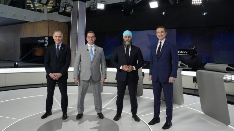 Liberal leader Mark Carney, Bloc Quebecois Leader Yves-Francois Blanchet, New Democratic Party Leader Jagmeet Singh and Conservative Leader Pierre Poilievre pose for a photo before the French-language federal leaders' debate, in Montreal, Wednesday, April 16, 2025. THE CANADIAN PRESS/Christopher Katsarov CANADAHALIFAX news Leaders target campaign front-runner Mark Carney in French-language debate by admin 17 أبريل، 2025 written by admin 17 أبريل، 2025 627 CITYnews halifax / By Kelsey Patterson With the Liberals leading heavily in the polls less than two weeks away from Canada’s general election, Mark Carney was in the crosshairs throughout Wednesday’s French-language debate in Montreal. The leaders of Canada’s four main federal political parties squared off in the first of two debates ahead of the April 28 vote. Conservative Leader Pierre Poilievre attacked the Liberals’ economic policies from the last decade under Justin Trudeau, and said Carney is simply repeating those policies. “You’re just like Justin Trudeau. We need change,” Poilievre said. He later took a shot at the Liberal leader’s track record as the governor of the Bank of England. Bloc Québécois Leader Yves-François Blanchet echoed Poilievre’s attacks, claiming Carney was fundamentally similar to his predecessor. “It’s the same ministers, the same cabinet, the same ideology, the same hostility towards Quebec values,” Blanchet said. “It’s not because you change the leader that the philosophy that you contributed to will change from one day to the next.” Blanchet added Carney had an unproven track record, no political experience, and accused him of not reaching out to provincial leaders in his brief time as prime minister — before the election was called. “I never got a call from him. There was no willingness on his part,” Blanchet said. Bloc Quebecois Leader Yves-Francois Blanchet, New Democratic Party Leader Jagmeet Singh and Conservative Leader Pierre Poilievre listen to Liberal leader Mark Carney speak during the French-language federal leaders’ debate, in Montreal, Wednesday, April 16, 2025. THE CANADIAN PRESS/Sean Kilpatrick The NDP’s Jagmeet Singh pointed the finger at Carney for not increasing employment insurance against the backdrop of American tariffs hurting Canadian workers. Carney repeatedly defended himself, saying he was not the country’s leader for very long. “I just started as prime minister a month ago,” he responded to Blanchet. “I just got here, I just got here,” Carney later told Poilievre when the Conservative leader charged Liberals with always wanting to raise taxes. Carney also came under attack by Blanchet and Singh for what they say was the Liberal leader proposing to increase spending while also promising to make cuts. Blanchet called Carney’s proposal a “Harry Potter budget” and called it magical thinking. Singh chimed in, saying it was one of the “rare times” he agreed with the Bloc leader. It’s the first federal debate for front-runners Carney and Poilievre, who are also going head to head for the very first time. Blanchet and Singh previously debated other party leaders in 2019 and 2021. ‘We can’t control Trump’ The leaders began the debate by sparring over how to respond to the trade war with the United States and pitching themselves as the best one to negotiate with Trump. Poilievre said that on his first day in office, he would open negotiations with Trump on an agreement put an end to tariffs. “We can’t control Trump. So at the same time, we need to control what we can,” Poilievre said. “That means reversing the Liberal economic policies which have weakened our country, unlocking out (natural) resources, cut taxes, bring jobs here to face Trump with strength.” Carney said Canada needs to plan for the worst-case scenario and have a strategy to build a stronger economy. “It’s those elements that will work with Trump. He respects strength, he respects people who know how the world and the private sector works,” Carney said. “Canada has to create other options, new international trade partners, and that’s what I promise.” Blanchet said Canada needs to align with countries that are being affected by U.S. tariffs and “negotiate rationally.” “Trump will hang himself with his own cord because his measures are extremely toxic to the U.S. economy,” he said. “In the meantime, he will also create damage everywhere.” Singh said Canada needs to prioritize what matters most and invest rather than cut. “Like our agriculture, our culture, our French language; not sacrifice it,” Singh said. “A profound value for us is taking care of each other. How we do that is reinforcing our health-care system, not Americanizing it.” Cutting out American products The party leaders were also asked which U.S. products they’ve cut from their daily lives. All other party leaders took a dig at Carney by saying they no longer buy U.S. strawberries. In a recent interview with a Quebec talk show, when asked if he still buys U.S. strawberries, Carney said he doesn’t buy his own groceries. “No more wine, no more American alcohol,” Carney said. “I do my own groceries, and I cook myself. So lots of fruit,” Singh said. “This is a delicious conversation,” Poilievre quipped, adding he buys Canadian beef. Earlier in the debate Carney cited his promises to double housing construction, while Poilievre vowed to cut income taxes and GST on new homes. Blanchet said Quebec should have the right to run its own economy using its own natural resources. Singh prioritized health care, noting his party’s efforts to secure dental and pharmacare programs under the previous government. The two-hour French-language debate is being moderated by Radio-Canada’s Patrice Roy and is focusing on five themes: the cost of living, energy and climate, the trade war, identity and sovereignty, and immigration and foreign af