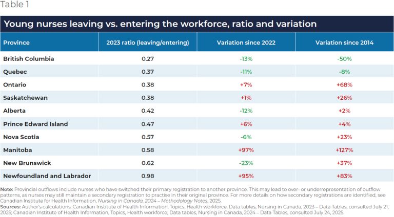 A registered nurse works with a patient in the intensive care unit at the Halifax Infirmary, in Halifax, on Friday, Feb. 25, 2022. THE CANADIAN PRESS_Andrew Vaughan CANADAHALIFAX news Nova Scotia isn’t retaining young nurses, according to new study by admin 24 أكتوبر، 2025 written by admin 24 أكتوبر، 2025 48 CITYnews halifax / By Natasha O’Neill For every 100 young nurses who entered the profession in 2023, over half left Nova Scotia, a new study details. Montreal Economic Institute’s (MEI) newest research, out Oct. 22, showcases provinces across the country are struggling to retain young nurses, and Nova Scotia has one of the worst track records, the data shows. Using numbers from the Canadian Institute for Health Information, the researchers could see how many nurses were employed, unemployed or registered to practice. This year’s focus was on the retention rate of nurses under the age of 35. The data shows that between 2014 and 2023, there was a 23 per cent difference in young nurses leaving versus entering the workforce in the province. That equals to 57 leaving for every 100 that entered the workforce. “In Nova Scotia, we’re seeing numbers that are worse than the national average,” Samantha Dagres, Communications Manager at MEI, told The Todd Veinotte Show. Related: 10% of patients leaving emergency rooms in Nova Scotia before treatment ‘Significant gaps’ in health care knowledge in addressing violence against women: Study IWK launches African Nova Scotian Service for culturally relevant mental health care Dagres said that the focus on young nurses shows the retention problems in the province and the working conditions for those employees. She said that numbers indicate many nurses are entering the workforce, and it has been higher than in 2014. “But what’s really increasing uptake is nurses leaving,” she said. “It tells us that people are deciding to leave the province, but people are also deciding to leave the workforce.” A survey the publication does with nurses each year noted that employees are involuntarily working overtime. Dagres said that this overtime work can be particularly hard on people starting a family, which might be why the ratio drops off at 35. The study noted that British Columbia had the highest retention of young nurses, which could be because of more flexible schedules. “A shift swapping pool is hugely popular in the province,” Dagres said. “That has really improved retention.” (Graph from MEI) 0 comment 0 FacebookTwitterPinterestEmail admin previous post Driver faces long list of charges after evading police, crashing in North End next post Nova Scotia’s Christina Black feels curling buzz ramping up You may also like Diesel prices to shift again in Nova Scotia... 6 مارس، 2026 Halifax Water investigating ‘privacy incident’ on its online... 6 مارس، 2026 Halifax teens lament the loss of government program... 6 مارس، 2026 Spring Garden area businesses call out paid parking... 6 مارس، 2026 Five men face obstruction charges related to Dartmouth... 6 مارس، 2026 مارك كارني يعقد شراكة استراتيجية مع اليابان 6 مارس، 2026 أوتاوا بدأت أول رحلة جوية لإعادة مواطنيها من... 6 مارس، 2026 كنديون عالقون في الإمارات العربية المتحدة بسبب الحرب 6 مارس، 2026 دومينيك لوبلان غدا في واشنطن تحضيرا لمراجعة اتفاق... 6 مارس، 2026 ‘A terrible idea’: Halifax to raise parking fees,... 6 مارس، 2026