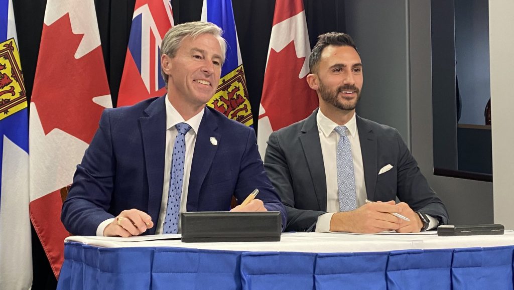 Nova Scotia Premier Tim Houston, left, and Ontario Energy Minister Stephen Lecce sign a memorandum of understanding to work together in exploring the use of small modular reactor technology, in Halifax, on Thursday, Oct. 23, 2025. THE CANADIAN PRESS/Keith Doucette CANADAHALIFAX news Nova Scotia to learn from Ontario’s nuclear efforts as part of new agreement by admin 24 أكتوبر، 2025 written by admin 24 أكتوبر، 2025 104 HALIFAX news / By Lyndsay Armstrong, The Canadian Press HALIFAX — Nova Scotia Premier Tim Houston says his government will learn from Ontario’s nuclear efforts as part of a new agreement he signed with its energy minister Thursday, despite having no near-future plans for nuclear power in the Atlantic province. Ontario’s Minister of Energy Stephen Lecce and Houston, who appointed himself Nova Scotia energy minister two days ago, held a press conference in downtown Halifax to sign the memorandum of understanding on the topic of small modular reactors. “It’s not a near-term thing, for sure,” Houston told reporters, noting that the province has no imminent plans to purchase a small modular reactor. “But we need to be part of the process so we understand what is possible, and that’s what’s happening,” the premier said. Small modular reactors are smaller and produce less energy than traditional nuclear power reactors, the Canadian Nuclear Safety Commission says. Thursday’s agreement creates a framework for both provinces to share knowledge about nuclear technology, including how to manage nuclear waste, Houston said. Earlier this week, Houston booted Trevor Boudreau from the energy portfolio — and from cabinet — and named himself to the role. “I just thought it was important that as premier I be directly tied to that file,” the premier said Thursday. “It sends a message to Nova Scotians, but also to industry as well, of the importance that I hold it as the premier.” Lecce said this agreement with Nova Scotia shows how Canada is “building momentum” on nuclear power. He noted that Saskatchewan, Alberta and New Brunswick have signed similar agreements with his province. Earlier on Thursday, the federal and Ontario governments announced they would be putting a total of $3 billion toward a project to build four small nuclear reactors in the Greater Toronto Area. Prime Minister Mark Carney has added the Darlington New Nuclear Project to his list of projects deemed to be in the national interest and therefore worthy of fast tracking. He and Premier Doug Ford were at the site east of Toronto to announce that Ottawa will contribute $2 billion and Ontario $1 billion. “We’re talking about 18,000 construction jobs, 3,700 permanent jobs so far, just with a fleet of four …. But we can do more, we can scale. And that’s why we’re here, to further build that momentum,” Lecce said. Houston said Nova Scotia will be watching this project closely, and the timeline of the construction will be of particular interest to him. Lecce told reporters that Ontario signed a memorandum of understanding to build reactors in 2019, and that construction began last year. The first of the small modular reactors at the Darlington site will be connected to the power grid by 2029, Lecce said, with the full fleet of four in operation by 2034 or 2035. Nova Scotia’s official Opposition NDP Leader Claudia Chender said Thursday the agreement doesn’t include any plans for nuclear development in the province, equating the news conference to a “shiny announcement when what we’re actually looking for is results.” “Nova Scotia is going to watch a $3-billion investment in Ontario (that will) potentially produce a lot of economic development, and power and jobs. But beyond that, it’s totally unclear what, if any, benefit accrues to Nova Scotians,” Chender told reporters. She said the agreement will not help the province reach its clean energy targets, create new jobs or improve energy affordability. “This isn’t about nuclear energy in Nova Scotia … they were clear in the press release and in the MOU (memorandum of understanding) that it’s not even contemplated. So I’m not sure why our premier is so interesting in promoting Doug Ford across the province in Ontario and now right here at home,” Chender said. This report by The Canadian Press was first published Oct. 23, 2025. Lyndsay Armstrong, The Canadian Press 0 comment 0 FacebookTwitterPinterestEmail admin previous post Part-time faculty at Saint Mary’s University join job action with MSVU next post نواب محافظون يتجنبون التعليق على كلام زعيمهم عن الشرطة الملكية You may also like Diesel prices to shift again in Nova Scotia... 6 مارس، 2026 Halifax Water investigating ‘privacy incident’ on its online... 6 مارس، 2026 Halifax teens lament the loss of government program... 6 مارس، 2026 Spring Garden area businesses call out paid parking... 6 مارس، 2026 Five men face obstruction charges related to Dartmouth... 6 مارس، 2026 مارك كارني يعقد شراكة استراتيجية مع اليابان 6 مارس، 2026 أوتاوا بدأت أول رحلة جوية لإعادة مواطنيها من... 6 مارس، 2026 كنديون عالقون في الإمارات العربية المتحدة بسبب الحرب 6 مارس، 2026 دومينيك لوبلان غدا في واشنطن تحضيرا لمراجعة اتفاق... 6 مارس، 2026 ‘A terrible idea’: Halifax to raise parking fees,... 6 مارس، 2026