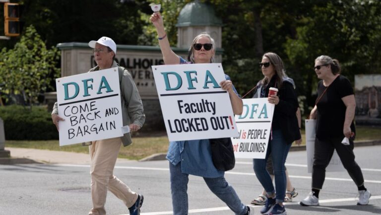 Members of the Dalhousie Faculty Association walk a picket line as students arrive on campus to begin the school year at Dalhousie University in Halifax, Tuesday, Sept. 2, 2025. The first day of school was cancelled for most Dalhousie University students after the university locked members out over a contract dispute. THE CANADIAN PRESS/Darren Calabrese CANADAHALIFAX news Talks between Dalhousie, faculty association end with no more scheduled by admin 10 سبتمبر، 2025 written by admin 10 سبتمبر، 2025 53 CITYnews halifax / By Natasha O’Neill The ongoing labour dispute between Dalhousie University and the Dalhousie Faculty Association (DFA) continues, with bargaining not resulting in any agreements. The two sides met on Monday and, around 4:00 p.m., ended with no more dates to speak again. The two resumed discussions after the first week of the fall semester, was marred by no classes since many professors are locked out after the dispute began. “At this time, the parties have no further conciliation dates scheduled,” an update Sept. 9 reads from the university. Some courses taught by teaching assistants or part-time instructors, who are not part of the faculty union, have been going ahead. The Dalhousie Student Union (DSU) president told CityNews that the majority of classes at the school are taught by DFA members, meaning many students are in limbo during the dispute. Picketing near Dalhousie’s engineering campus in downtown Halifax, Chiranjeev Sanyal, an assistant professor at the pharmacy school, told The Canadian Press on Monday that morale remains “very high” on picket lines. Related: Conciliation talks scheduled for Monday amid labour dispute at Dalhousie Students caught in the crossfire between Dalhousie University and faculty association Dalhousie University locks out faculty amid contract dispute The university locked out faculty on Aug. 20. Since then, students have been caught in the crossfire. According to a press release from DSU, each week that classes are cancelled represents about 7 per cent of the semester. “Students have either already paid or are preparing to pay thousands of dollars for classes and mentorship that have been withheld through no fault of our own,” Maren Mealey, President of the DSU, said in the statement. “Students should not be forced to pay full tuition for an education we are not receiving.” As a result, students are holding a rally to ask the university for tuition refunds based on time lost already this year. The faculty’s current contract expired June 30, and Dalhousie has offered two per cent wage increases in each year of a three-year deal. Dalhousie’s faculty association has proposed increases of 3.75 per cent in the first year, 4.75 per cent in the second, and 5.75 per cent in the third. As of July, the maximum salary for a lecturer was $123,000 and for a professor it was $217,000. 0 comment 0 FacebookTwitterPinterestEmail admin previous post Mandatory water restrictions in effect for Lake Major customers: Halifax Water next post كارني غير قلق على كندا من صعود الحزب الكيبيكي الاستقلالي You may also like Wilkie wins Canada’s first gold medal at Milan... 8 مارس، 2026 Iranian state TV says Mojtaba Khamenei, son of... 8 مارس، 2026 Missing police badge recovered in proactive traffic stop 8 مارس، 2026 Mooseheads win season series against Eagles 8 مارس، 2026 PM Carney calls federal by-elections for April in... 8 مارس، 2026 بمشاعر تتأرجح بين الارتياح والتوتر: كنديون يغادرون لبنان... 8 مارس، 2026 Diesel prices to shift again in Nova Scotia... 6 مارس، 2026 Halifax Water investigating ‘privacy incident’ on its online... 6 مارس، 2026 Halifax teens lament the loss of government program... 6 مارس، 2026 Spring Garden area businesses call out paid parking... 6 مارس، 2026