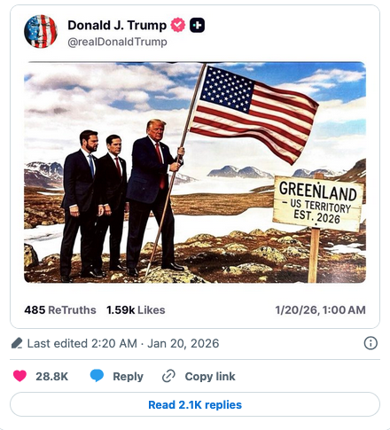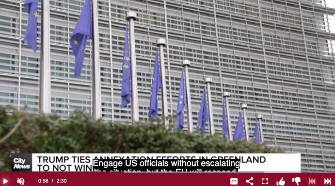 CANADAHALIFAX news Trump shares AI photo of Greenland, Canada both under American flag by admin 20 January، 2026 written by admin 20 January، 2026 54 CITYnews halifax / By David Baxter, The Canadian Press https://canadavoice.info/wp-content/uploads/2026/01/Trump-shares-AI-photo-of-Greenland-Canada-both-under-American-fl.mp4 U.S. President Donald Trump is continuing to talk about taking over Greenland as he heads to Davos, Switzerland, for the World Economic Forum, where he is scheduled to speak on Wednesday and meet with other world leaders. European Commission president Ursula von der Leyen said Trump’s tariff threat on European countries opposed to a Greenlandic takeover are “a mistake” and bring up questions of the president’s trustworthiness after promises last year not to impose further tariffs on EU nations. Trump went on a posting blitz on his social media platform, Truth Social, in the early morning hours focused on Greenland. His posts include an AI-generated photo of him meeting in the Oval Office with European leaders and a map of the Western Hemisphere that shows American flags over Greenland, Canada, Cuba and Venezuela. Prime Minister Mark Carney said Sunday he is “concerned” about the U.S. ratcheting up its talk of taking over Greenland, and he would relay that to Trump if he sees him in Davos. The Prime Minister’s Office released a readout early Tuesday of a conversation between Carney and U.K. Prime Minister Keir Starmer on Monday. The readout says both leaders reaffirmed their position that the future of Greenland is up to its people and Denmark. Carney also talked about the military investments Canada is making for Arctic defence. French President Emmanuel Macron said during his speech at the World Economic Forum on Tuesday that U.S. trade agreements are looking to weaken and subordinate Europe, something that is fundamentally unacceptable. Macron said this is even more unacceptable when used to extort territorial sovereignty, a nod toward Trump’s tariff threats against France and other nations. Macron said “accepting a new colonial approach doesn’t make sense.” The French president said that he plans to use France’s presidency of the G7 this year to work toward co-operation among world powers and show they can work together constructively. Macron wore aviator sunglasses during his World Economic Forum speech, a style of shades favoured by former U.S. president Joe Biden. Carney is scheduled to speak at the World Economic Forum later on Tuesday. 0 comment 0 FacebookTwitterPinterestEmail admin previous post More older adults can’t afford to retire as optimism about aging drops: survey next post N.S. municipality facing more than 60 per cent jump on water bills You may also like Diesel prices to shift again in Nova Scotia... 6 March، 2026 Halifax Water investigating ‘privacy incident’ on its online... 6 March، 2026 Halifax teens lament the loss of government program... 6 March، 2026 Spring Garden area businesses call out paid parking... 6 March، 2026 Five men face obstruction charges related to Dartmouth... 6 March، 2026 مارك كارني يعقد شراكة استراتيجية مع اليابان 6 March، 2026 أوتاوا بدأت أول رحلة جوية لإعادة مواطنيها من... 6 March، 2026 كنديون عالقون في الإمارات العربية المتحدة بسبب الحرب 6 March، 2026 دومينيك لوبلان غدا في واشنطن تحضيرا لمراجعة اتفاق... 6 March، 2026 ‘A terrible idea’: Halifax to raise parking fees,... 6 March، 2026