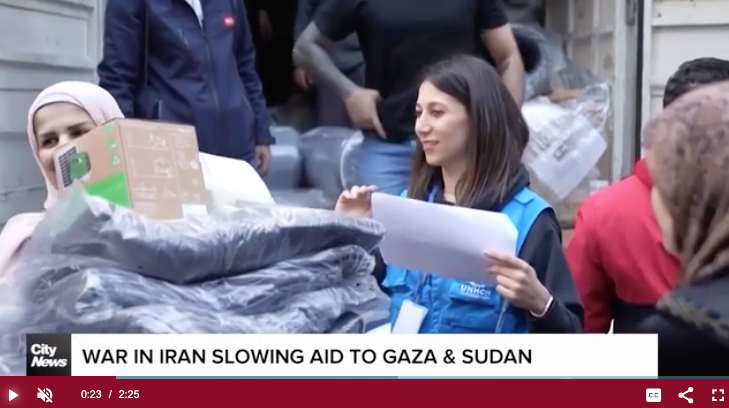 VIDEOVIDEO news WATCH: War in Iran slowing aid to Gaza and Sudan by admin 6 March، 2026 written by admin 6 March، 2026 15 CITYnews halifax / March 6, 2026 6:53 pm AST. The war in Iran isn’t only disrupting the shipment of oil and natural resources out of the Middle East, it’s also preventing badly-needed shipments from reaching some of the worlds most impoverished regions. Alessandra Carneiro, reports. https://canadavoice.info/wp-content/uploads/2026/03/War-in-Iran-slowing-aid-to-Gaza-and-Sudan.mp4 0 comment 0 FacebookTwitterPinterestEmail admin previous post WATCH: Evacuation flights & Canada’s Iran position next post اختراقات متبادلة بين التكنولوجيا الأميركية و”حنظلة” الإيراني You may also like جبهة لبنان: أنباء عن محاولة إنزال إسرائيلية في... 7 March، 2026 WATCH: Evacuation flights & Canada’s Iran position 6 March، 2026 جبهة لبنان: غارات على “الضاحية” والجنوب والبقاع و”حزب... 6 March، 2026 WATCH: NATO not considering Article 5 over Iranian... 6 March، 2026 WATCH: Frank Stronach’s defence team prepares to launch... 6 March، 2026 WATCH: Carney can’t ‘rule out participation’ in Iran,... 6 March، 2026 WATCH: Crown wraps up evidence at Frank Stronach’s... 5 March، 2026 WATCH: Immigration in Canada could soon account for... 5 March، 2026 WATCH: Iran War appears ‘inconsistent’ with international law:... 4 March، 2026 WATCH: Gas prices spike and markets tumble amid... 4 March، 2026